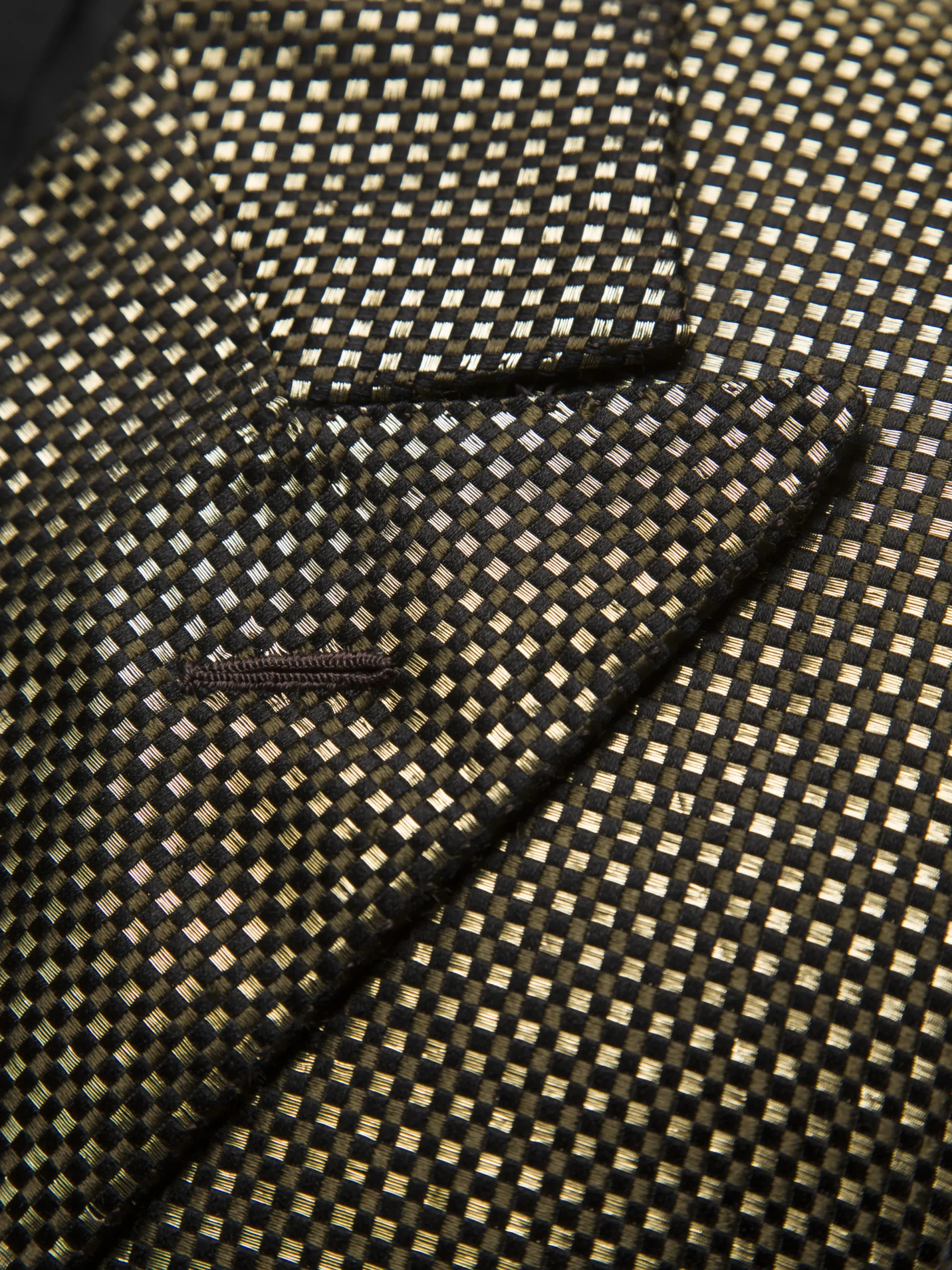 This Virgilio tuxedo jacket is an exquisite piece which has been entirely handcrafted in a unique blend of silk and 24 karat gold. The textured jacquard fabric is featured also on the lapel and perfectly complements the contrasting slit pockets and buttons, resulting in an elegant and sophisticated silhouette. Pair with a crisp white shirt and silk bow tie for an avant-garde yet polished look, for the most exclusive of events.