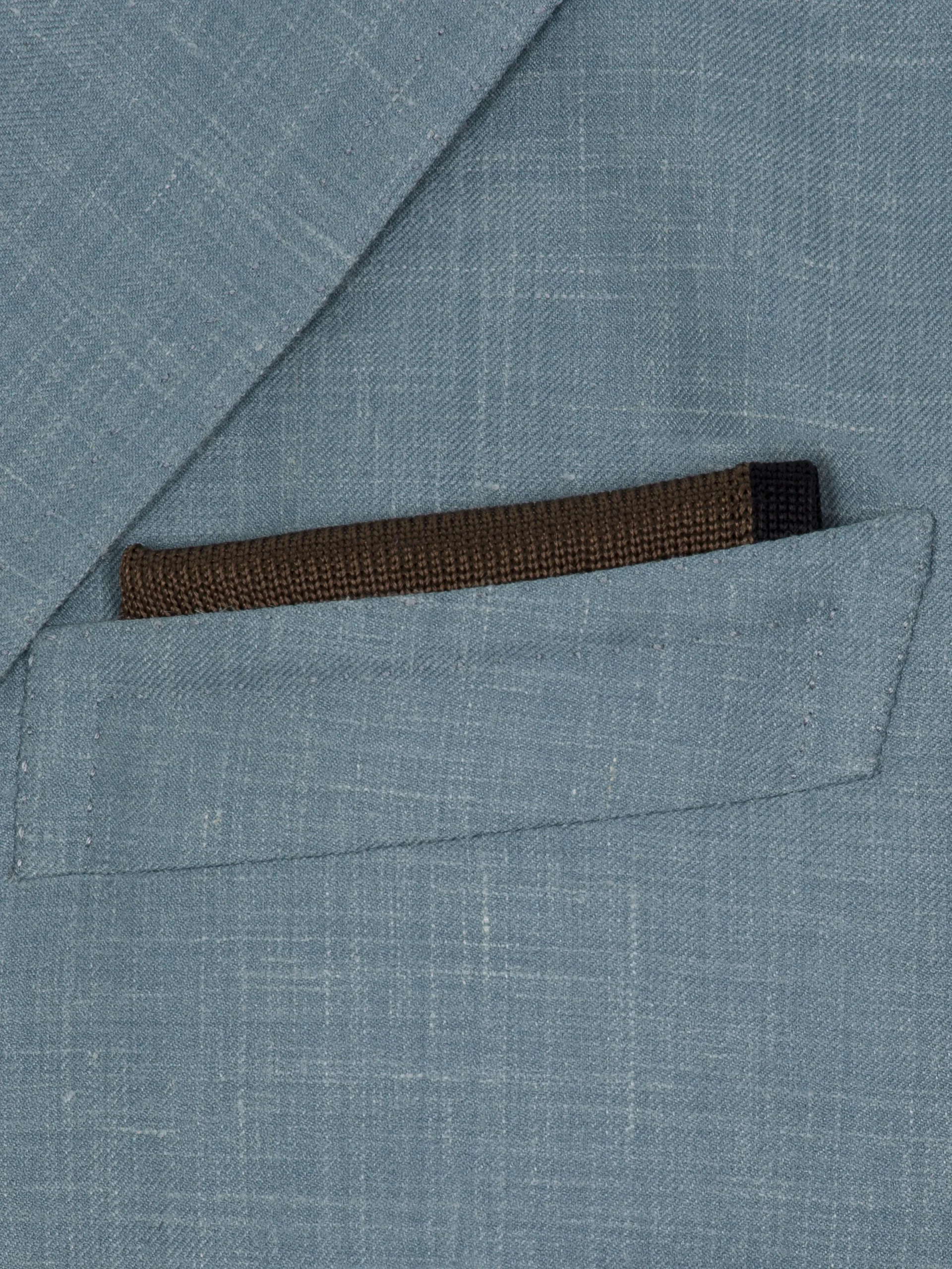 Inspired by our famous tie world, this brown and black pocket square is made in a 100% silk knitted fabric. This particular texture is obtained thanks to a tubular machine, which allows the silk threads to maintain extreme softness and vivid colours. Considered as an ‘out-of-the-box’ accessory, this special piece, will add an original and modern touch to your formal suit or jacket.