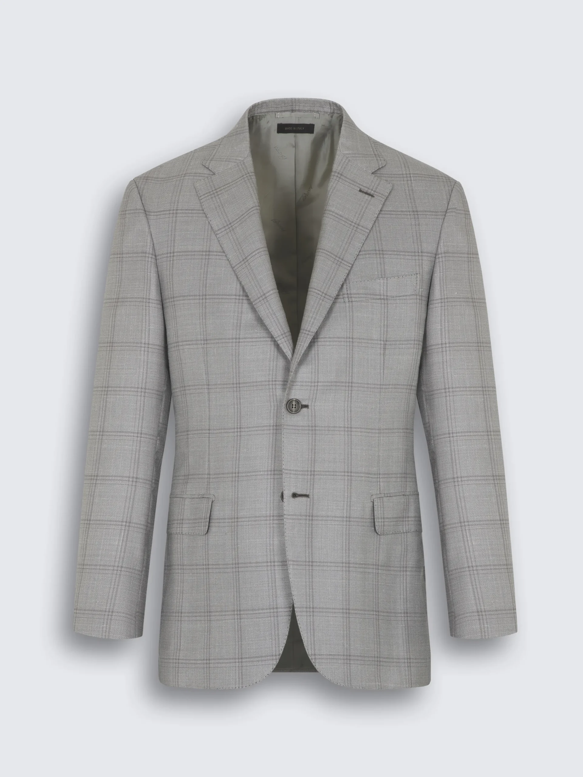 Grey checked wool, silk, cashmere and linen Ravello jacket. Featuring a regular fit, notch lapels, two back vents, one chest pocket, two flap pockets, two internal jet pockets and one internal pocket with button closure. Based on the classic Brunico model but with more relaxed and light shoulders, this jacket seamleassly combines formality with comfort.