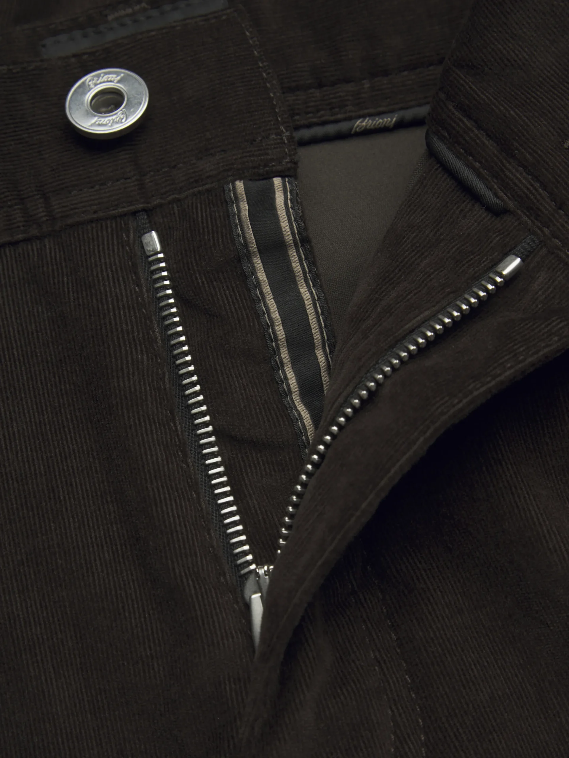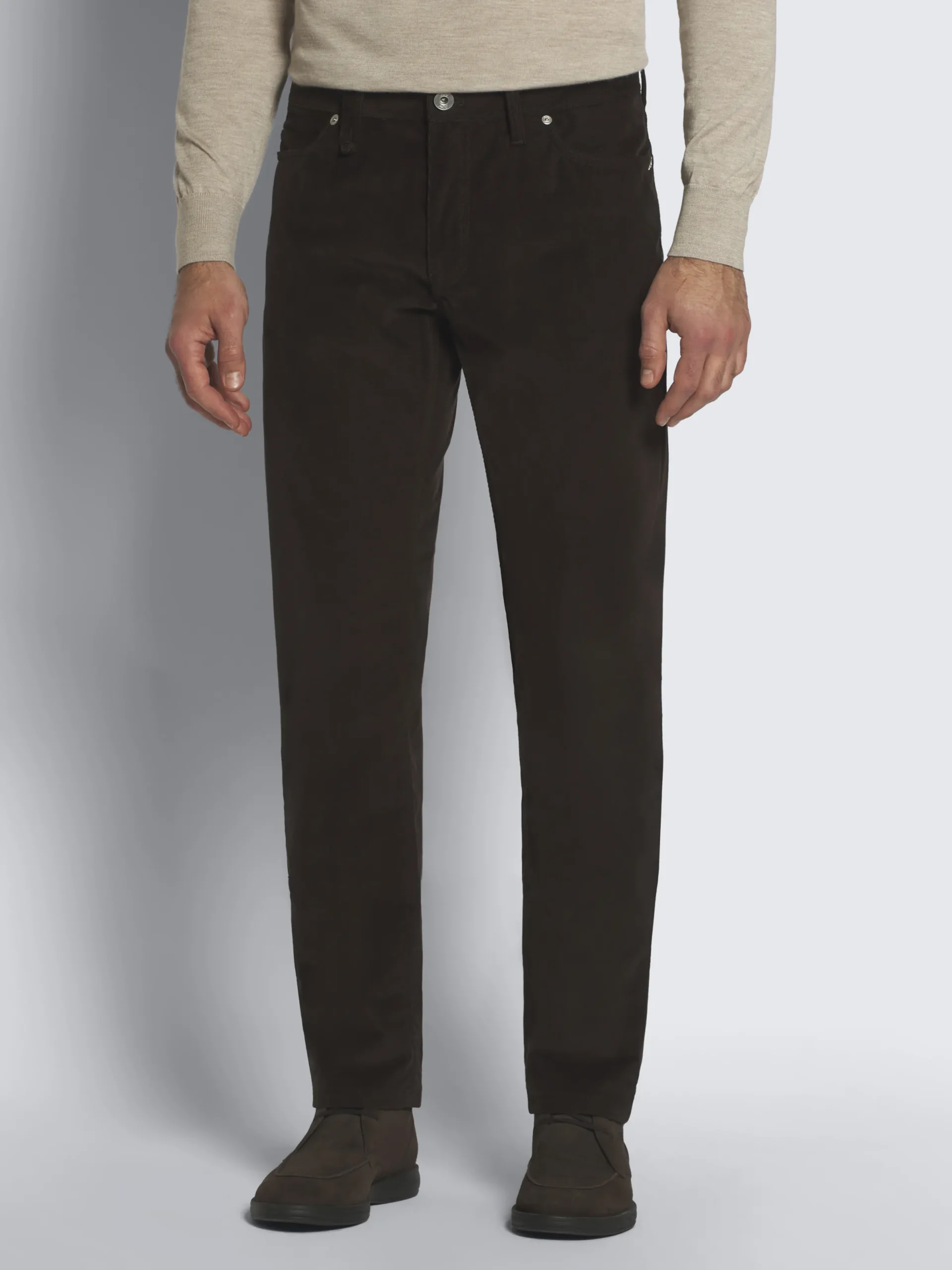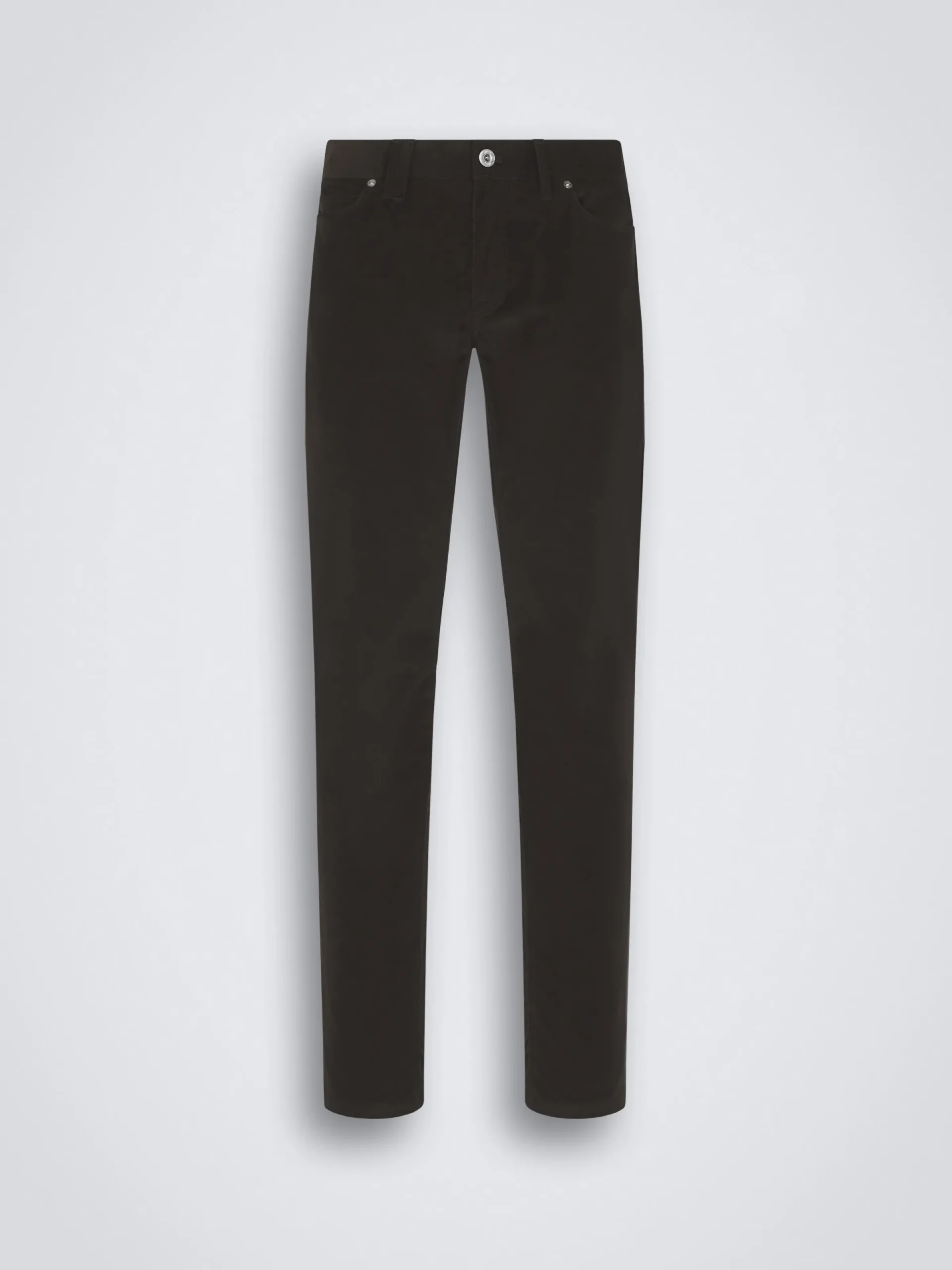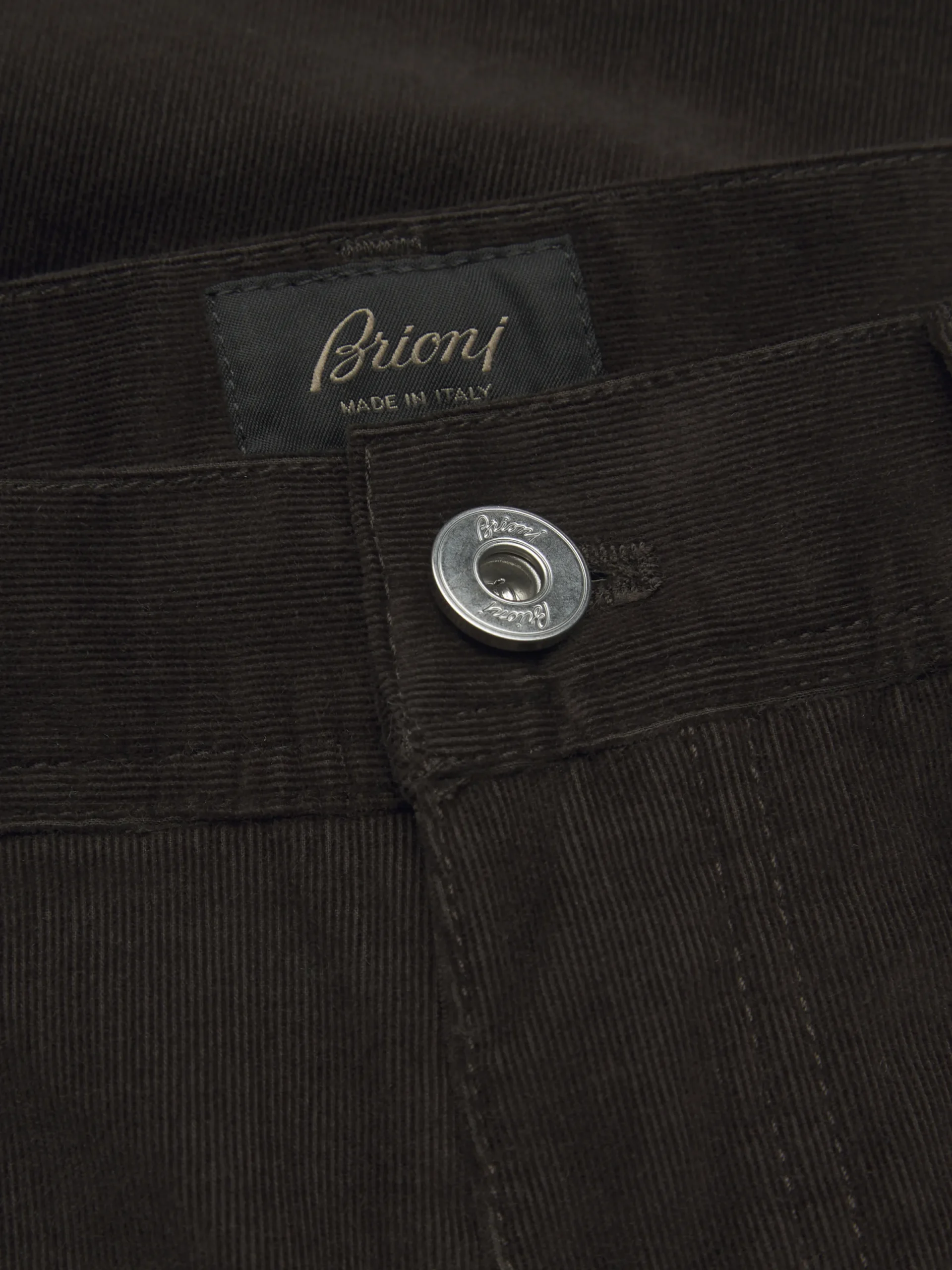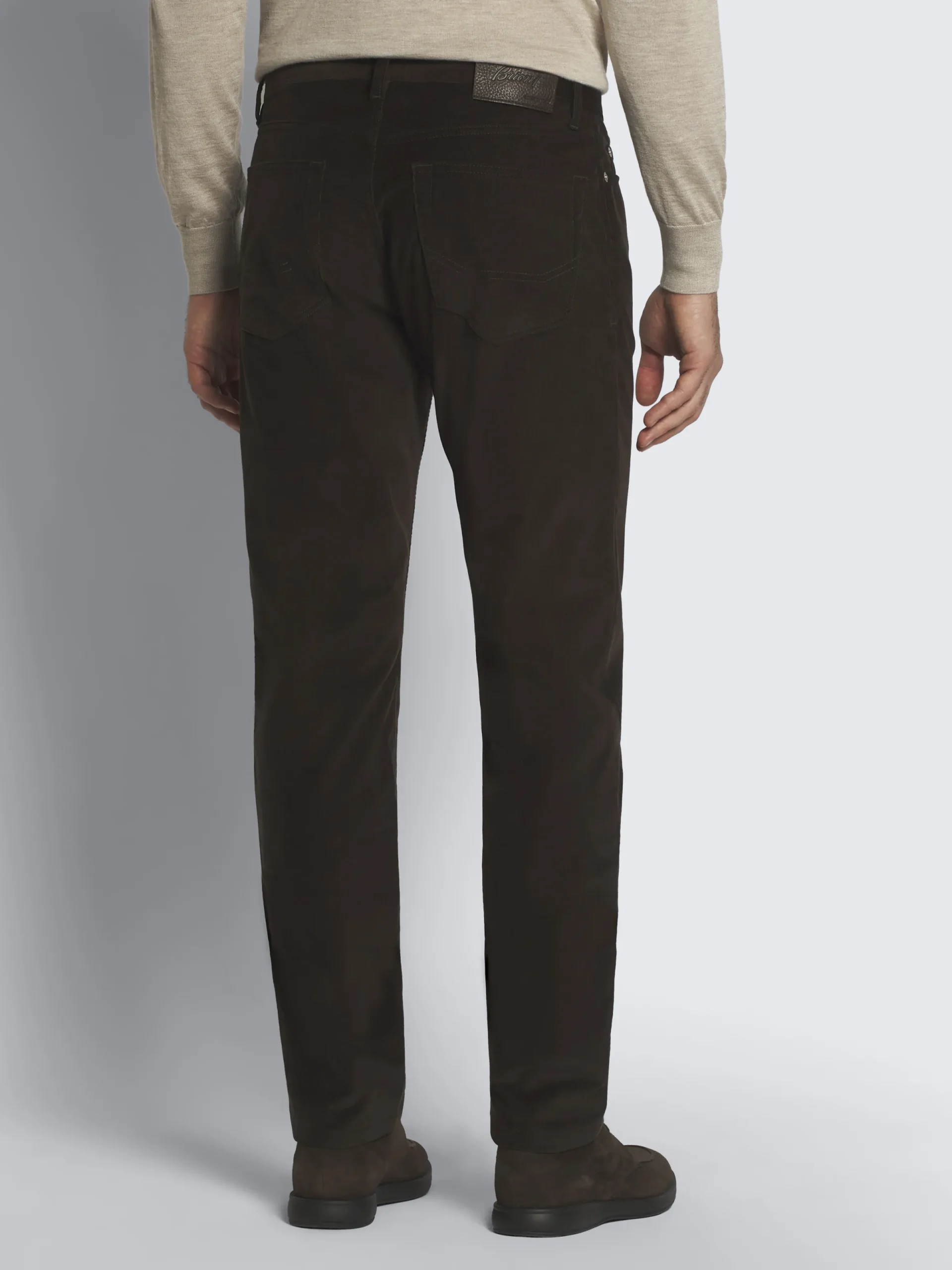 Dark brown cotton corduroy Meribel trousers. Featuring a regular fit, five pockets, steel buttons and rivets, branded leather label on the back and metal « B » logo on one back pocket. These sophisticated jeans ensure the ideal comfort and can be worn with casual and leisurewear pieces for a sophisticated yet nonchalant flair.