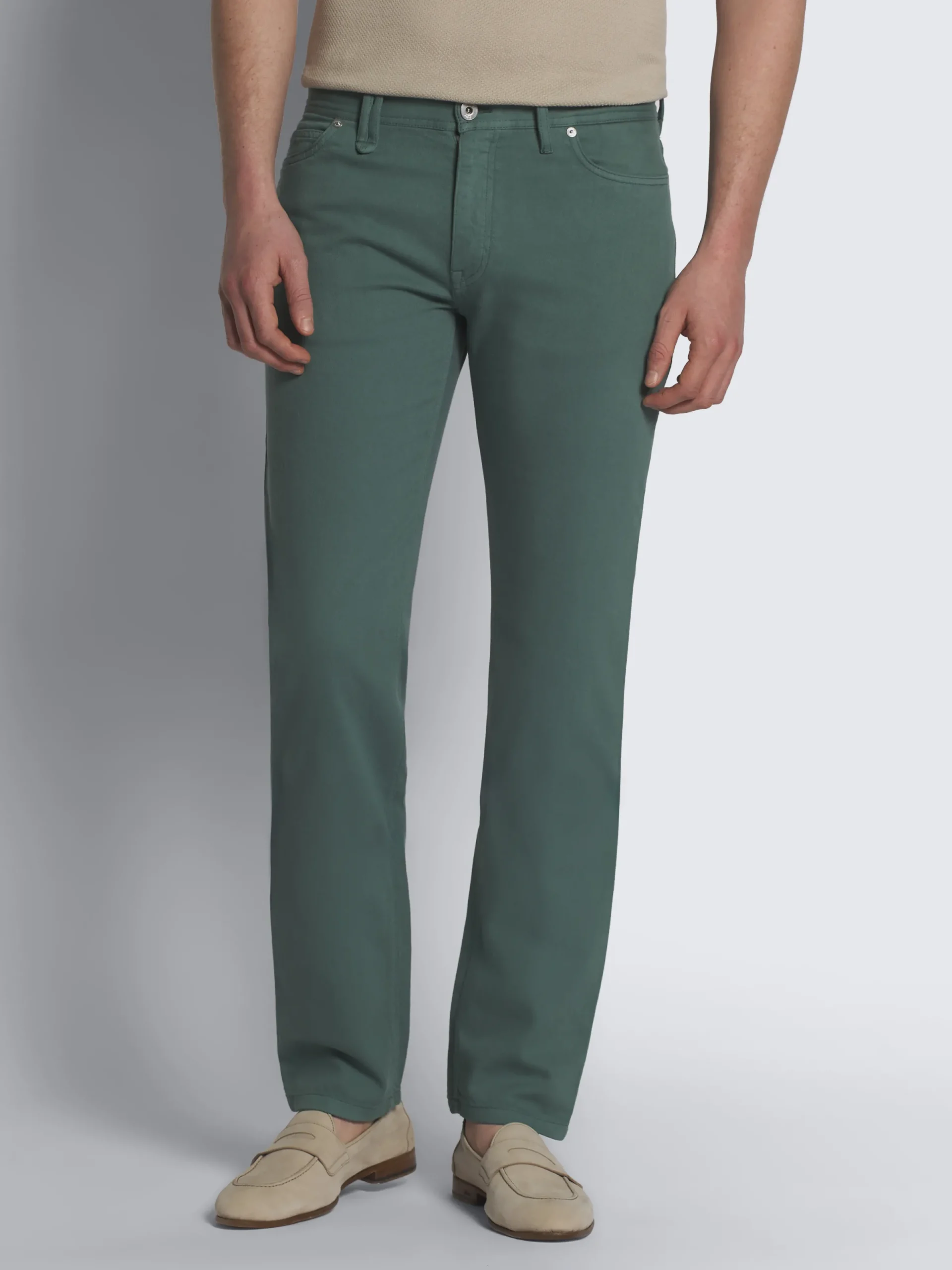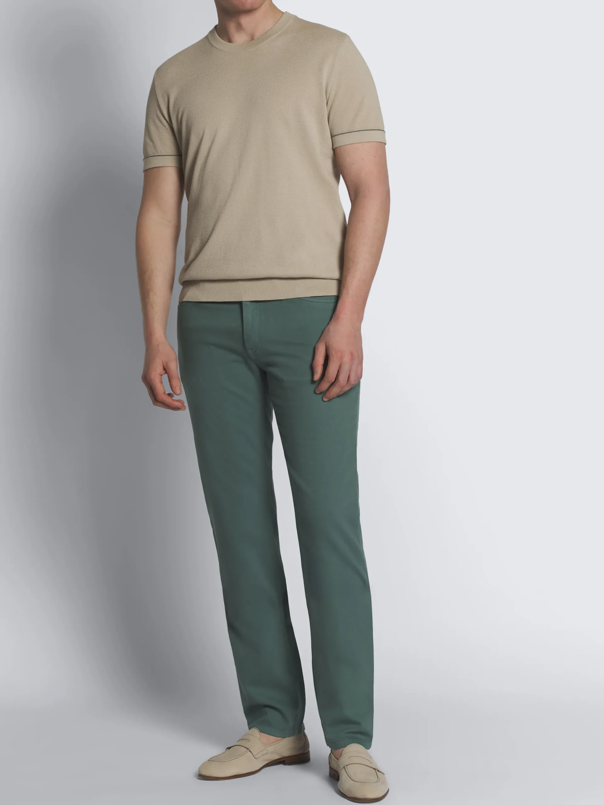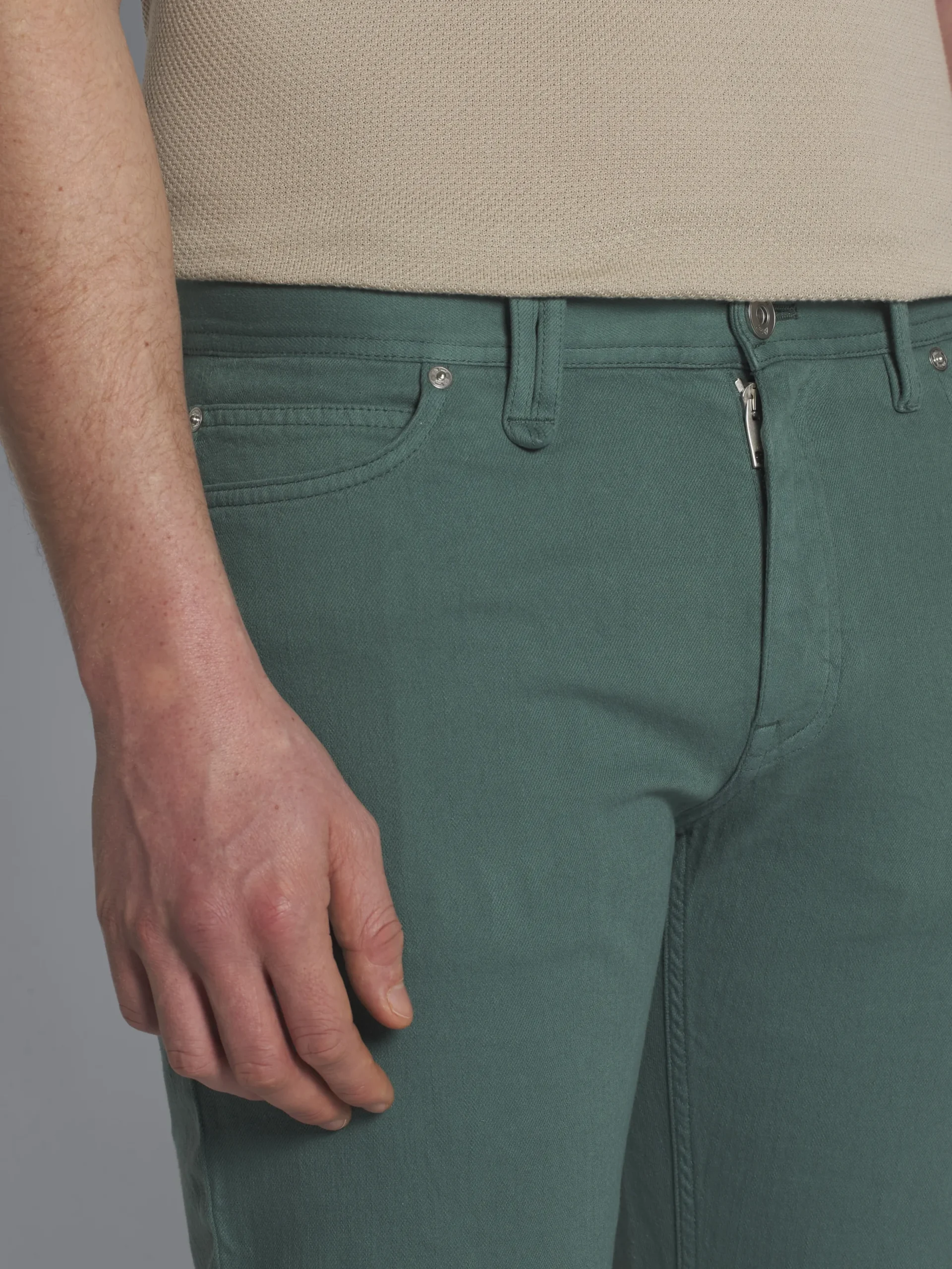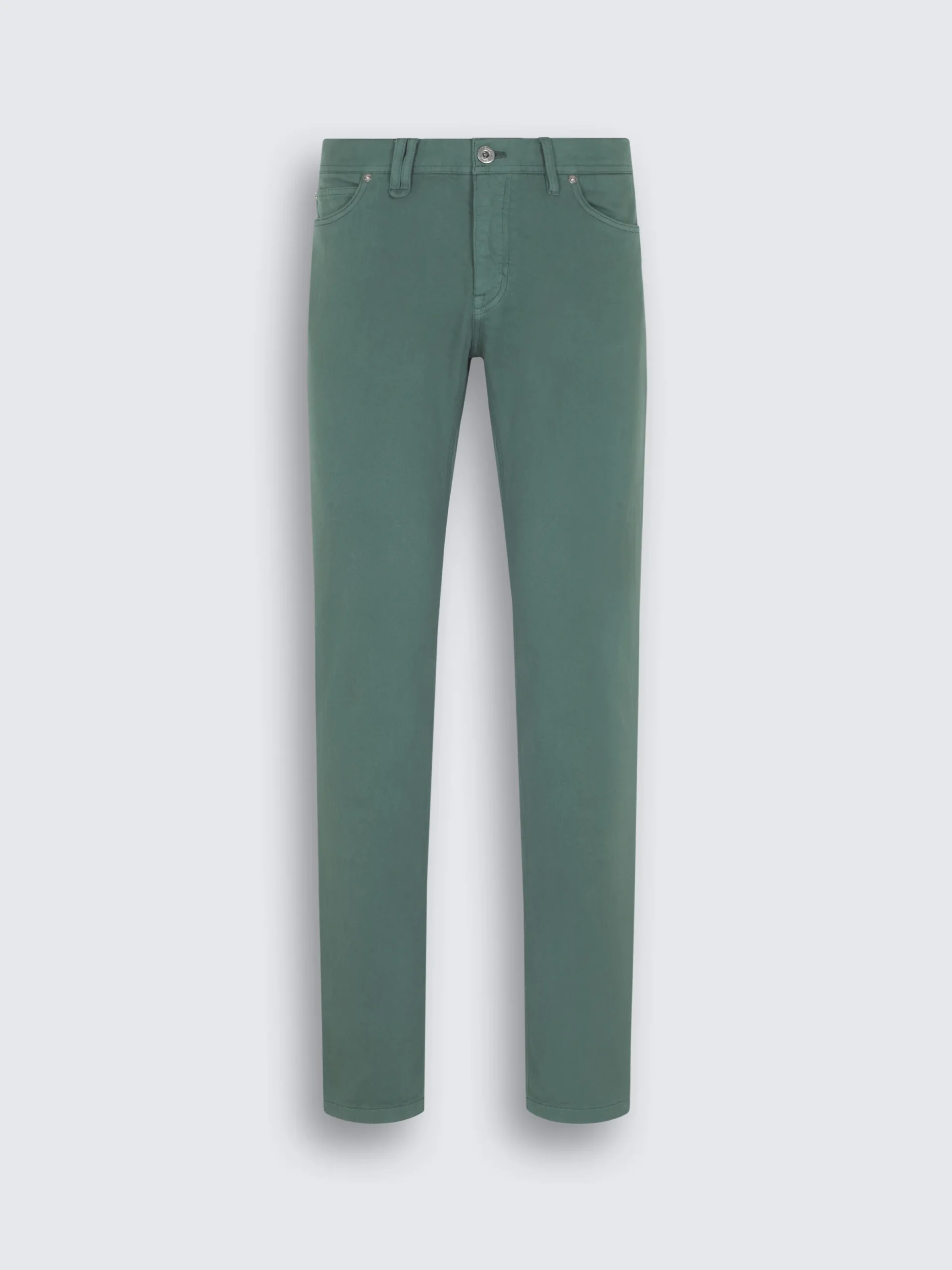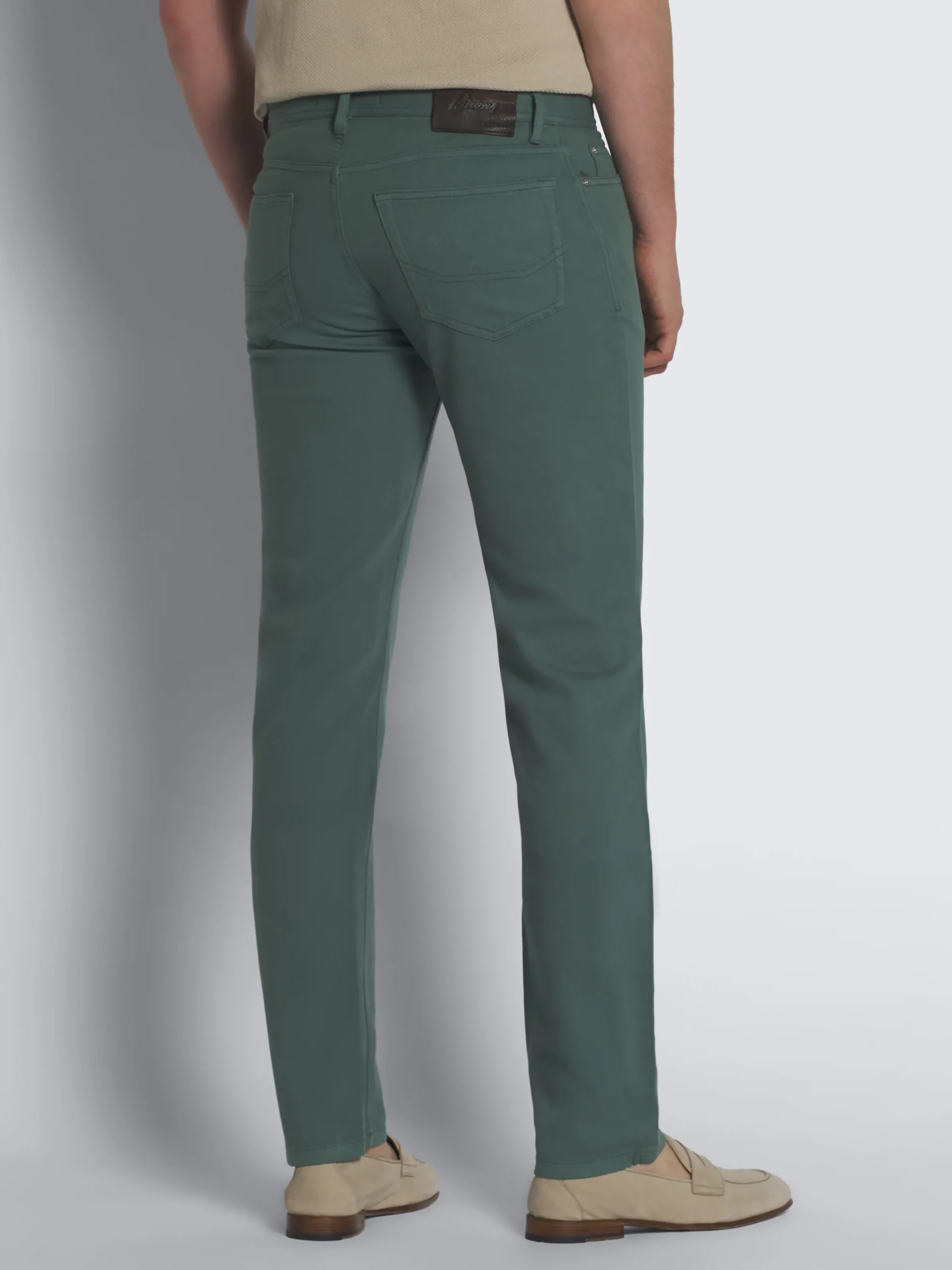 Teal green cotton Meribel jeans. Featuring a regular fit, five pockets, steel buttons and rivets, branded leather label on the back and metal « B » logo on one back pocket. These sophisticated jeans ensure the ideal comfort and can be worn with casual and leisurewear pieces for a sophisticated yet nonchalant flair.
