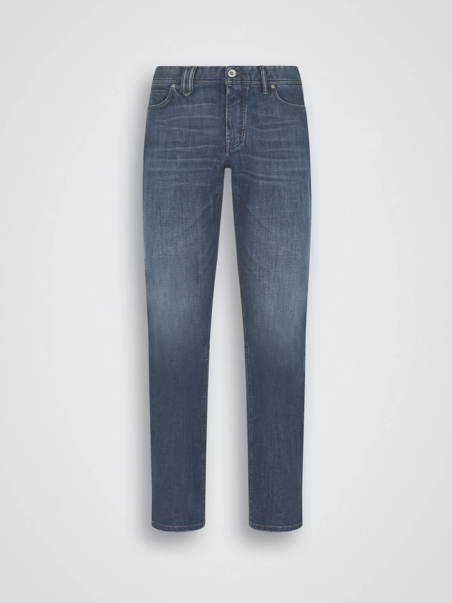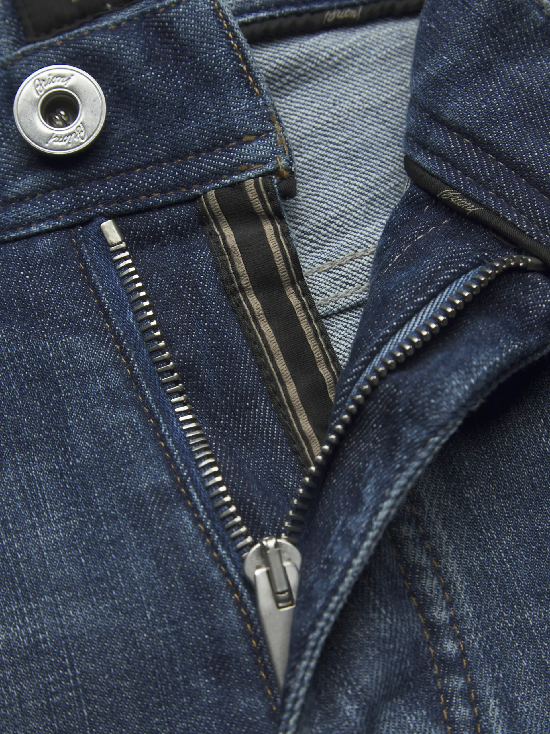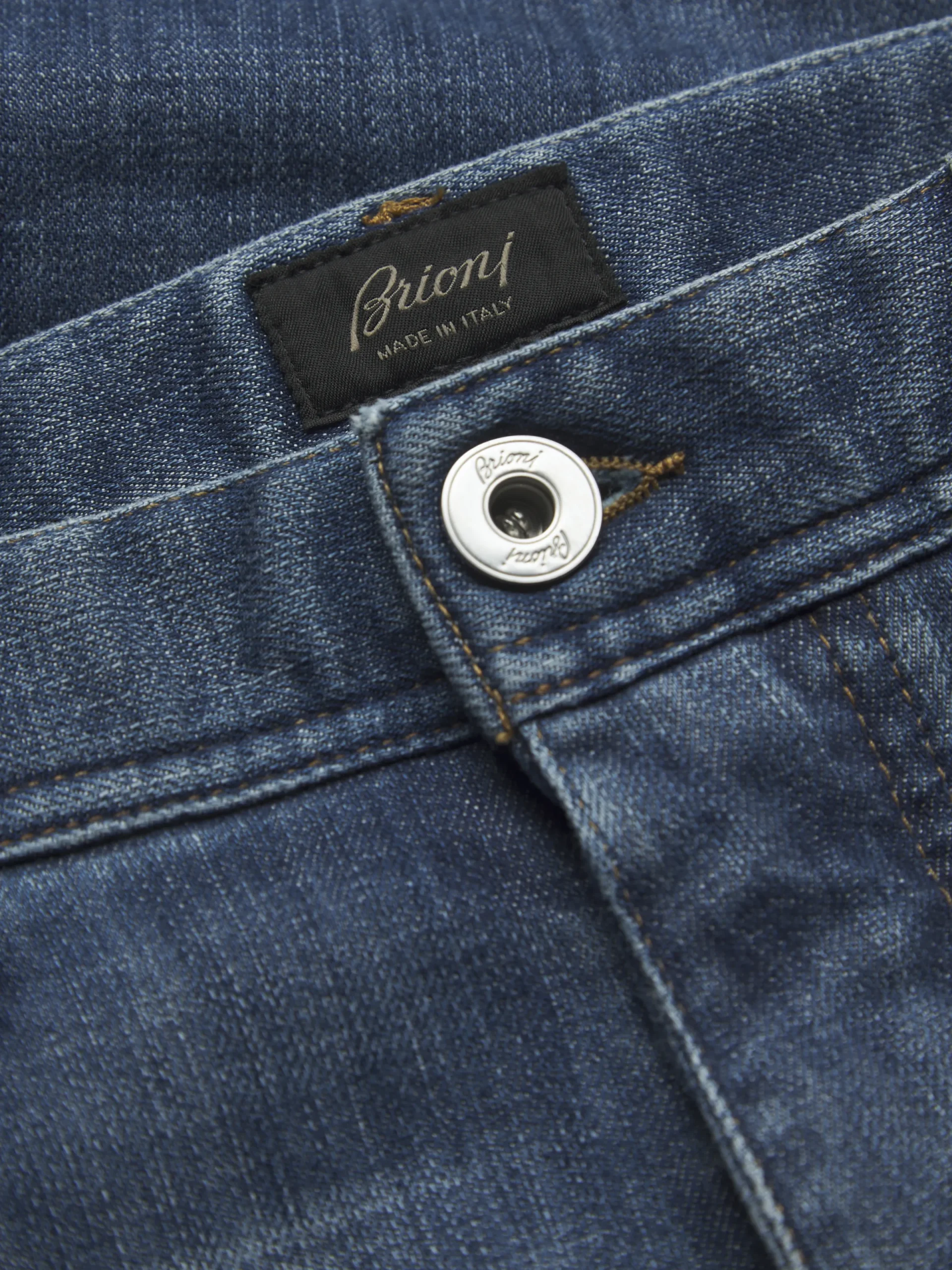 “,”features”:”Regular fitnFive pocketsnSteel buttons and rivetsnBranded leather detail on the backnMetal « B » logo on one back pocket