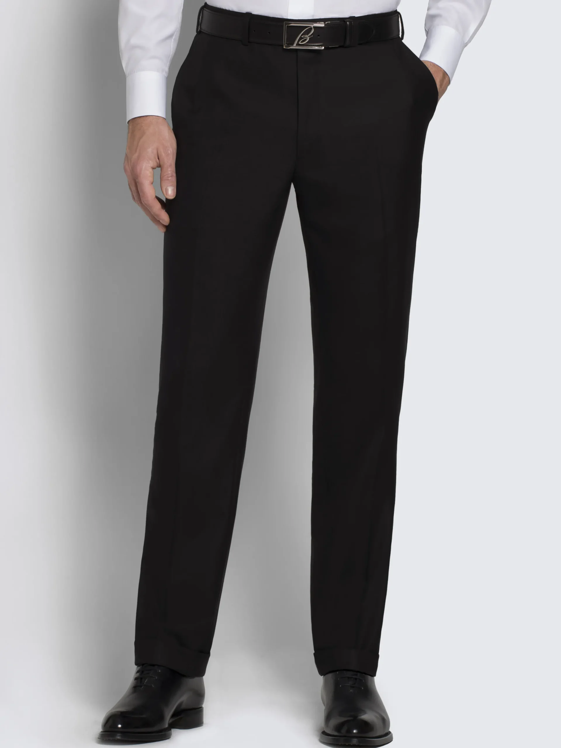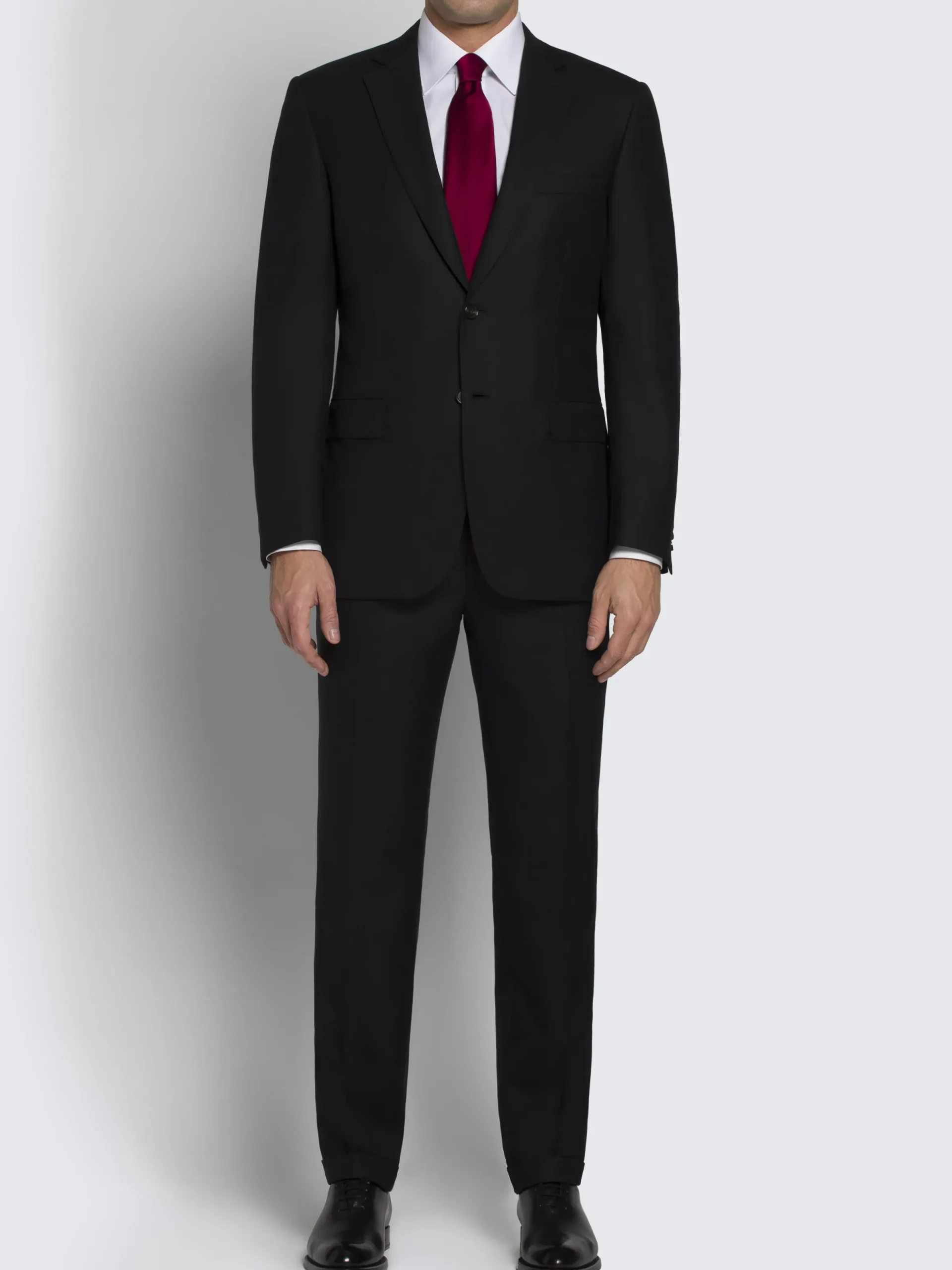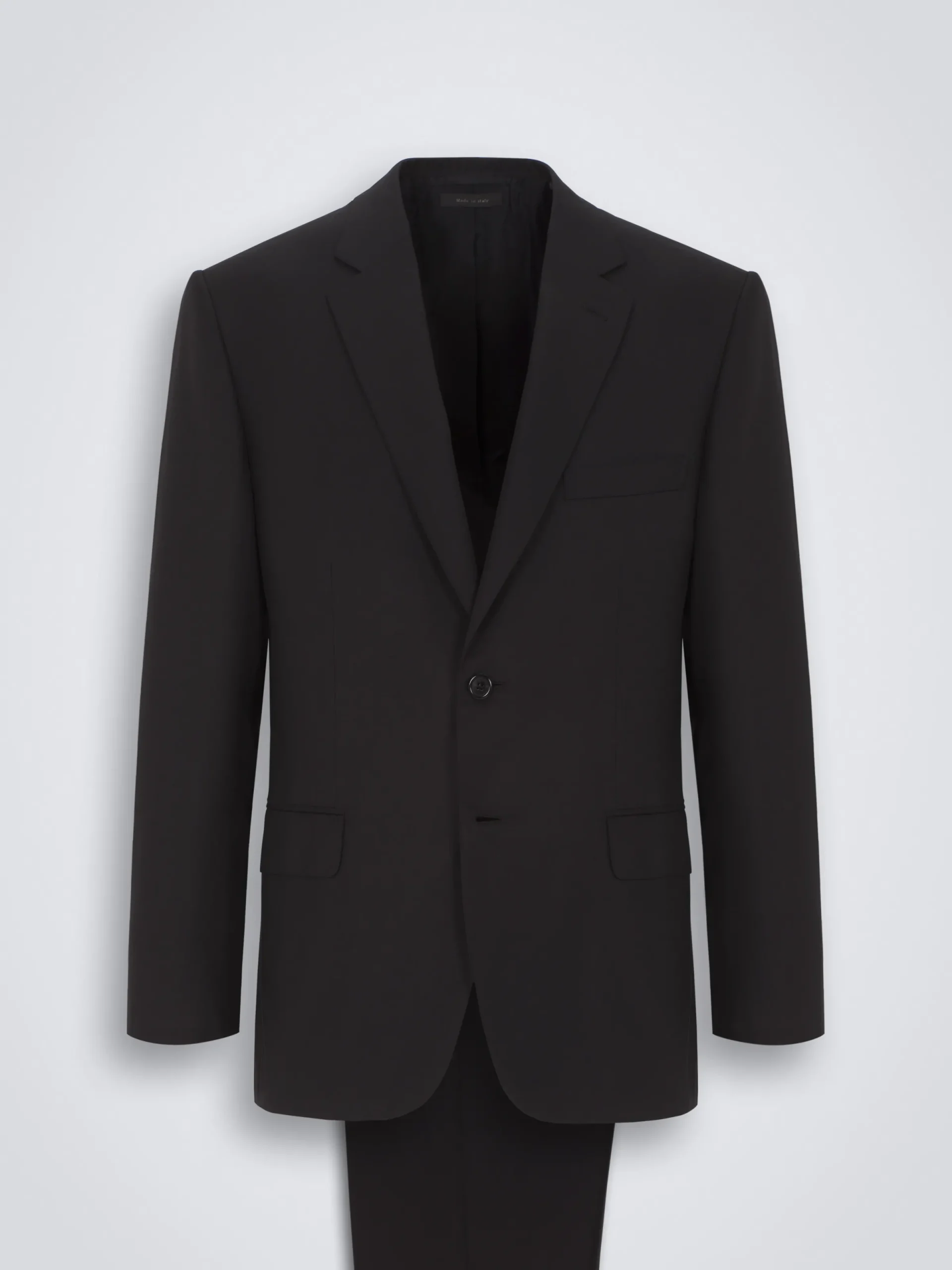Essential black Super 160’s wool Brunico suit featuring notch lapels, two buttons, flap pockets and two back vents. Since its launch in 2010, the Brunico suit has become a staple. With its classic fit and construction entirely by hand, it’s the expression of Brioni tailoring excellence.