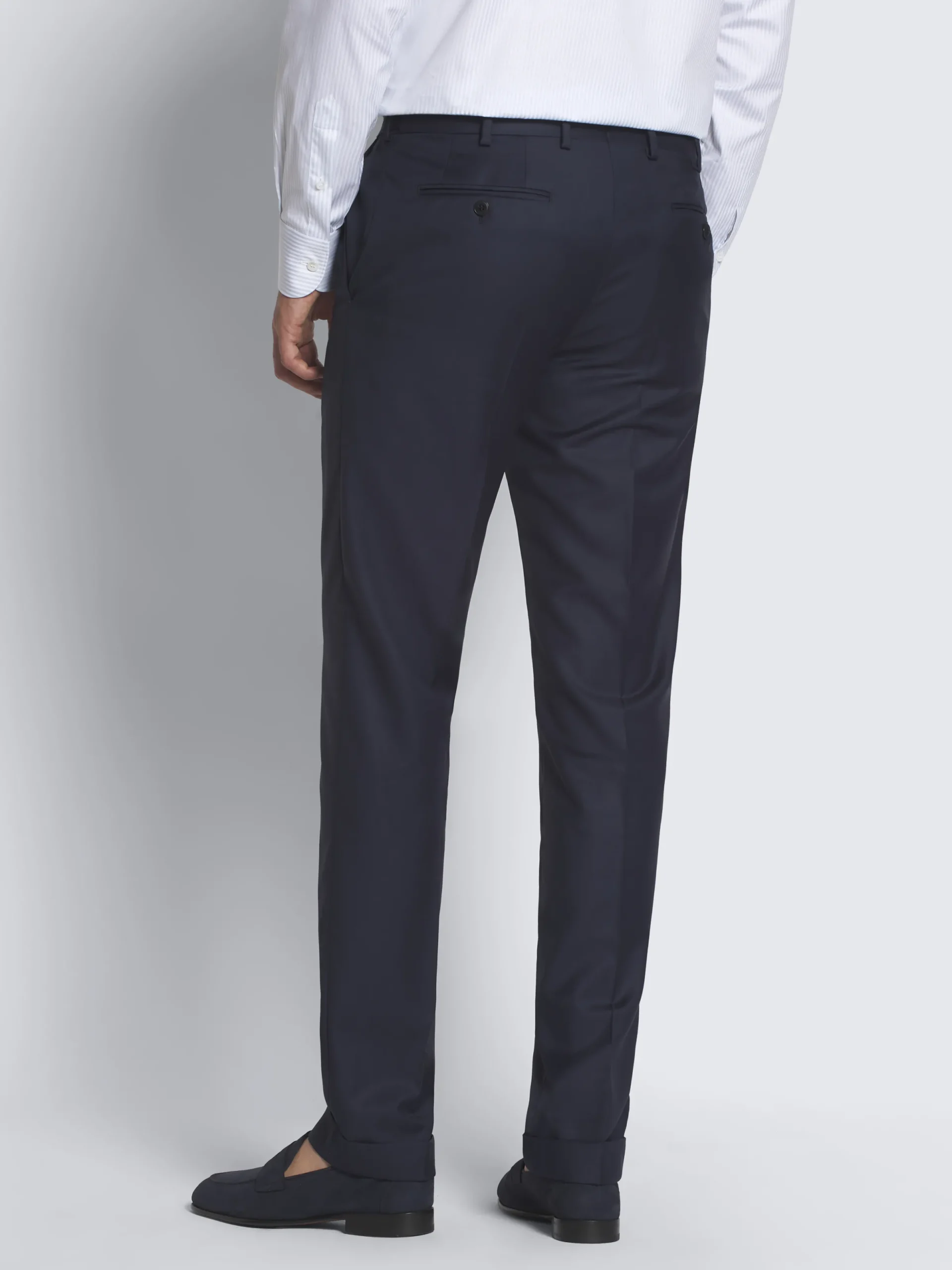 Navy blue Super 150’s wool sharskin Journey trousers. Featuring our Theta construction, button and zip fly closure, belt loops, two side pockets and two back jet pockets with button closure. Thought to be the perfect travel companion for every businessman, these trousers will provide you with uncompelling comfort and great body adaptability thanks to a special construction with self-regularing elasticated waist band. Perfect to be paired with both casual or more refined garments.