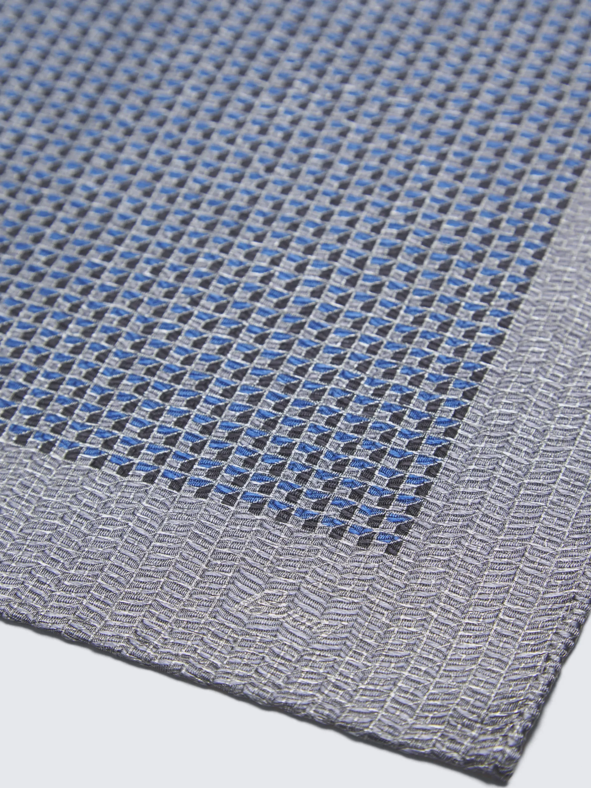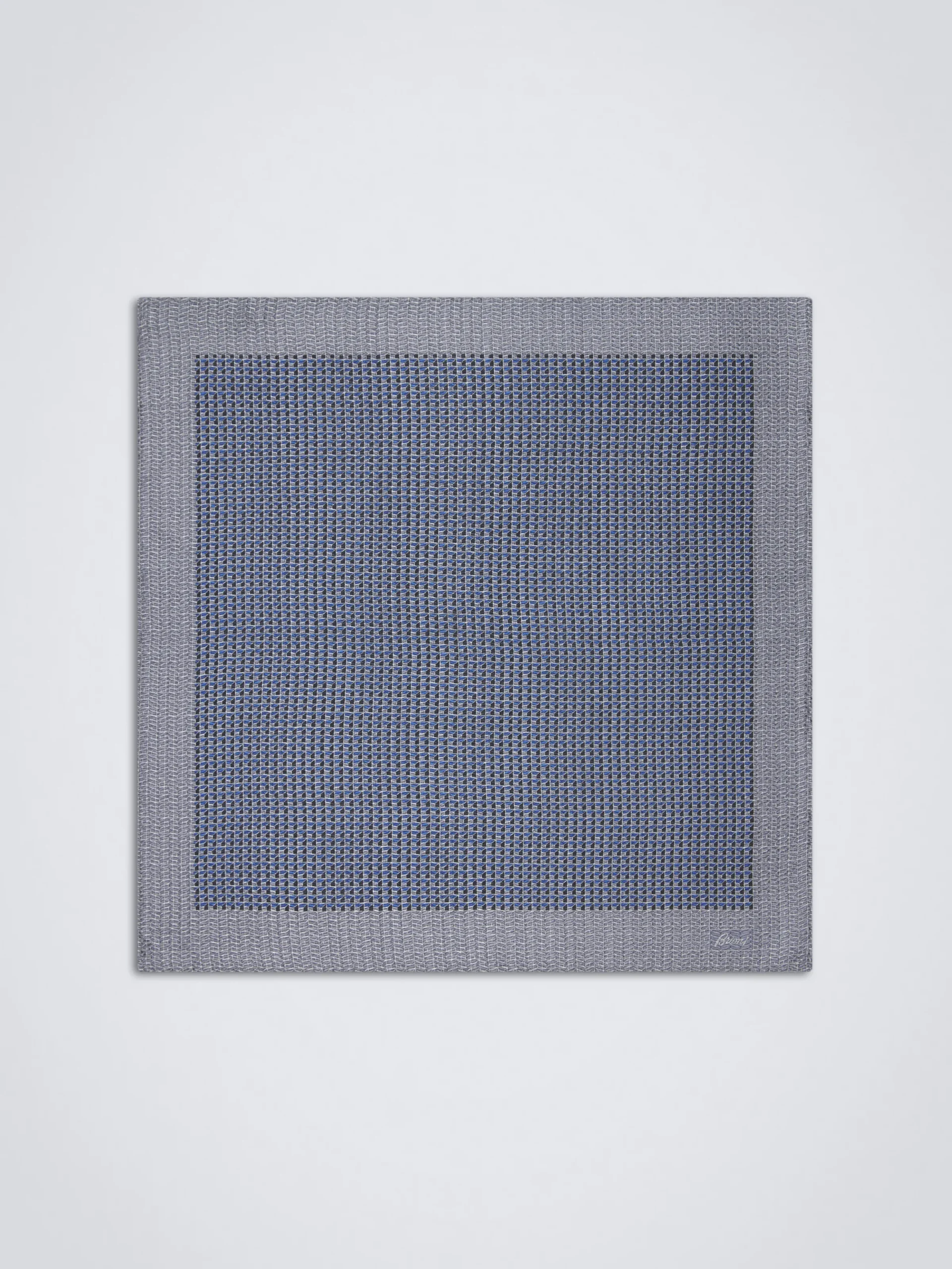 Navy blue silk pocket square. Hand-rolled, this ultra-versatile piece is perfect to add an elegant touch to your formal jacket.