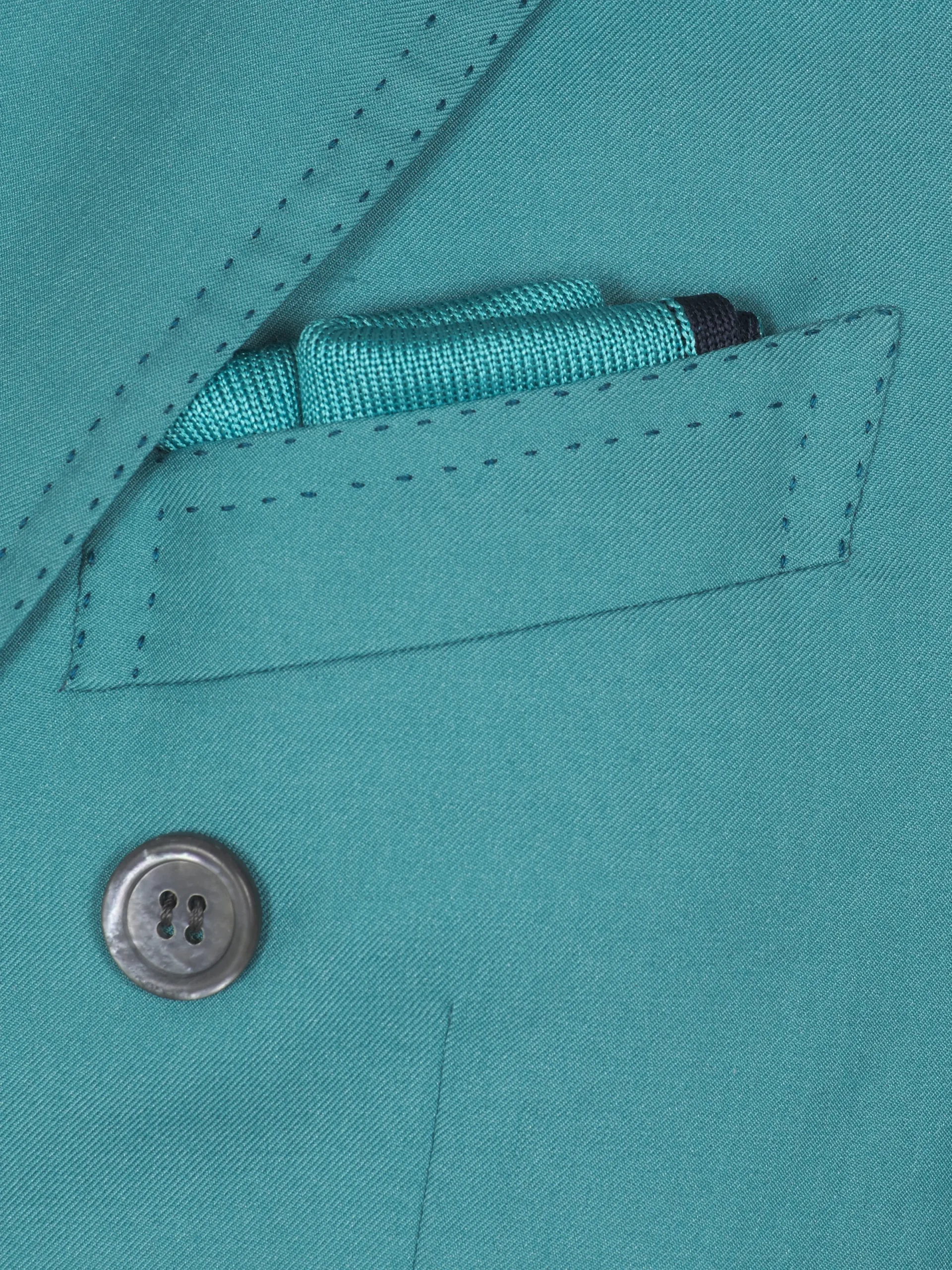 Turquoise and navy blue silk pocket square. Featuring a « B » logo embroidery detail, this refined piece is handcrafted in Italy and will add a sophisticated touch to your jackets.