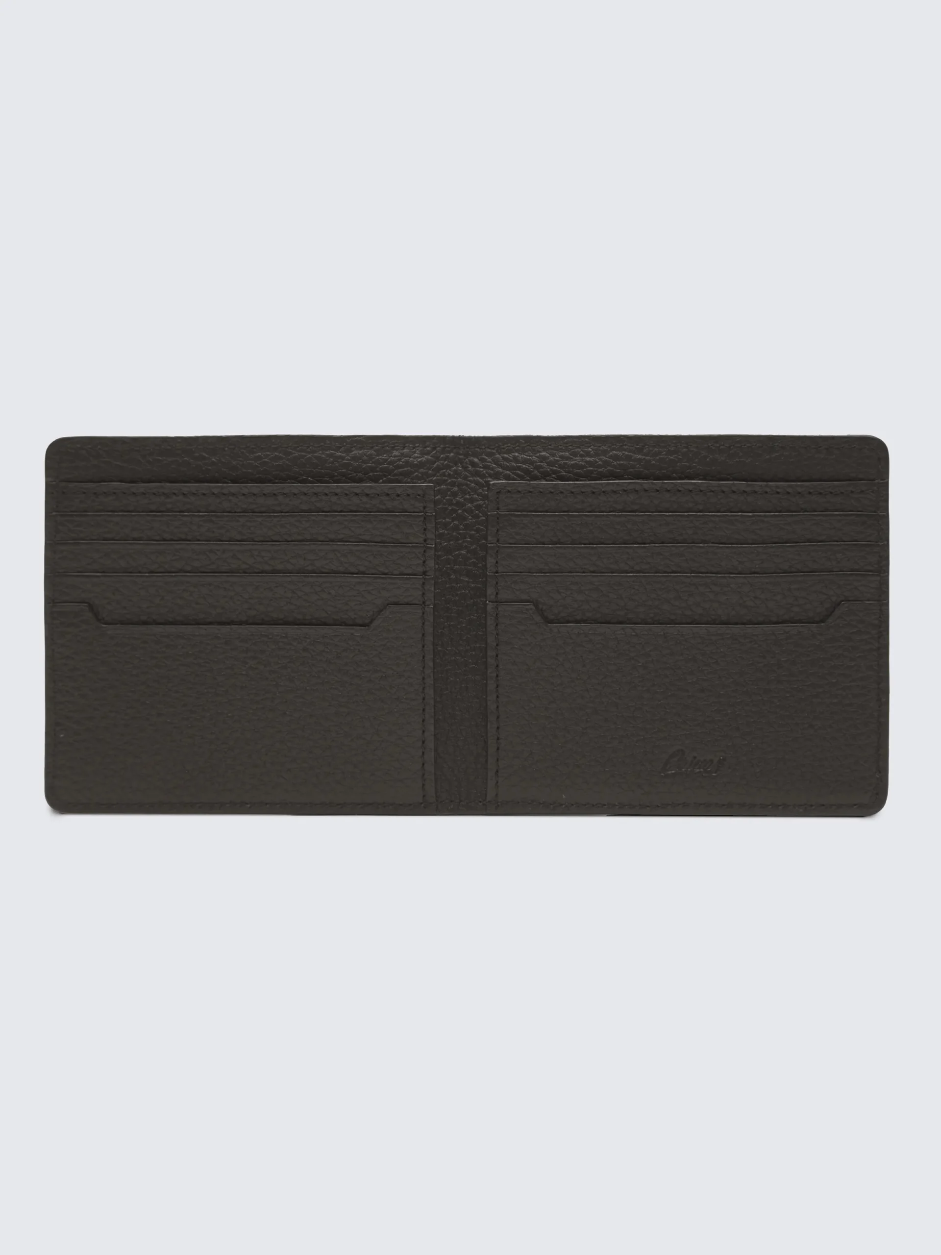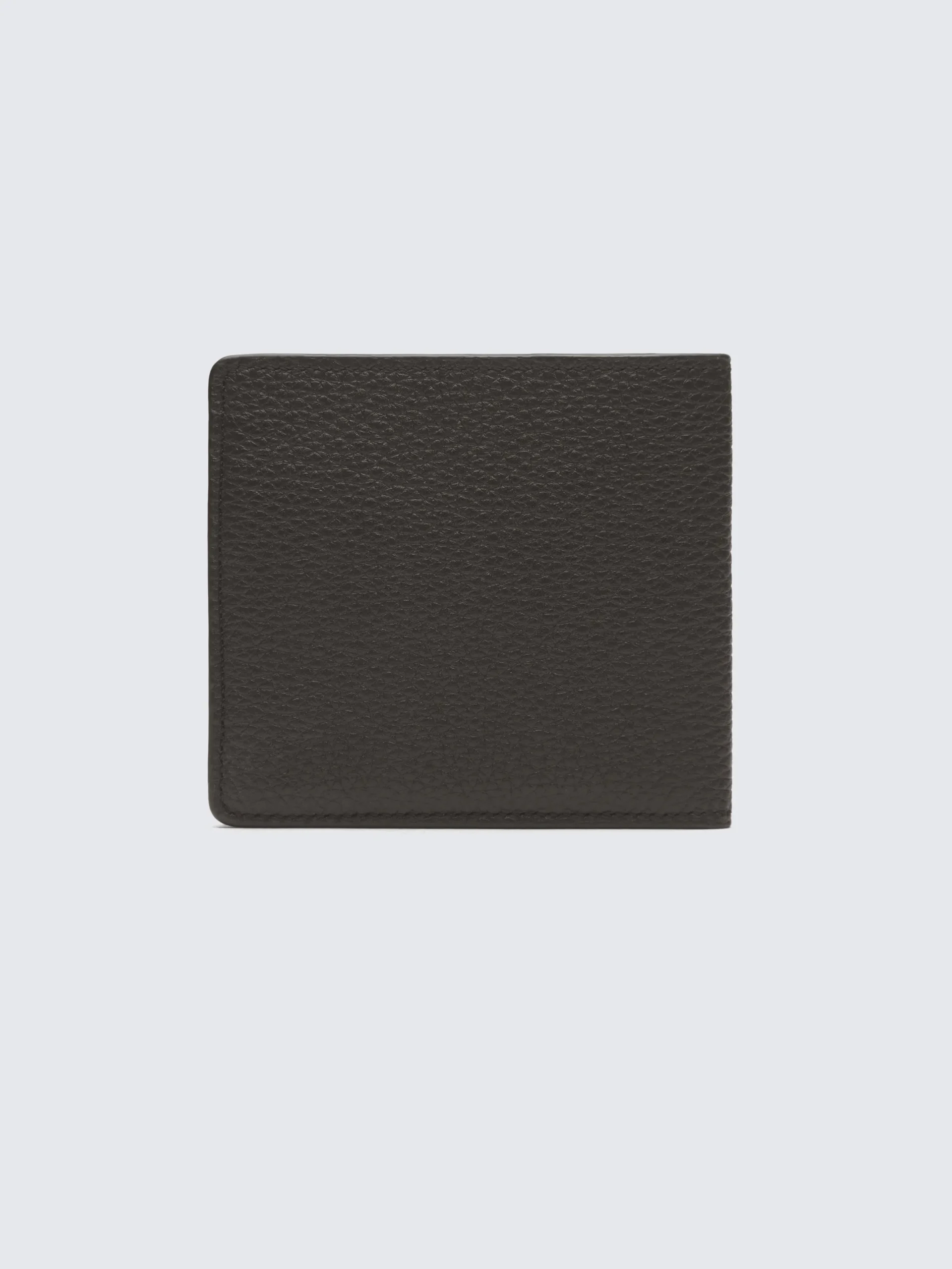 Dark brown classic compact wallet in grained leather, featuring eight card slots and central bill pocket, this piece has enough space and can easily be slipped into a trouser’s pocket. This piece is scratch-resistant, the treatment of this exceptional leather ensures that it ages beautifully over time.