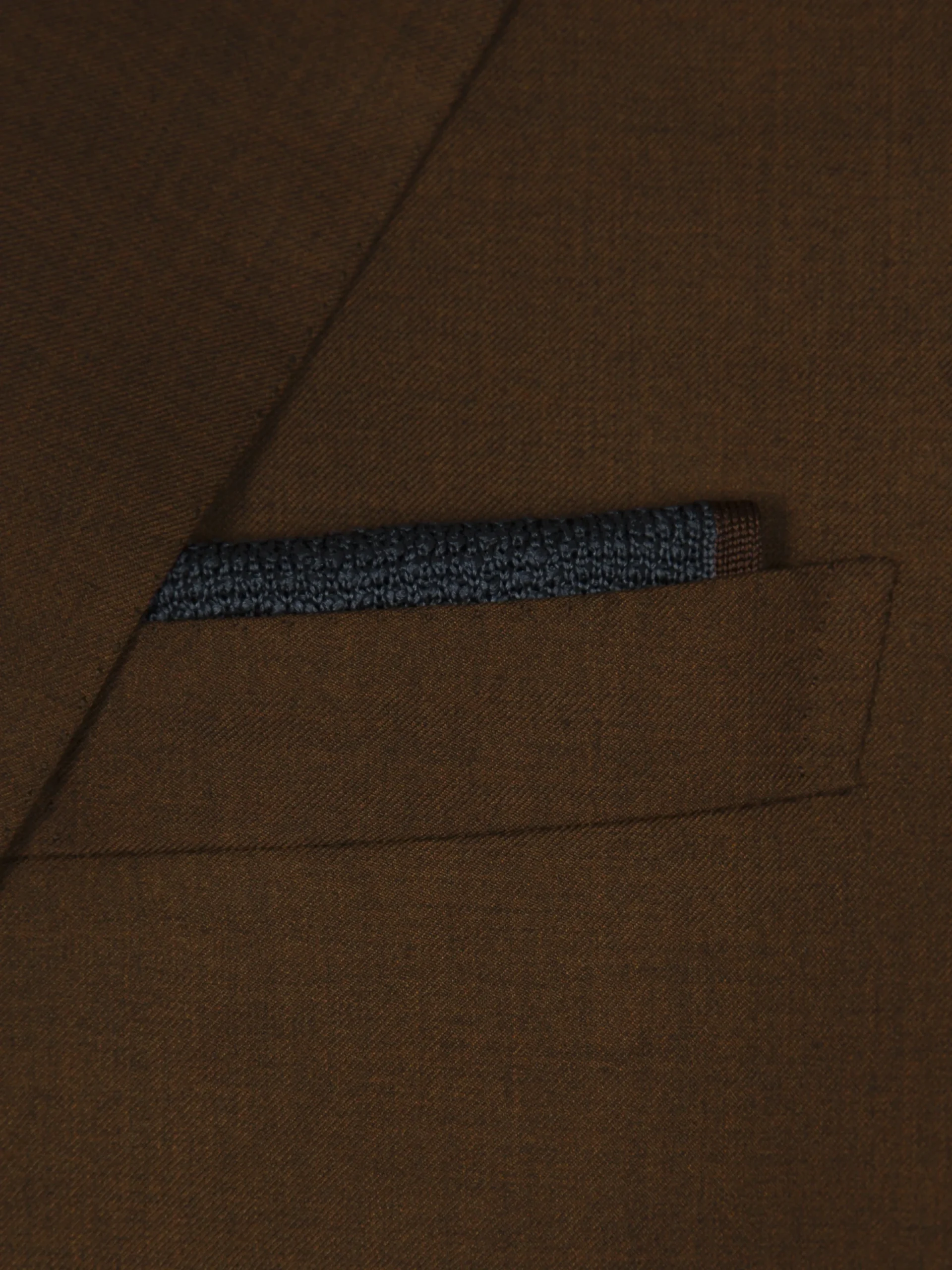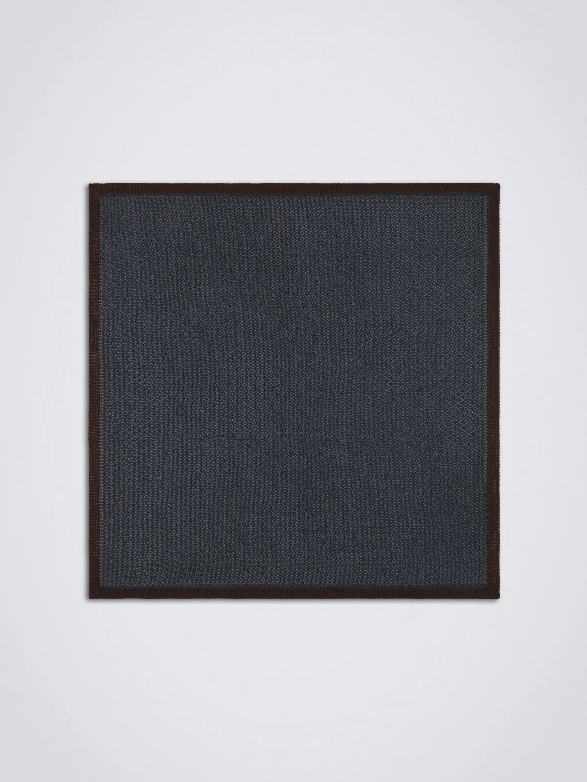Inspired by our famous tie world, this midnight blue pocket square with contrasting brown border, is made in a 100% silk knitted fabric. This particular texture is obtained thanks to a process which allows the silk threads to maintain extreme softness and vivid colours. This special piece will add an original and modern touch to your suit or jacket.