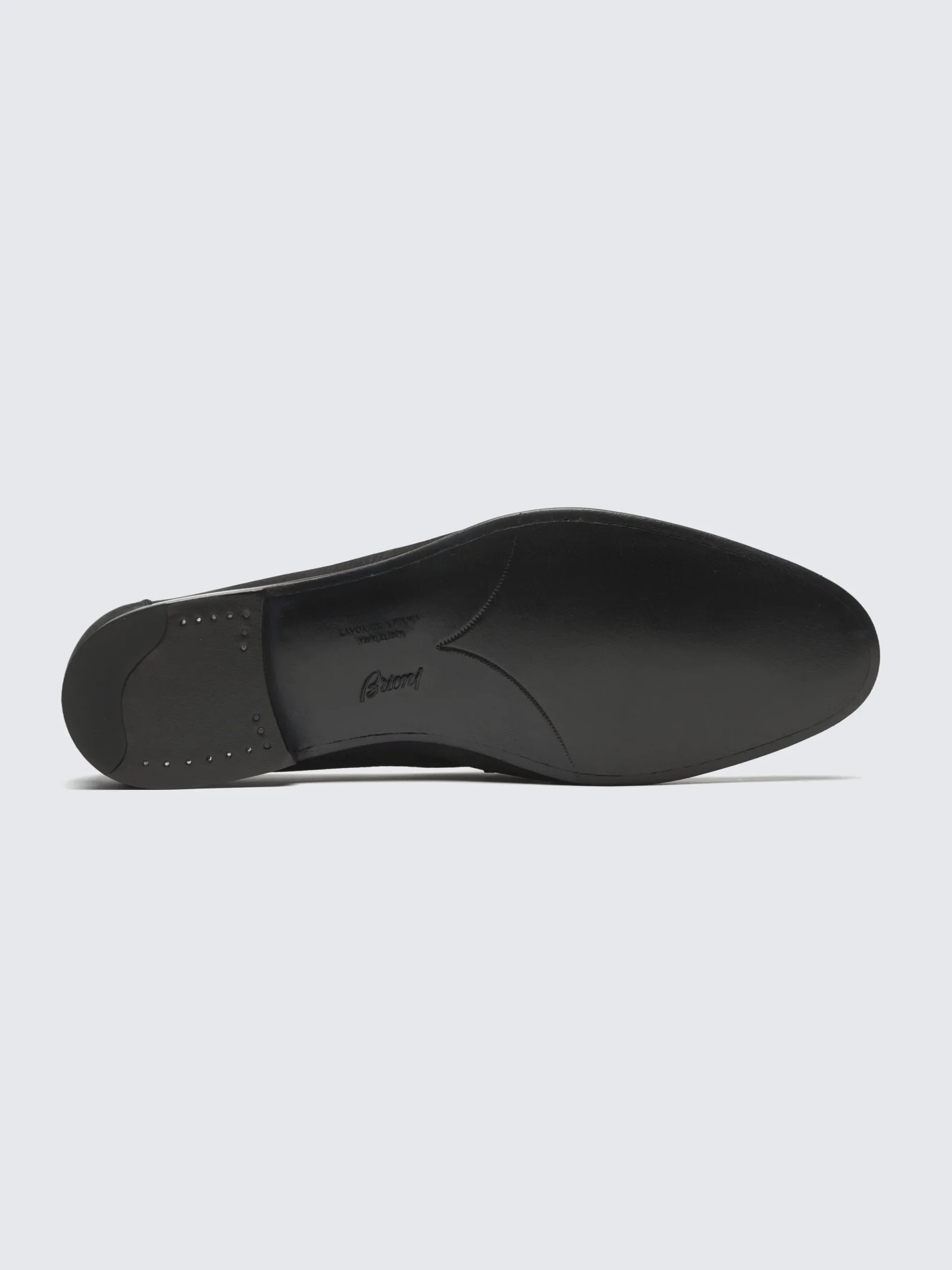 Brioni shoes are made of noble leathers selected by master craftsmen. Please consider fine wrinkles, veins or marks as a distinctive feature of the natural materials used. The shape and comfort of these shoes result from their design in keeping with the finest handcrafted traditions and techniques. The following gestures will ensure the long life of your shoes:• Alternate between different pairs of shoes each day to allow the leather to breathe and restore.• Insert wooden shoe trees to preserve their original shape.• Store them in their fabric dust bag and keep them in a dry place away from heat and light.• Before nourishing the leather, dust your shoes with the help of a soft brush.PATINA FINISH LEATHERClean it with a soft and slightly damp cloth. Use a nourishing colourless cream. Don’t use wax as this will alter the patina finish on your shoes.SMOOTH OR GRAINED LEATHERClean it with a soft and slightly damp cloth. We recommend you nourish the leather twice a month with the help of a nourishing colourless cream and a wax which will preserve its appearance and restore its original lustre.PATENT LEATHERClean it with a soft and slightly damp cloth. Finish by polishing it with a soft and dry cloth. SUEDE LEATHERClean it with a crepe rubber brush. We recommend you apply a colourless waterproofing and anti-stain spray before wearing your shoes and after every time you clean them.EXOTIC LEATHERClean it with a soft and dry cloth, following the direction of the scales.Return your shoes to a Brioni boutique for our leather artisans to restore them to their original state.