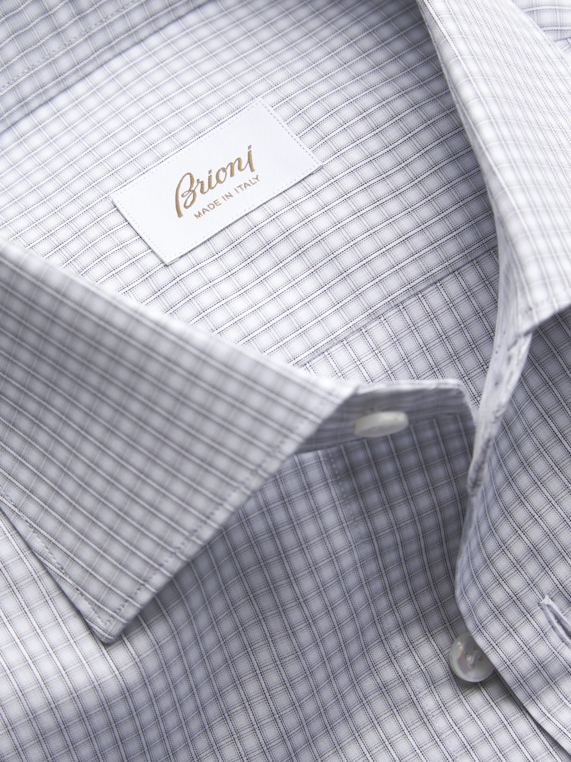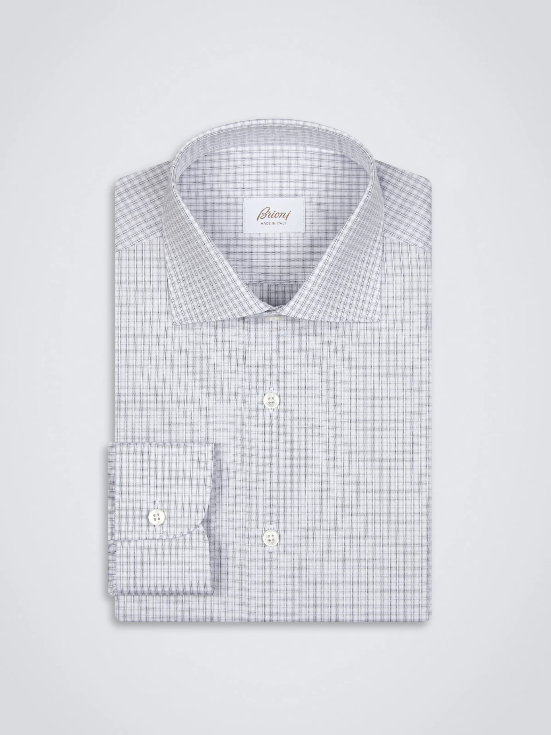White and lead grey checked cotton formal shirt. Featuring a regular fit, rounded cuffs, mother of pearl buttons and without front placket. Sleek and sophisticated, it is perfect to be worn with a tie. A true wardrobe staple.