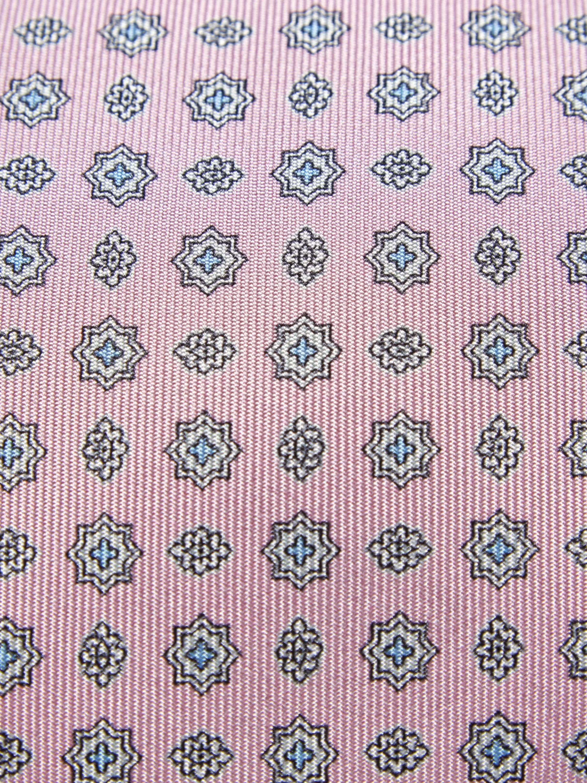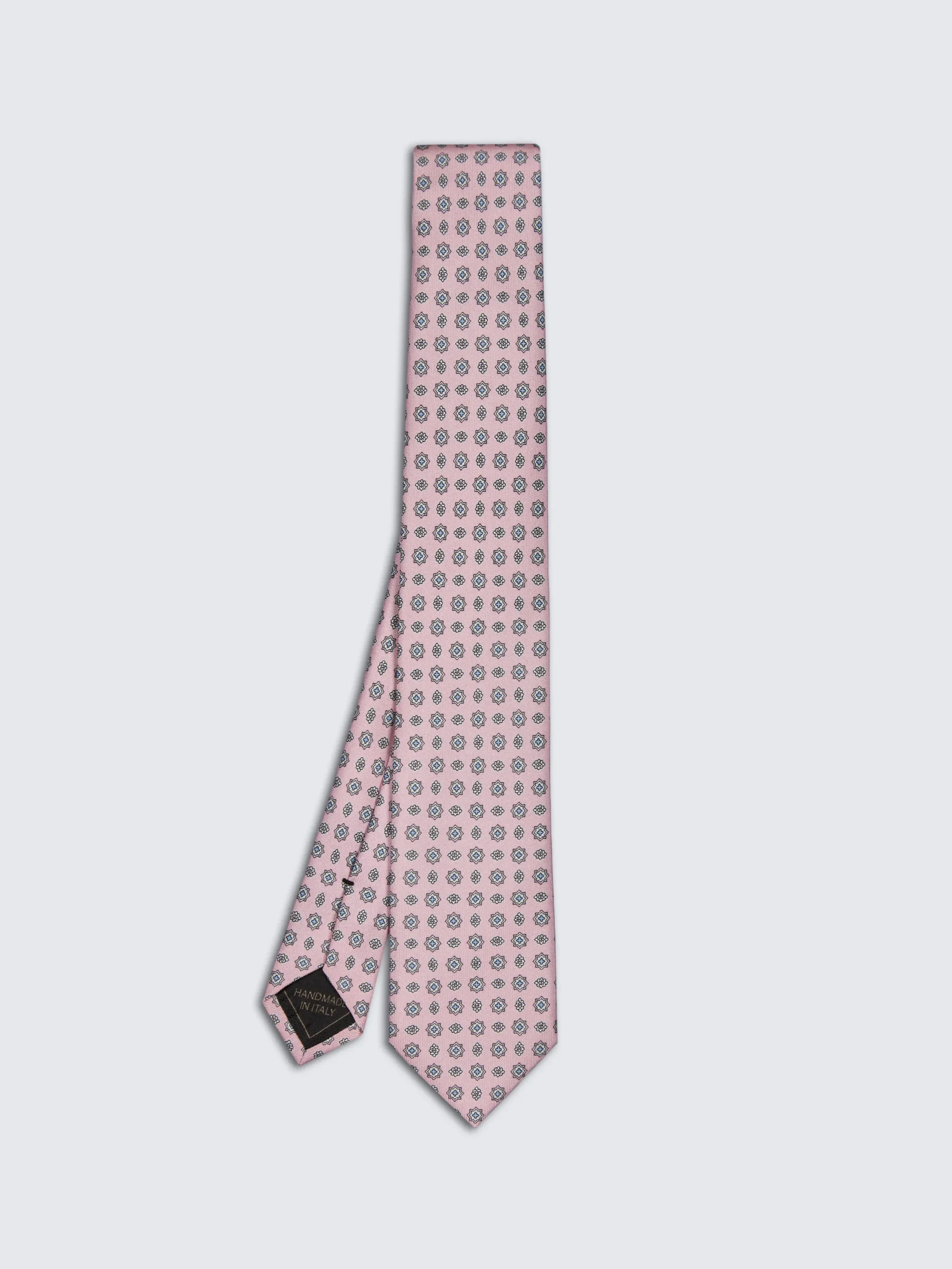 Pink and light blue micro motif silk tie. Brioni ties are the epitome of elegance, handmade from the finest materials. Featuring an internal wool canvas that keeps it structured over time, single internal thread running along the entire length, and silk jacquard lining with Brioni logo. Perfect to be paired with a white shirt and a formal jacket for a chic and modern look.