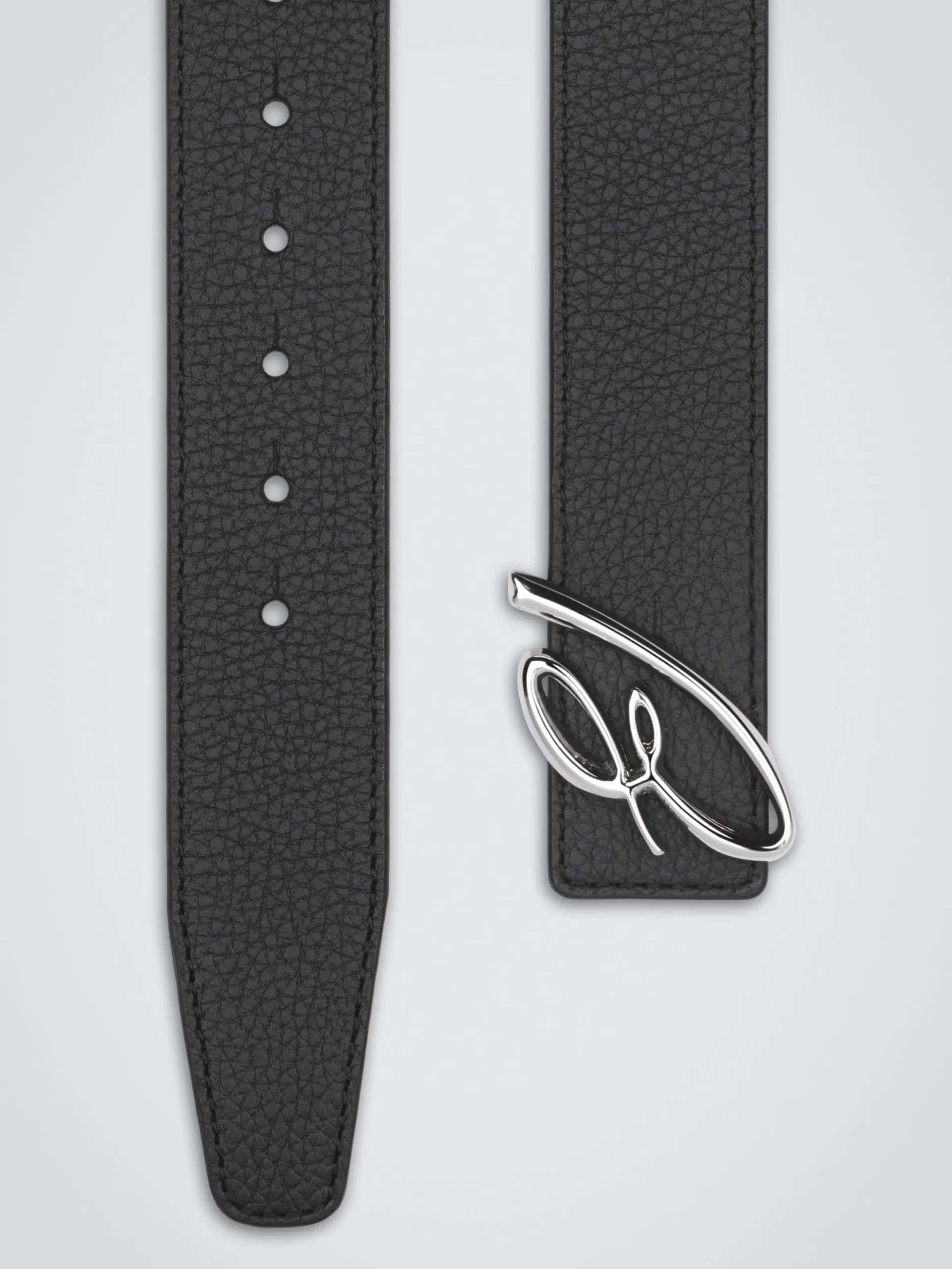 “,”features”:”ReversiblenBevelled shape endnShiny palladium « B » logo bucklenHeight: 3 cm