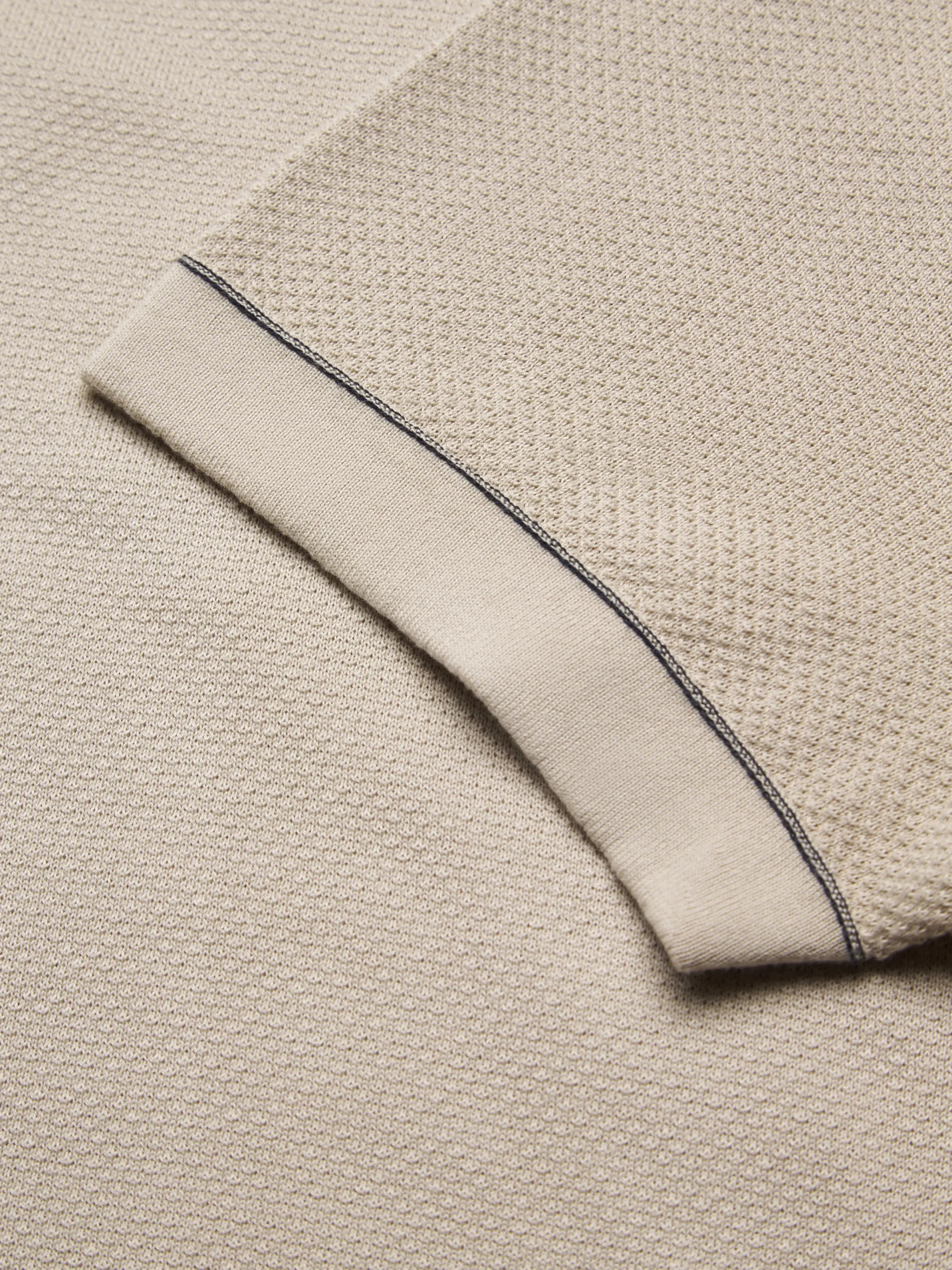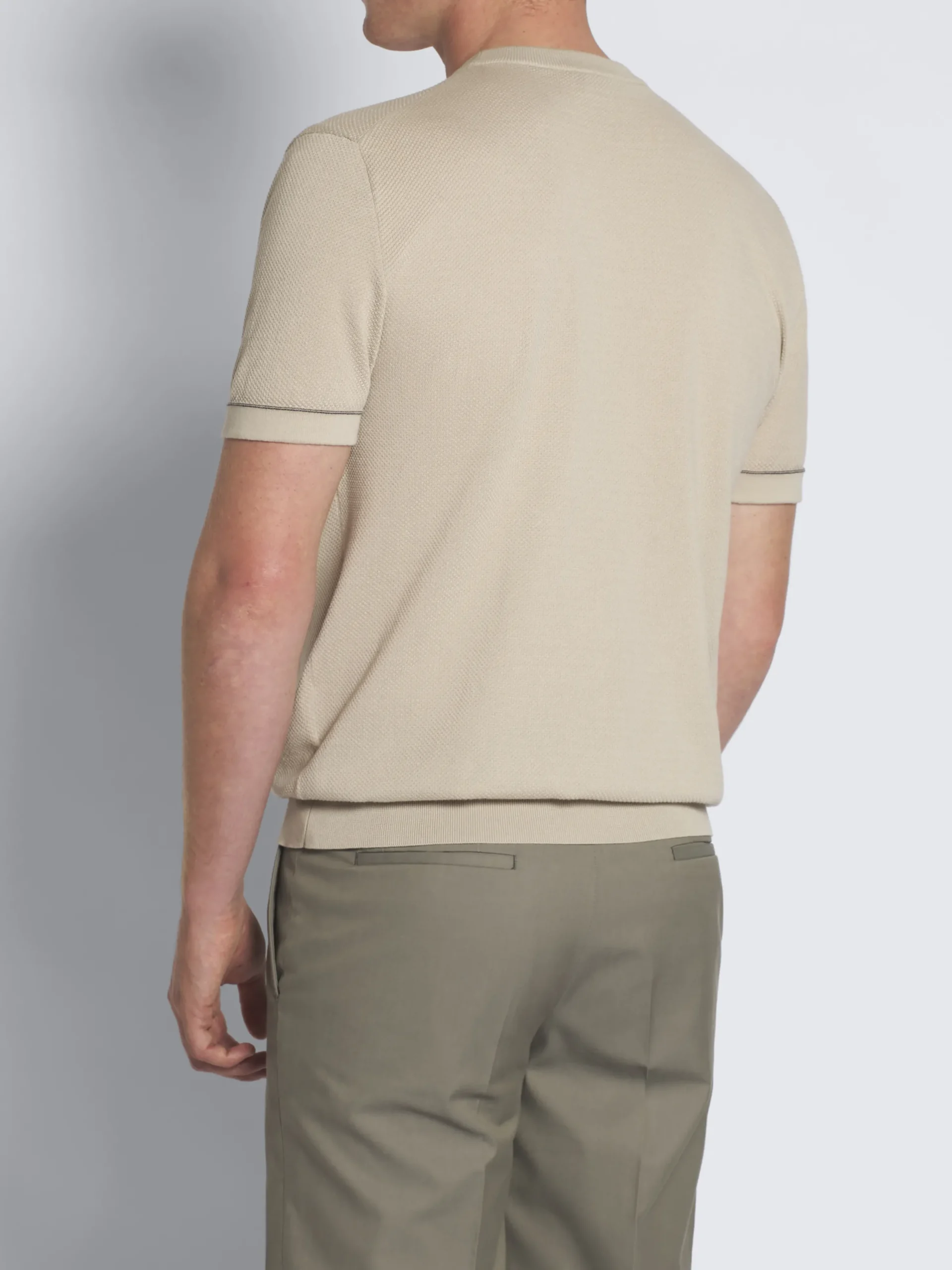 Beige Sea Island cotton piqué T-shirt. Featuring a regular fit, contrasting colour detail on hem and sleeves, and light ribs effect on collar, hem, and cuffs. The perfectly detailed piece to layer up for a relaxed yet contemporary look.nSea Island is one of the finest and most sought-after cottons in the world. Grown in limited quantities in the Caribbean, it is renowned for its long staple fibres which allow for a stronger, more resilient yarn, and result in an incredible hand feel, silky to the touch and smooth on the skin.