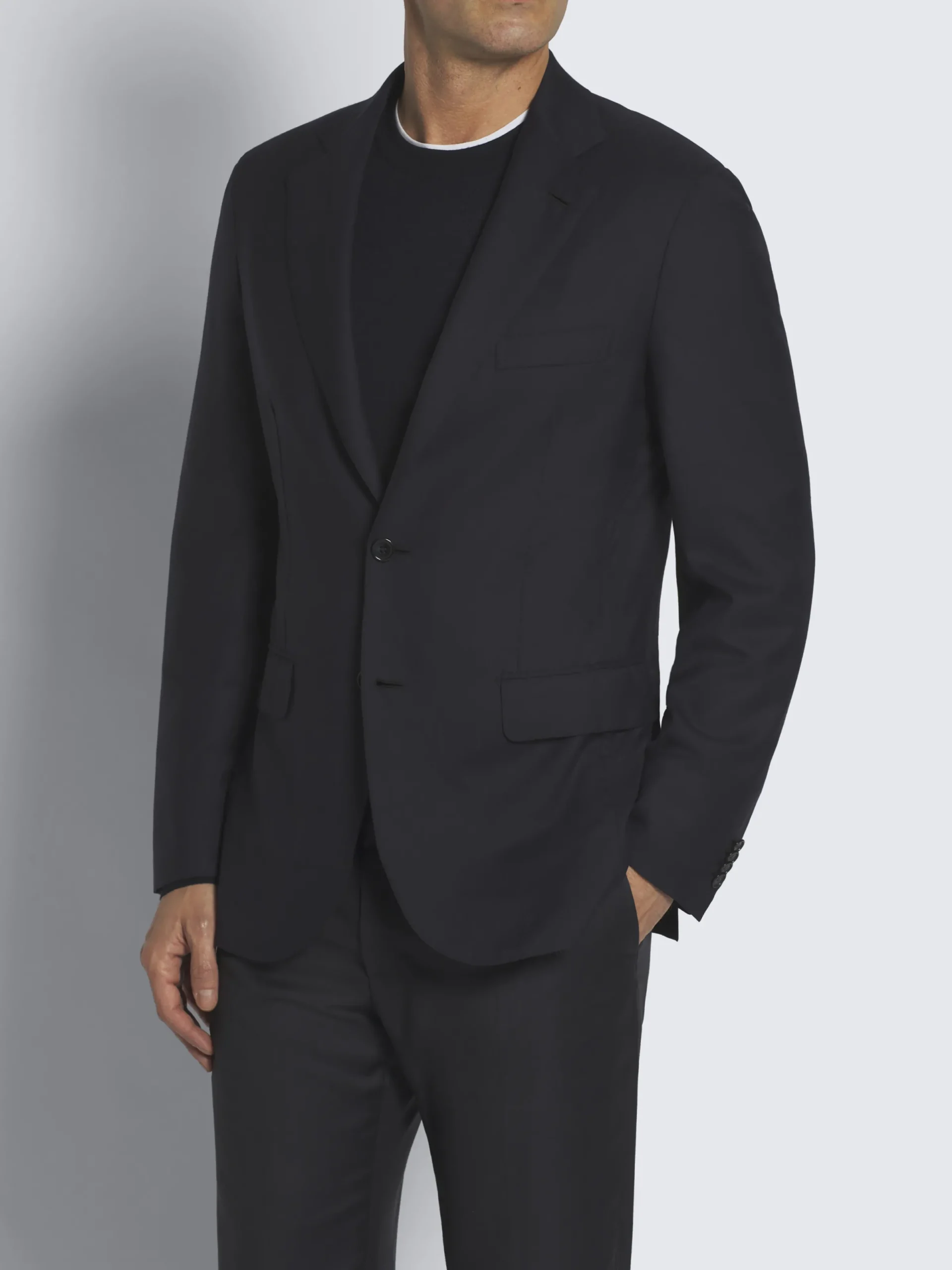 Ultra lightweight deconstructed midnight blue jacket, in wool and silk. Characterized by a relaxed fit, it features a light shoulder padding, two buttons, two back vents and hand-stitched sleeves and armhole edges. Completely unlined, with a contemporary feel and a light-as-air construction, the Plume jacket feels like a second skin and it’s effortlessly chic. A sophisticated touch to complete a wide range of outfits.