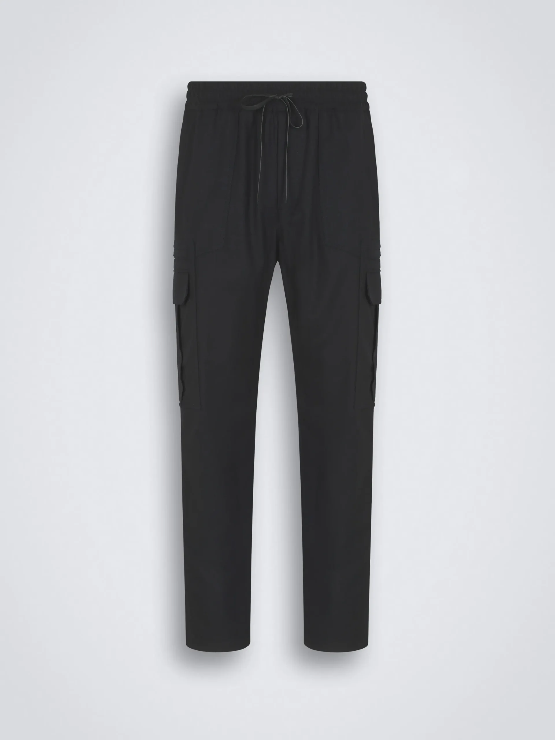 “,”features”:”Cargo trousers with straight hemnElasticated waistbandnLeather drawstring with hand painted edges and logo nZip front closurenTwo side patch pocketsnTwo flap pockets and one with zip ped pocket on the legnTwo flap pockets on the backnWaist: 39 cmnBottom: 19 cm measured on a size 50