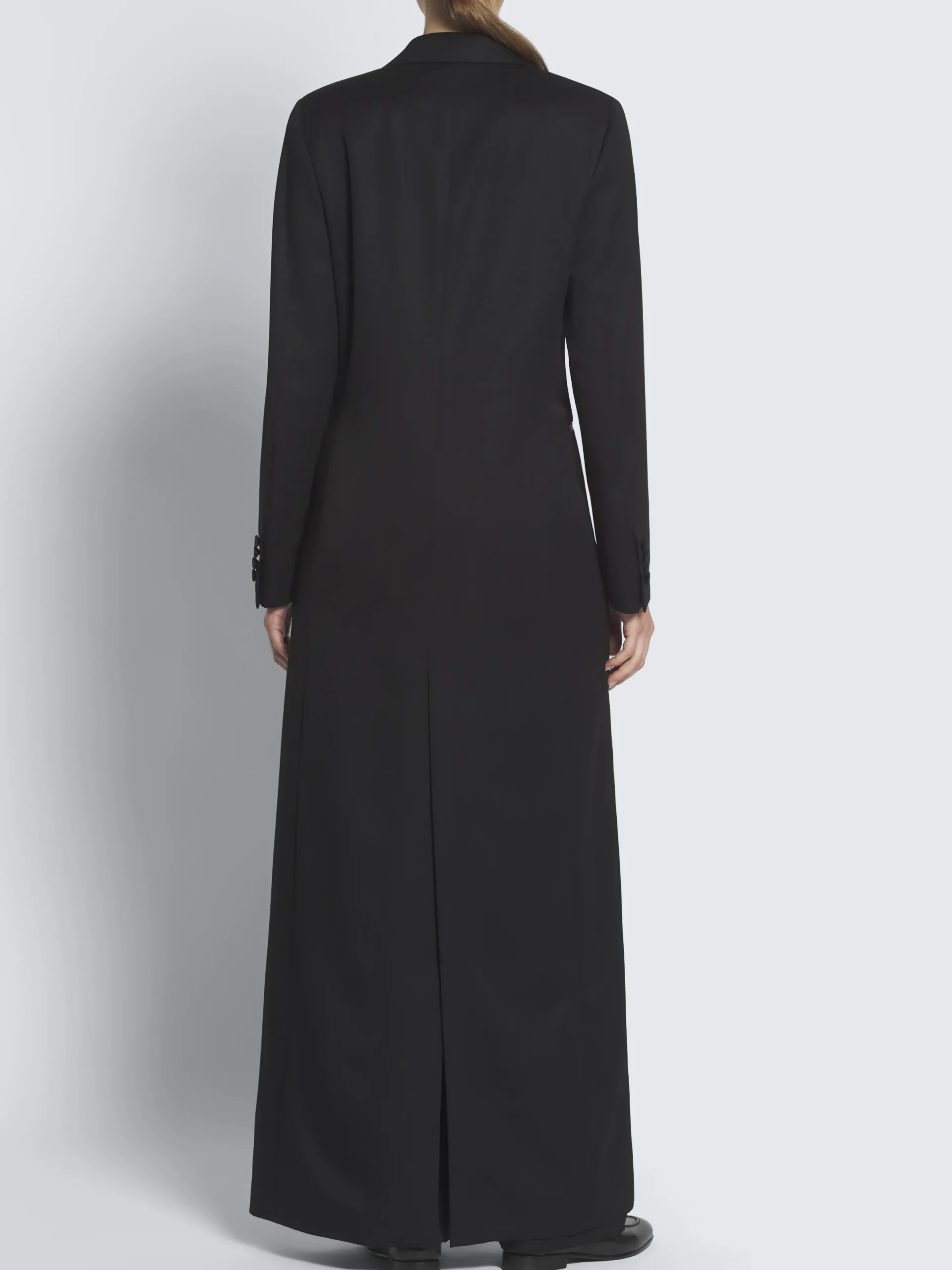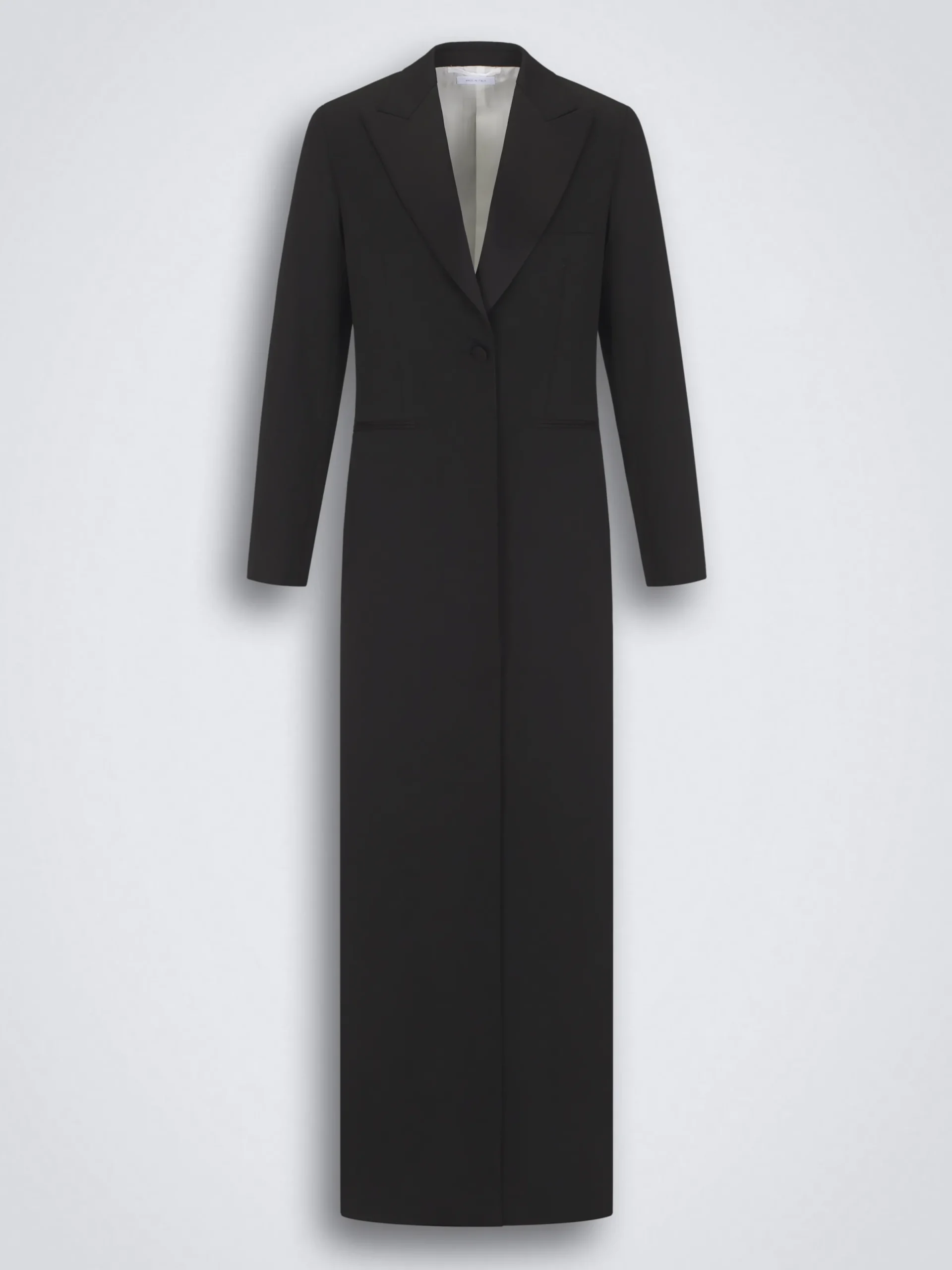 “,”features”:”Regular fitnSingle-breastednSingle button closurenLapels in silknOne chest pocketnTwo front jet pocketsnAMF stitching on lapels, collar and front closurenLength: 145 cm measured on a size 40nThe model is 176 cm tall