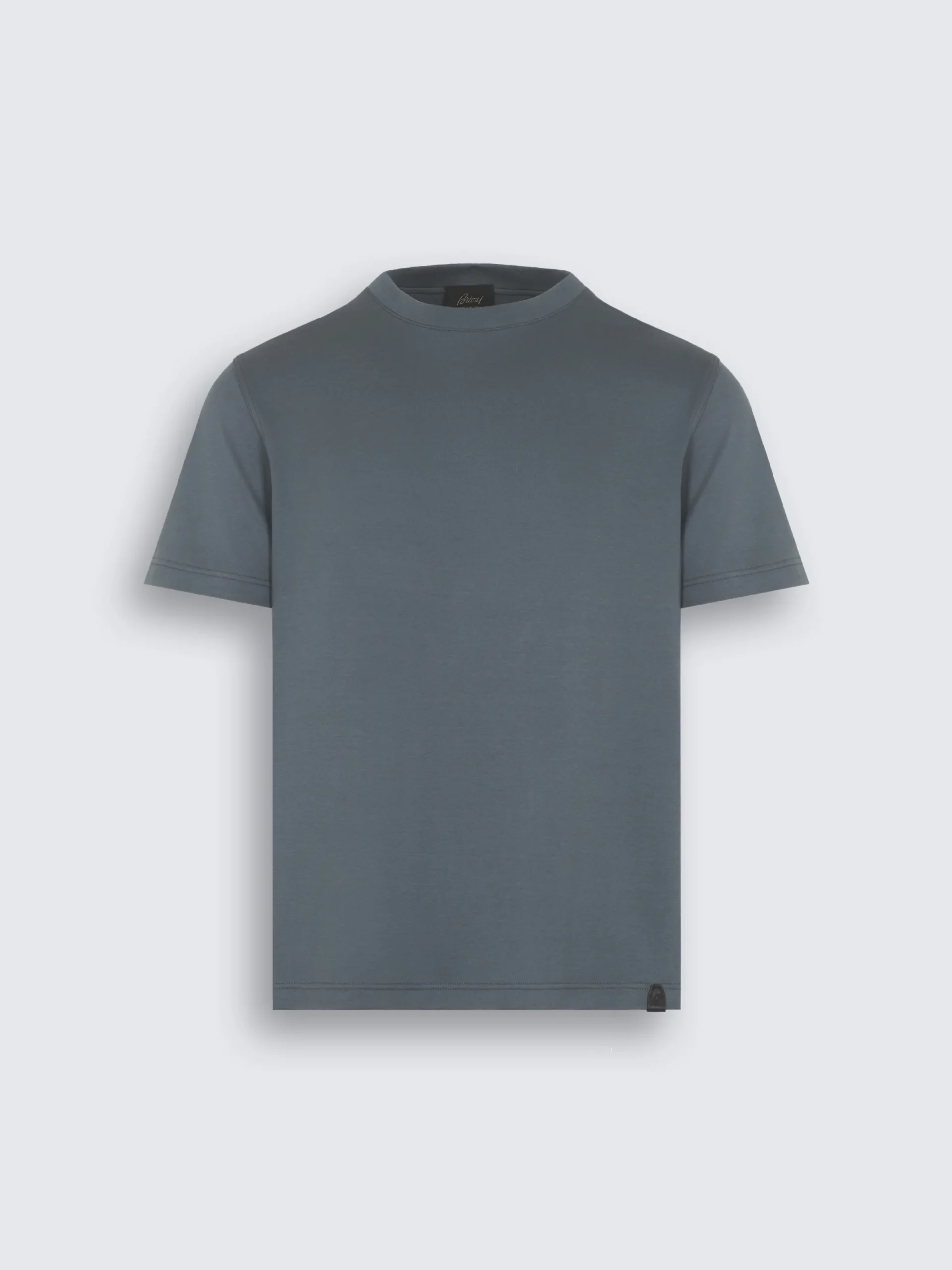 Steel blue Sea Island cotton T-shirt. Featuring a regular fit and leather bevelled gusset with « B » logo on the hem, this is the ideal piece for layering, adding effortless flair to relaxed looks. Sea Island is one of the finest and most sought-after cottons in the world. Grown in limited quantities in the Caribbean, it is renowned for its long staple fibres which allow for a stronger, more resilient yarn, and result in an incredible hand feel, silky to the touch and smooth on the skin.