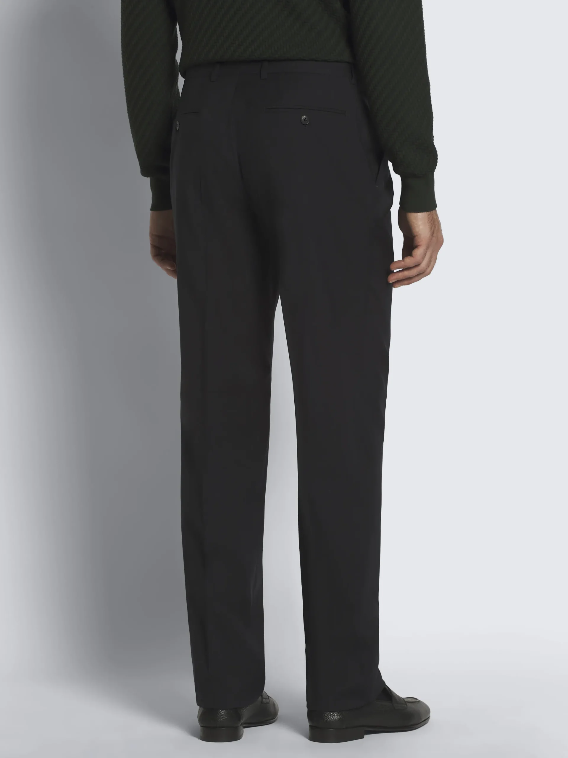 “,”features”:”Relaxed fitnDouble pleatsnTwo side slant pocketsnTwo jet back pockets with button closurenBelt loopsnWaist: 45 cmnFront crotch: 21,5 cm nBottom: 21 cm measured on a size 50