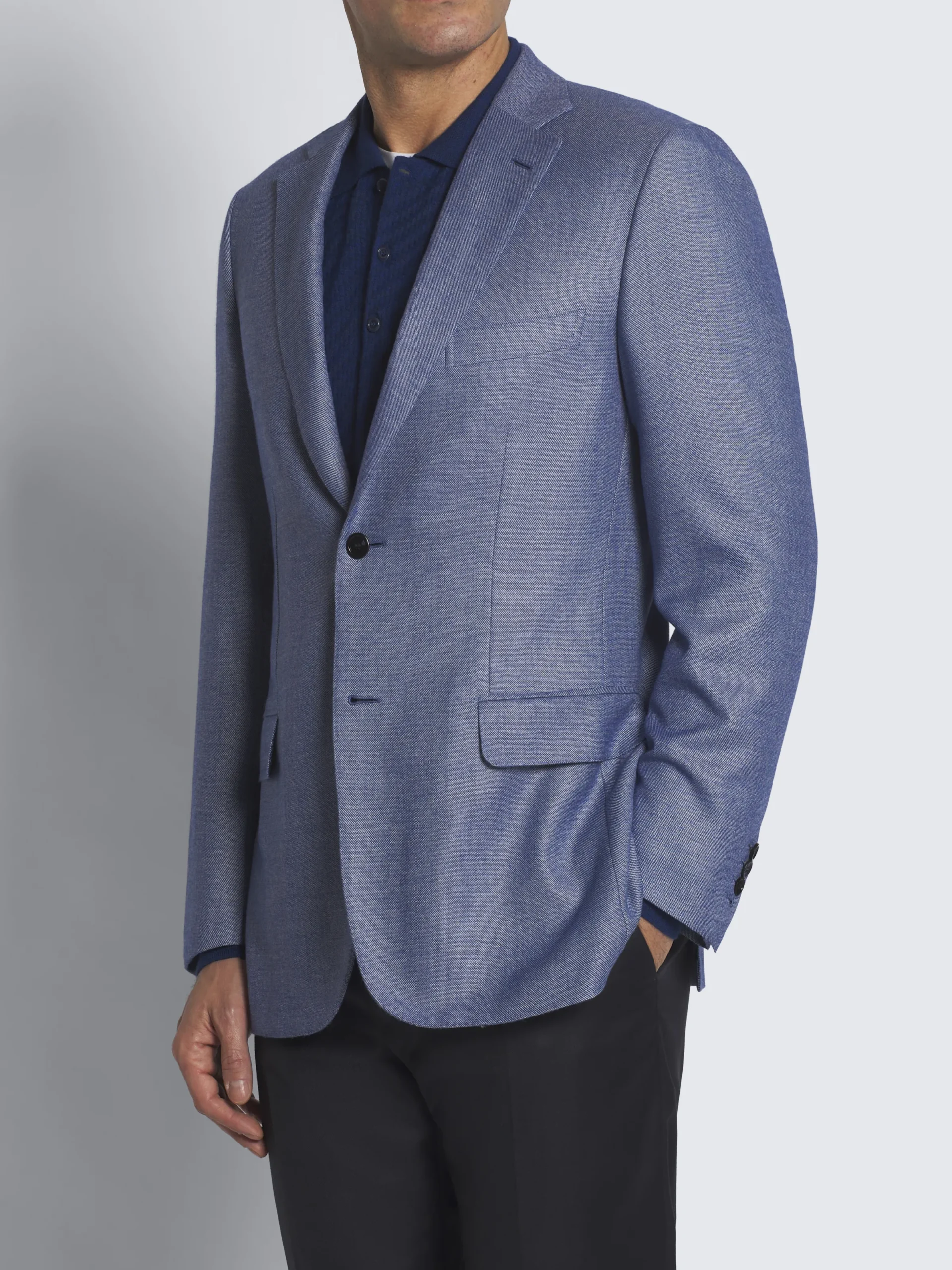 “,”features”:”Notch lapelnRegular fit, with a relaxed and light shoulder and high button stancenLength: 76 cm measured on size 50