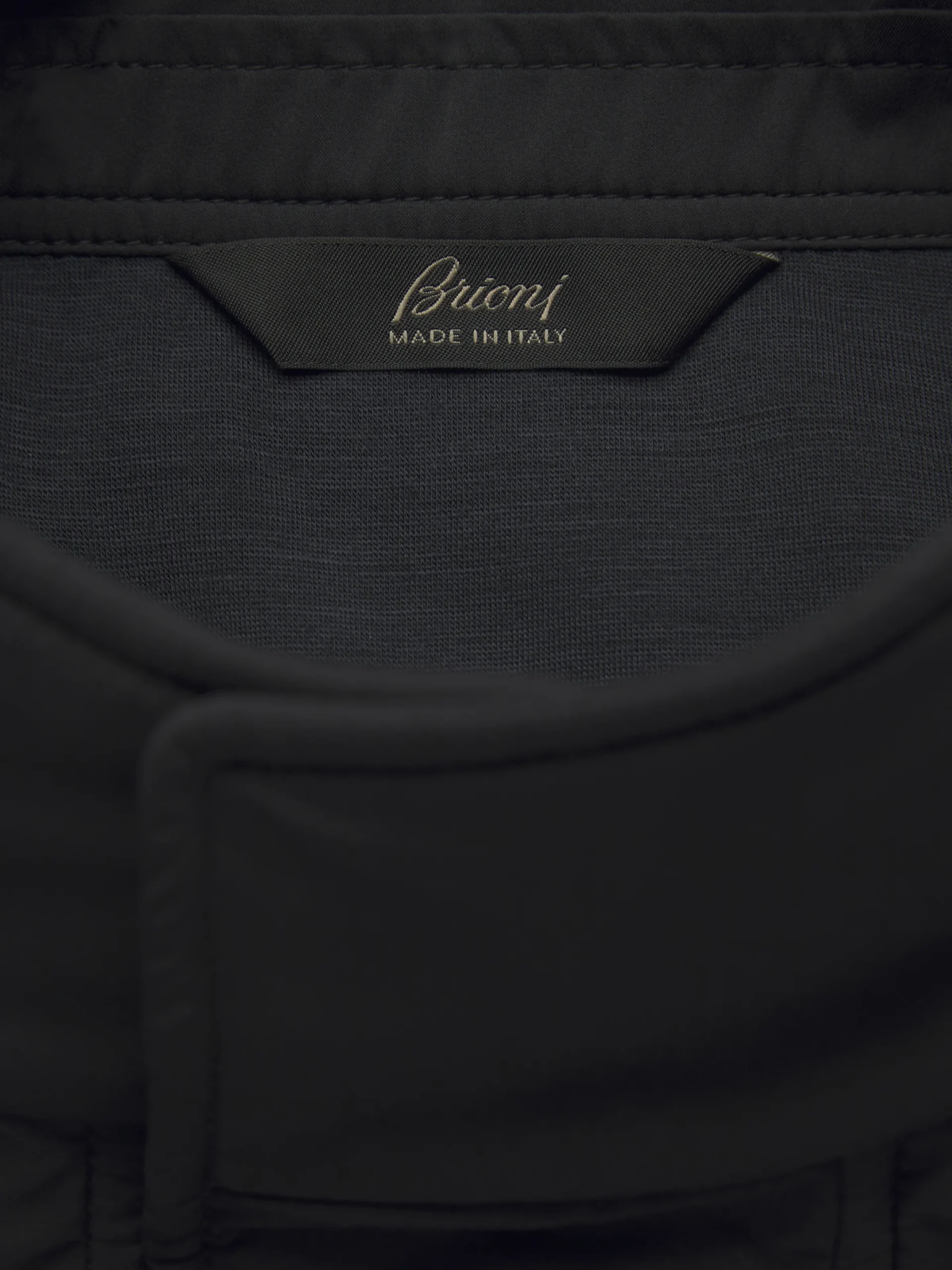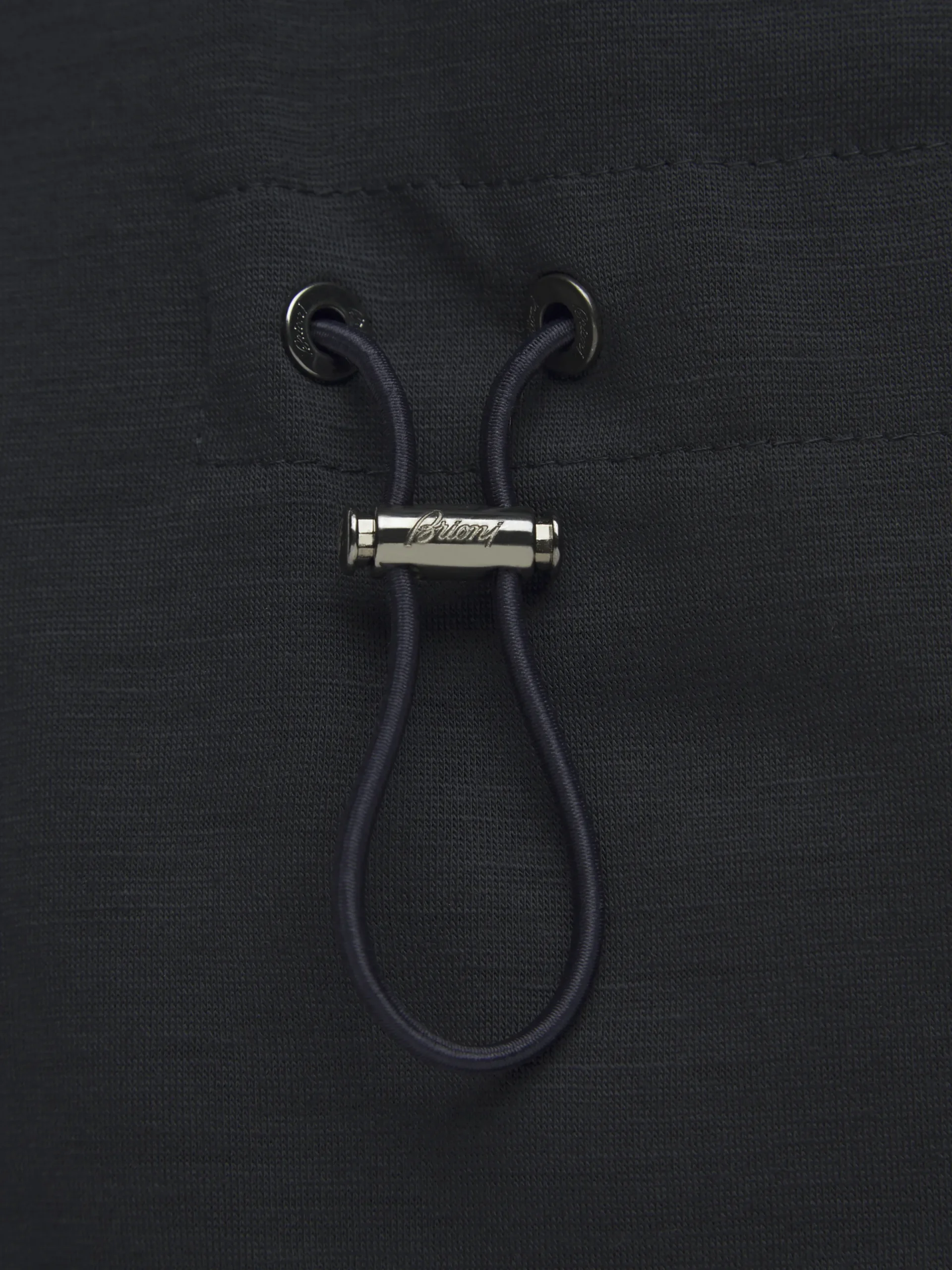 “,”features”:”Elastic waist drawcord nInternal pocket with button closure featuring a regimental stripe loopnLined in wool and cashmere jerseynLeather details are edge-painted by handnLength: 80 cm measured on size 50