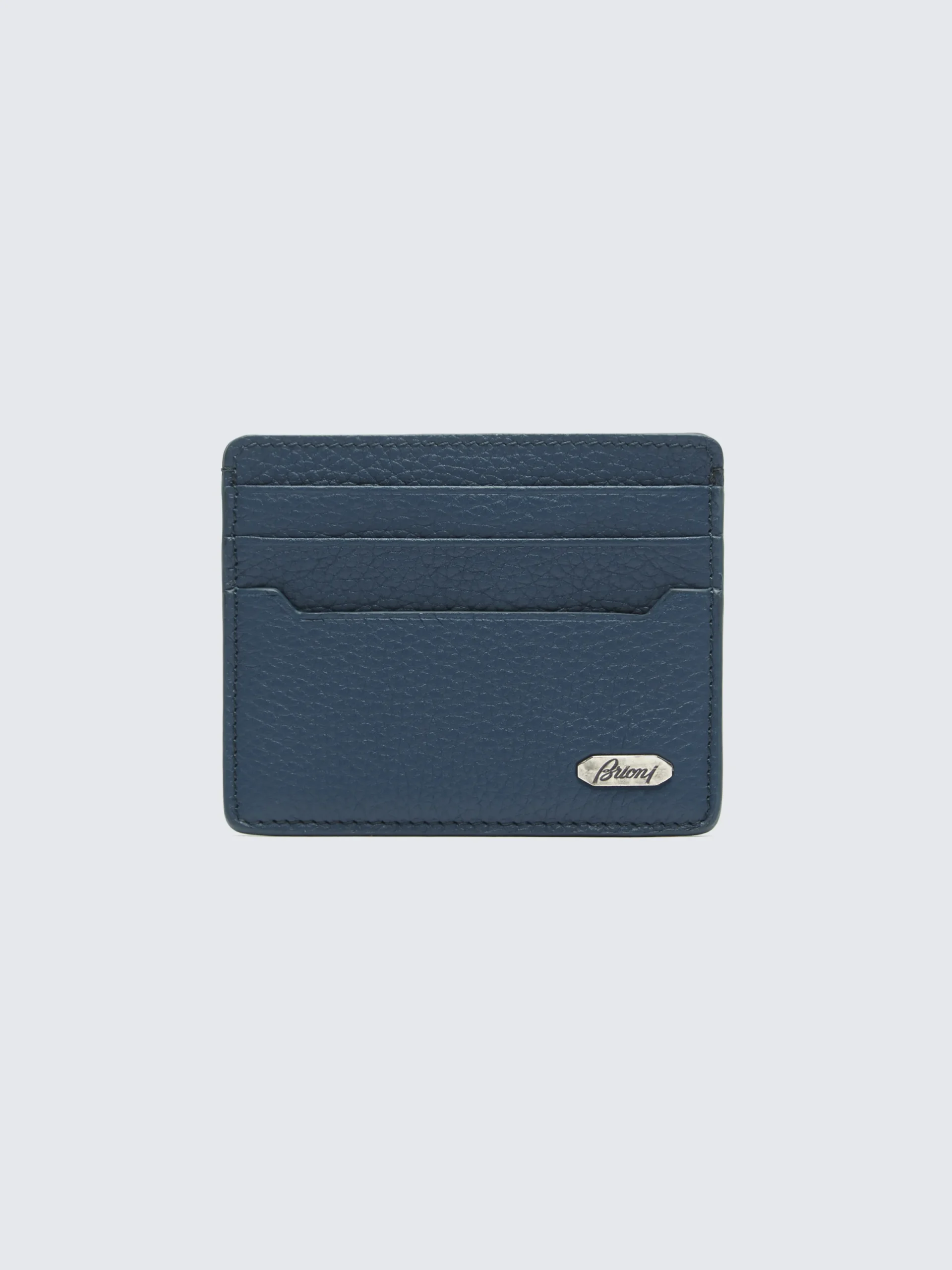 Sapphire blue grained leather card holder. The iconic octagonal Brioni logo is fully integrated into the leather, making it smooth to slide into a pocket. A compact accessory that that does not add any bulk, but has ample storage with its multiple card slots. This timeless and elegant accessory will prove to be invaluable. This piece is scratch-resistant: designed to last, the treatment of this exceptionally fine leather ensures that it ages beautifully over time.