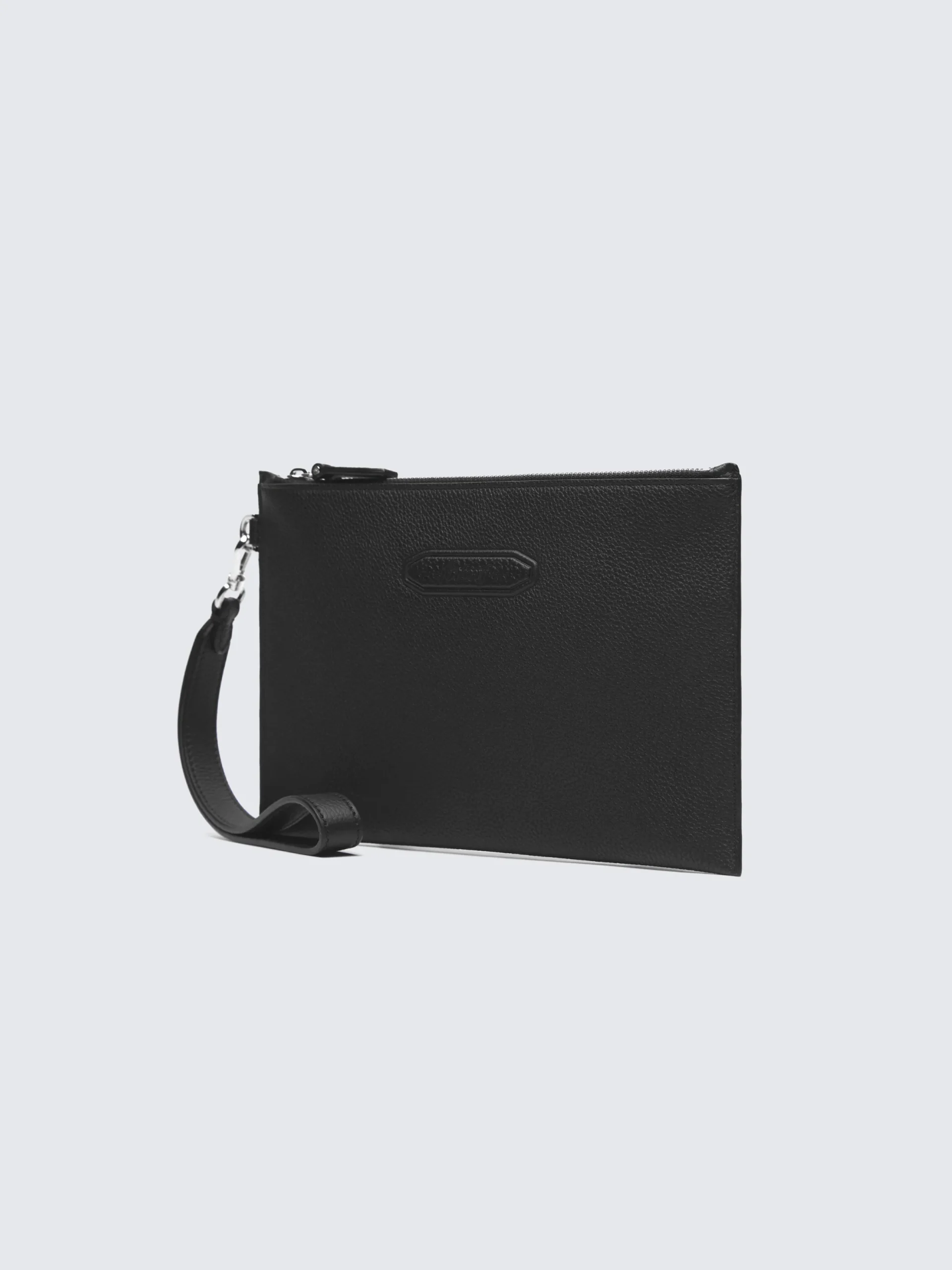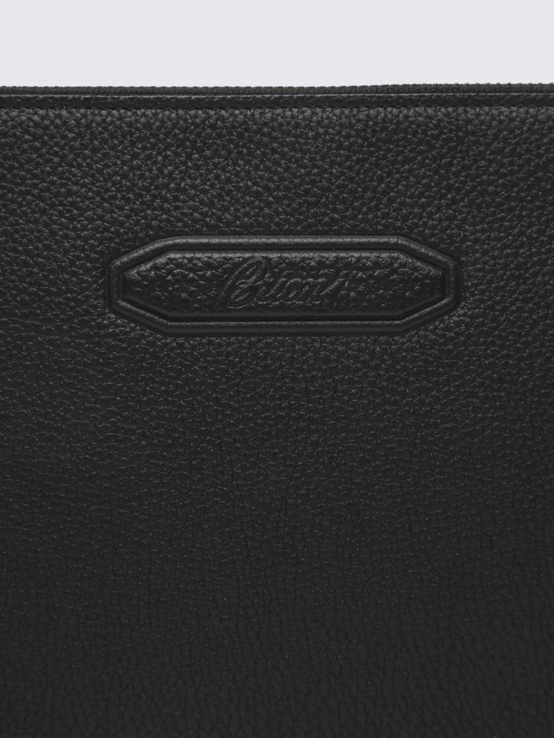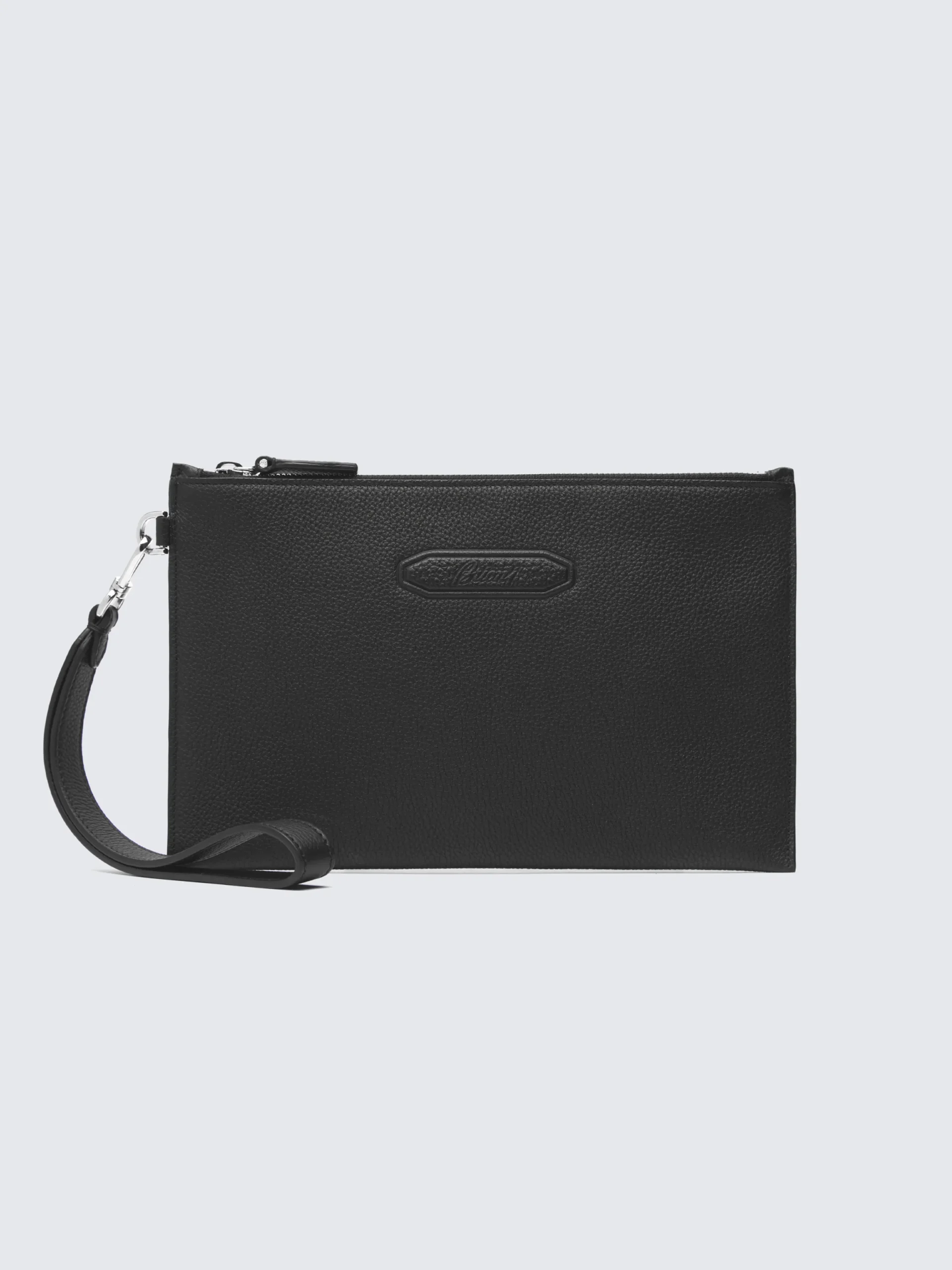 Black grained leather small pouch with external Brioni leather tone on tone embossed logo. A compact and light accessory for everyday use or for travel. A touch of personal luxury or ideal for gifting. This piece is scratch-resistant: designed to last, it will age beautifully over time.