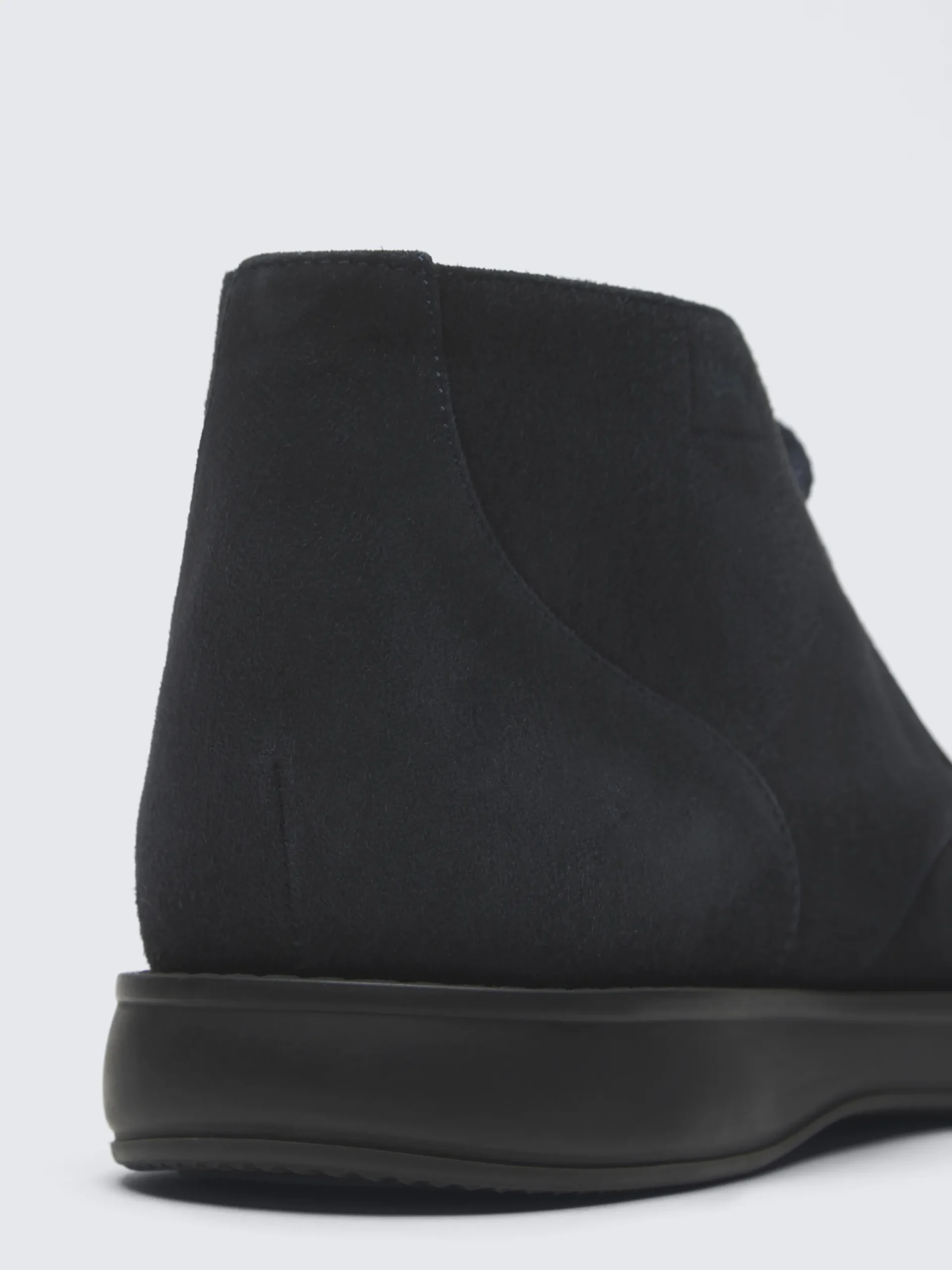 Midnight blue suede mid-cut desert boots. Featuring two eyelets, embossed logo with square embroidery on the side, rubber sole for extreme lightness and flexibility, rounded last for comfort and Strobel construction, these shoes are the perfect combination of form and function. Timeless and easy to mix and match, ideal to complement your laid-back look on casual days and weekends. In the Strobel construction the upper is joined to a lightweight insole forming a pouch, which is subsequently joined to the sole. It guarantees a strong support for ankle torsion, crucial for footwear that requires great comfort and performance, like sailing shoes and active sneakers.