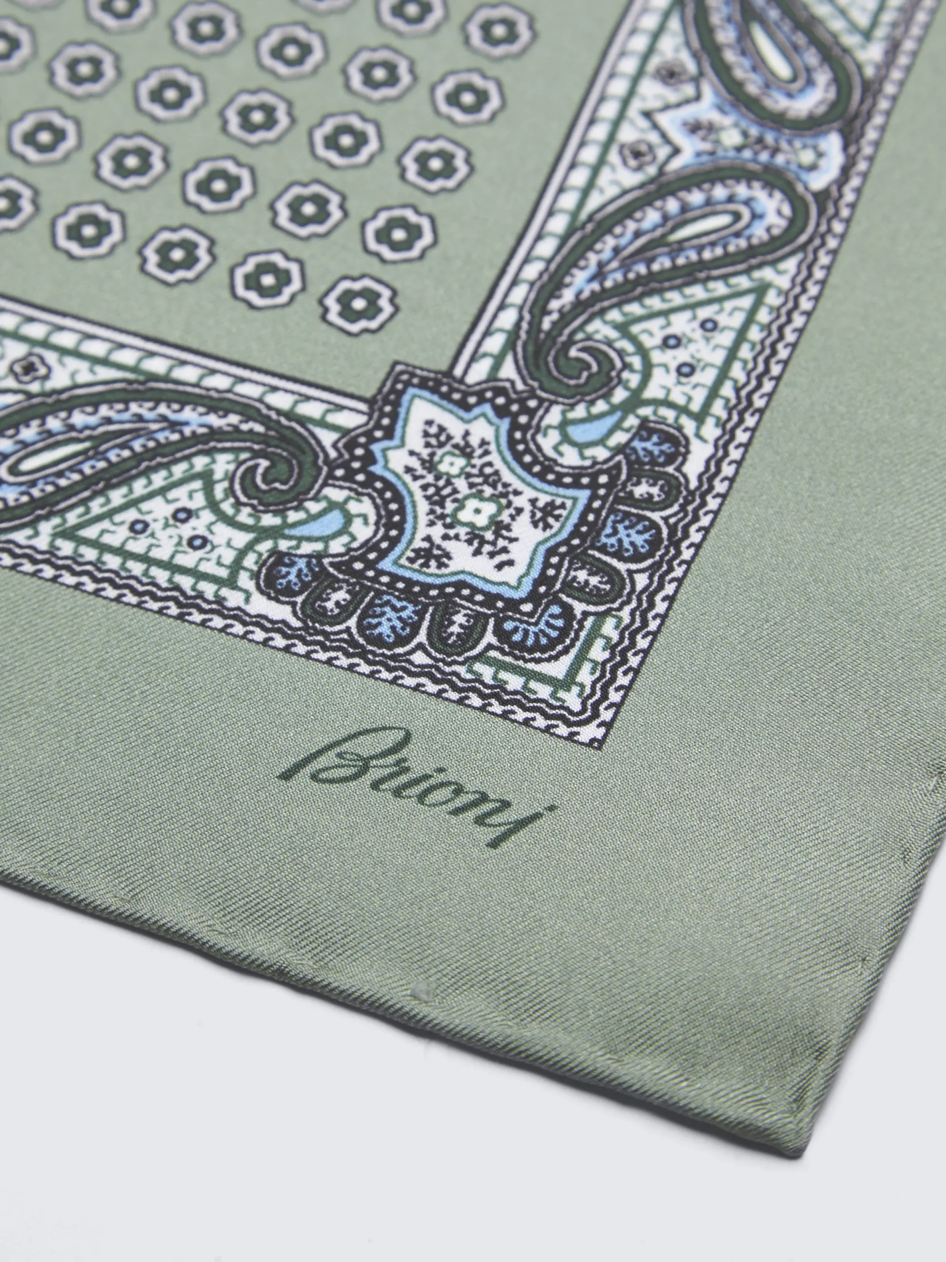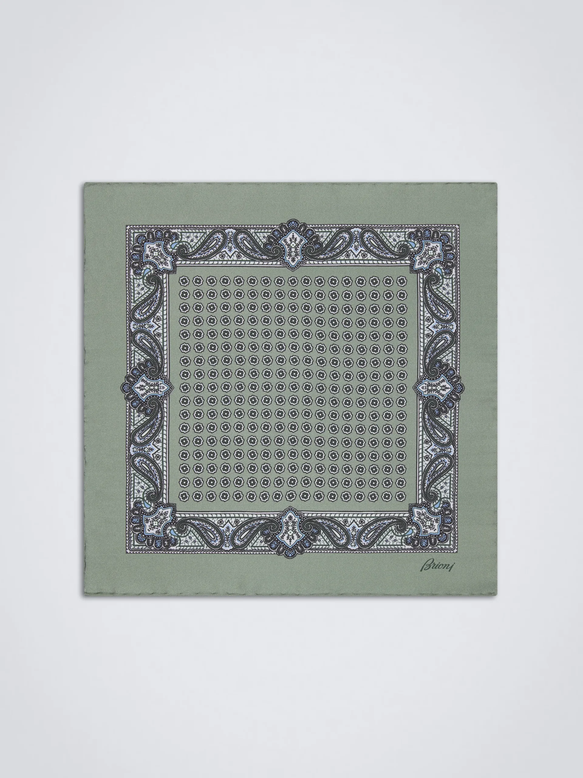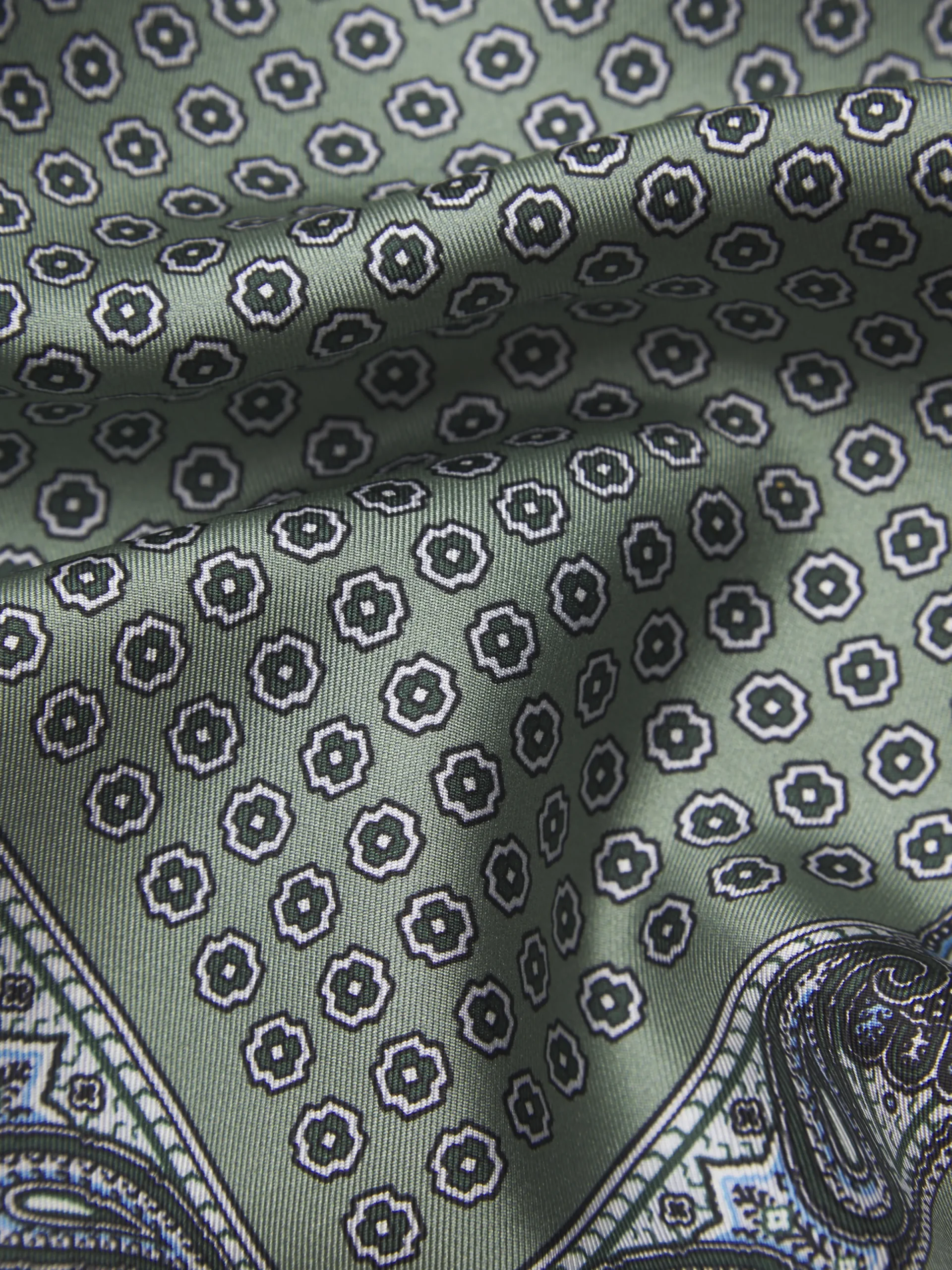 Aqua green and charcoal grey silk pocket square. This ultra-versatile piece is perfect to add an elegant touch to your formal jacket.