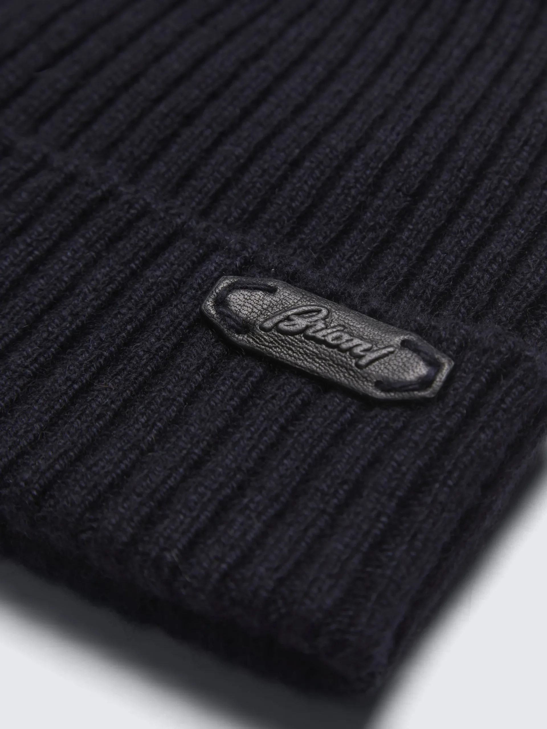 Midnight blue ribbed beanie in 100% cashmere with subtle leather Brioni logo. Inspired by our knitwear garments, this incredibly soft accessory has been pieced together by hand. It will add a contemporary-cool touch to your look, and will keep you warm on the coldest winter days. Complete the look with a matching scarf.