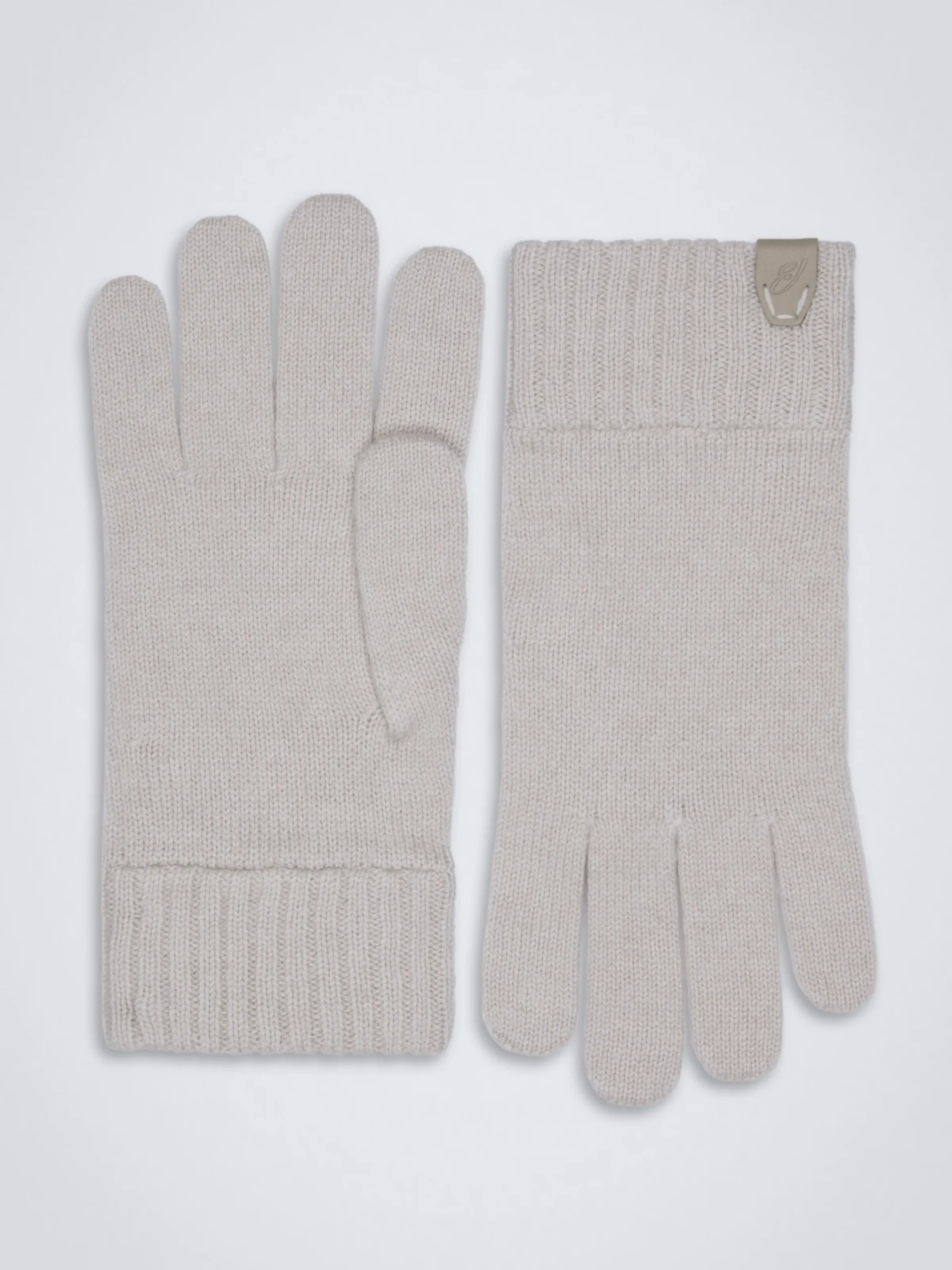 Ivory white cashmere gloves. Featuring a « B » logo nappa leather detail on the ribbed wrists. This timeless and soft accessory is the final classic touch to a wide array of outfits.