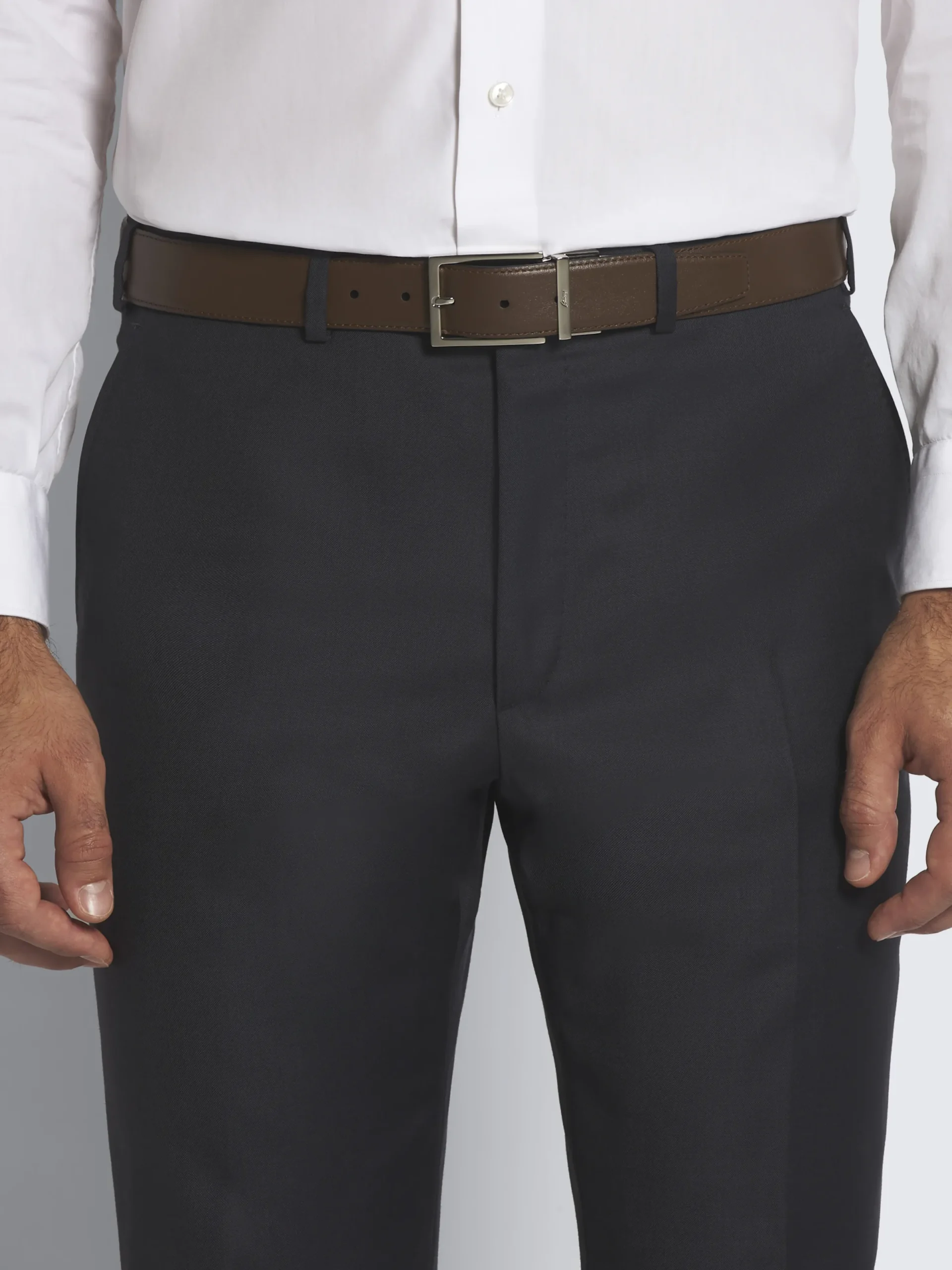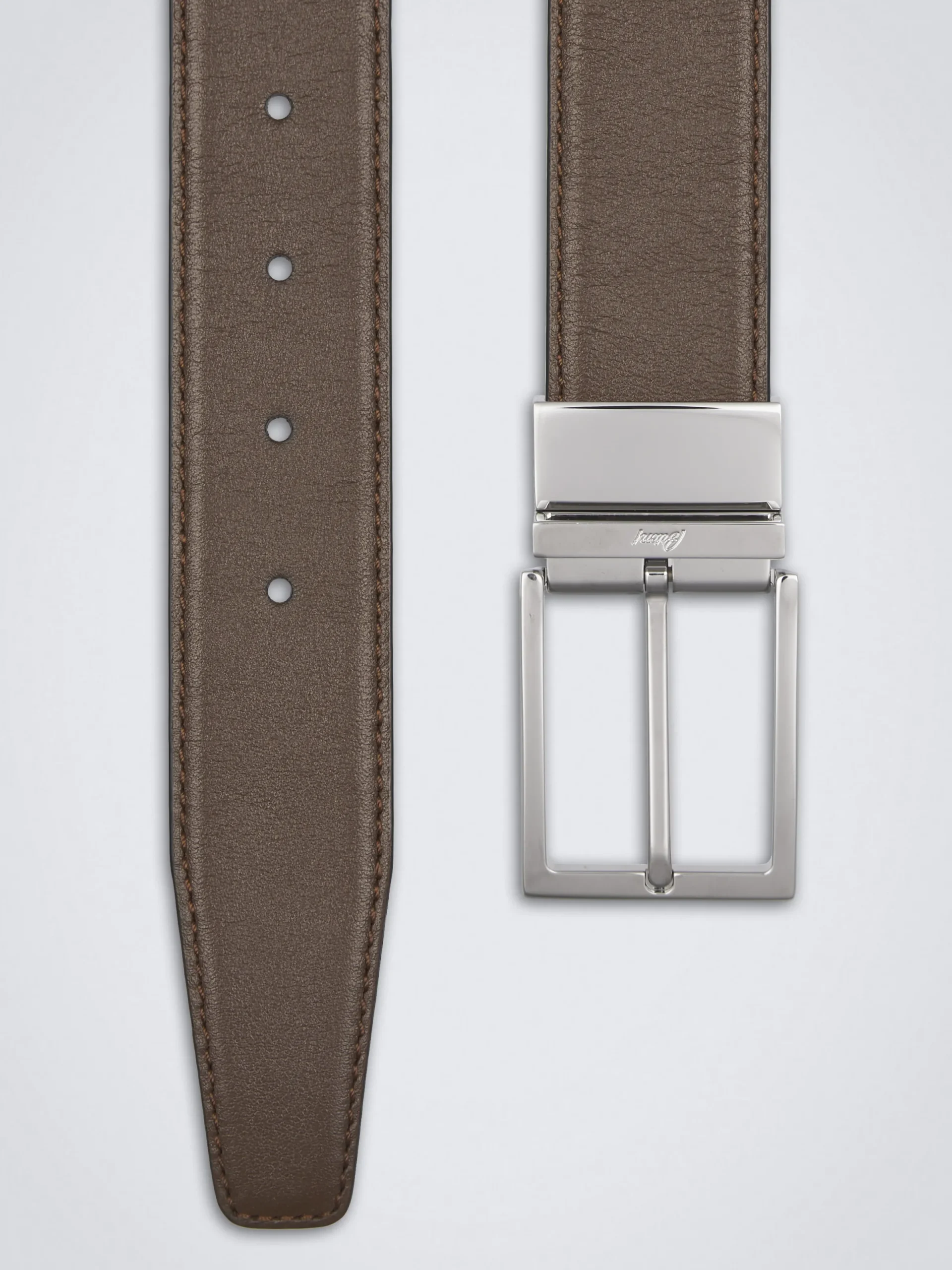 Brown leather belt. Featuring a metal buckle with palladium brass finishing and hand tinted sides, versatile yet iconic, this piece will accompany you for years to come.