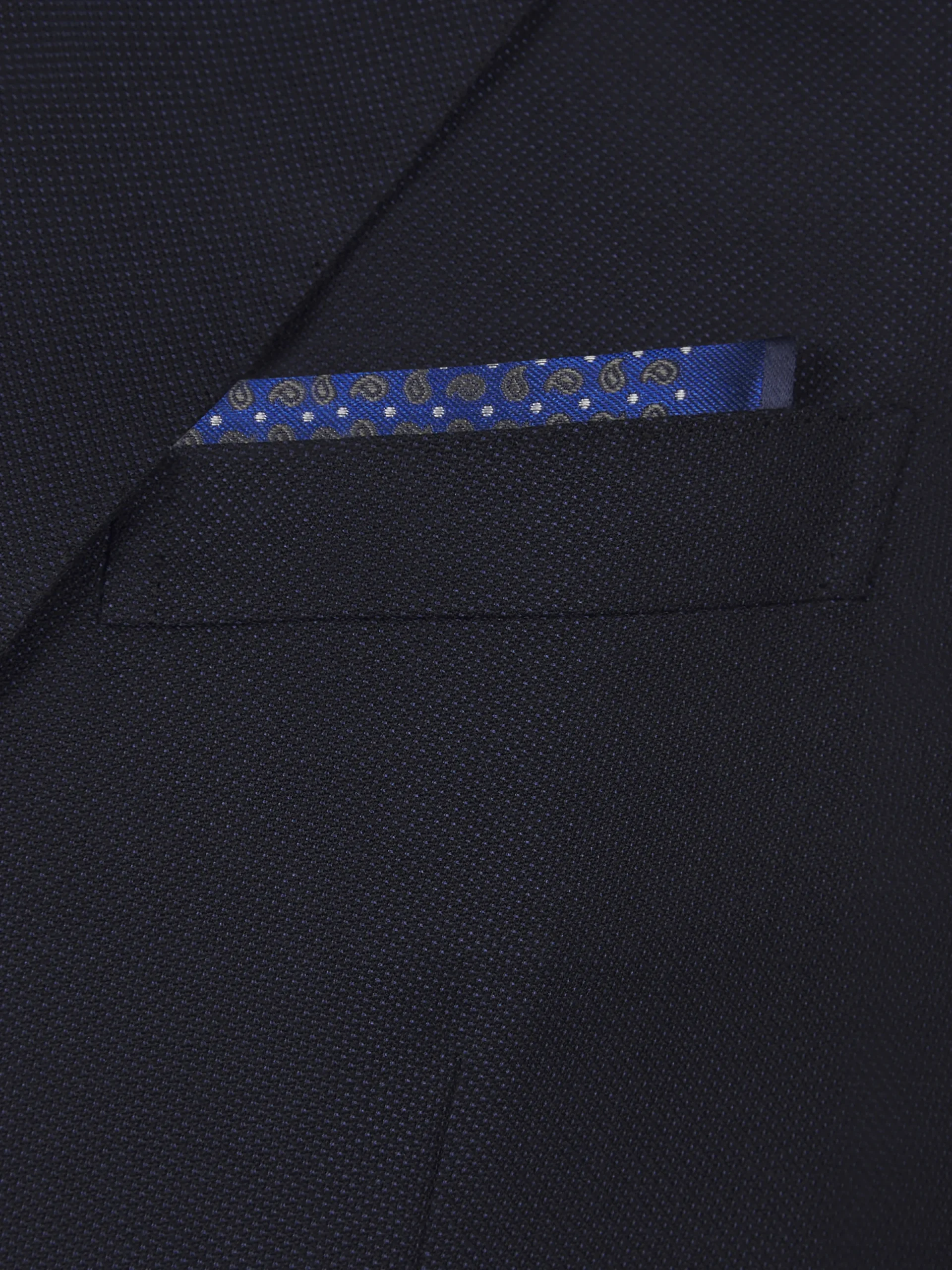 Royal and navy blue paisley motif silk pocket square. Featuring a Brioni logo detail, this refined piece is handcrafted in Italy and will add a sophisticated touch to your jackets.