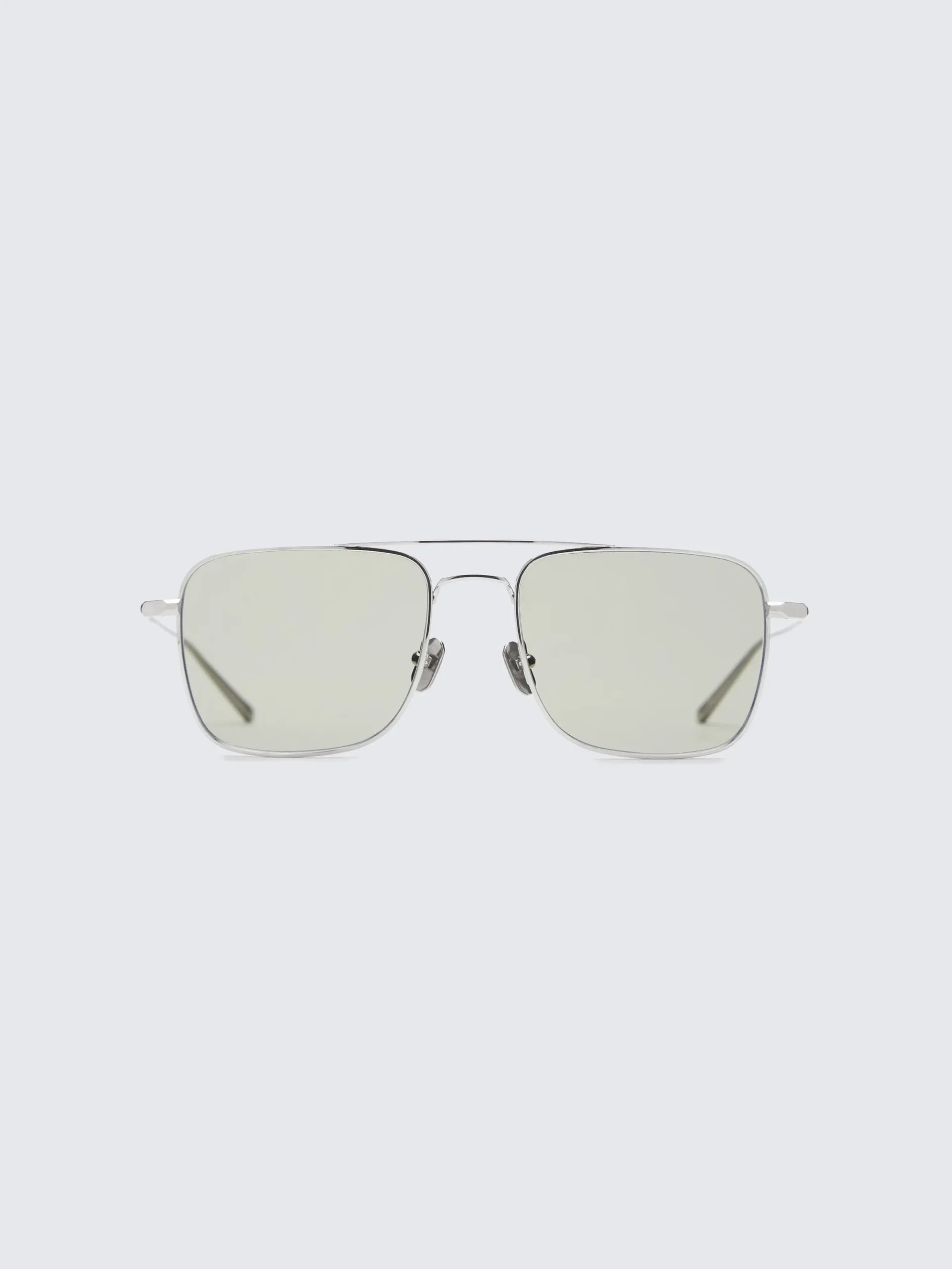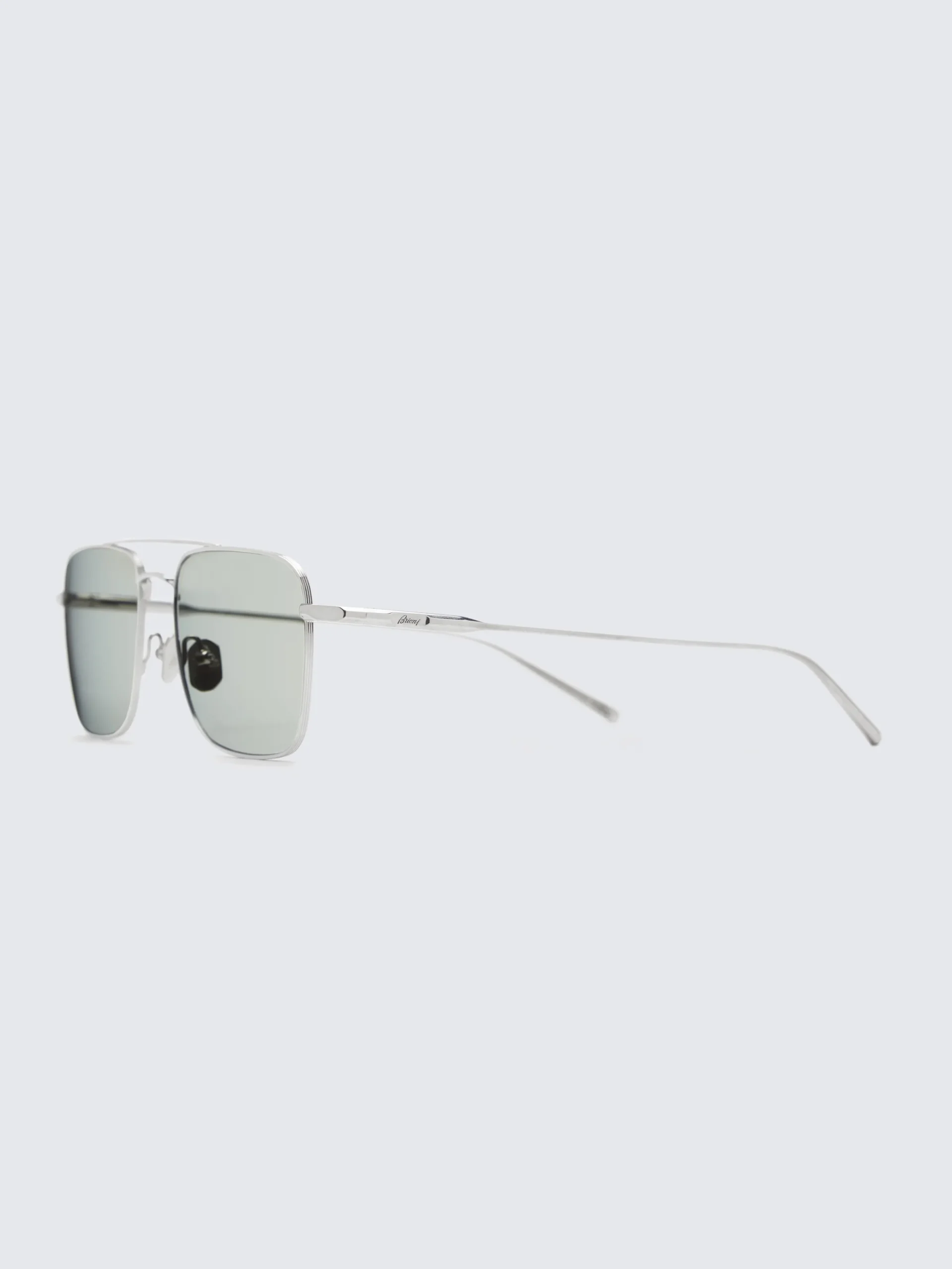 Double-bridge sunglasses featuring a full titanium structure to celebrate natural materials while adding a contemporary touch to your look. Shiny silver rectangular frame, green lenses and octagonal temples with subtle Brioni logo. Also available in gold with grey lenses and silver-toned with brown lenses.