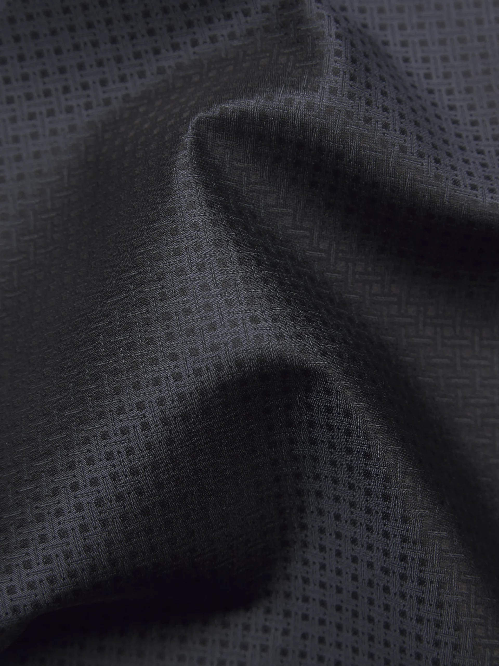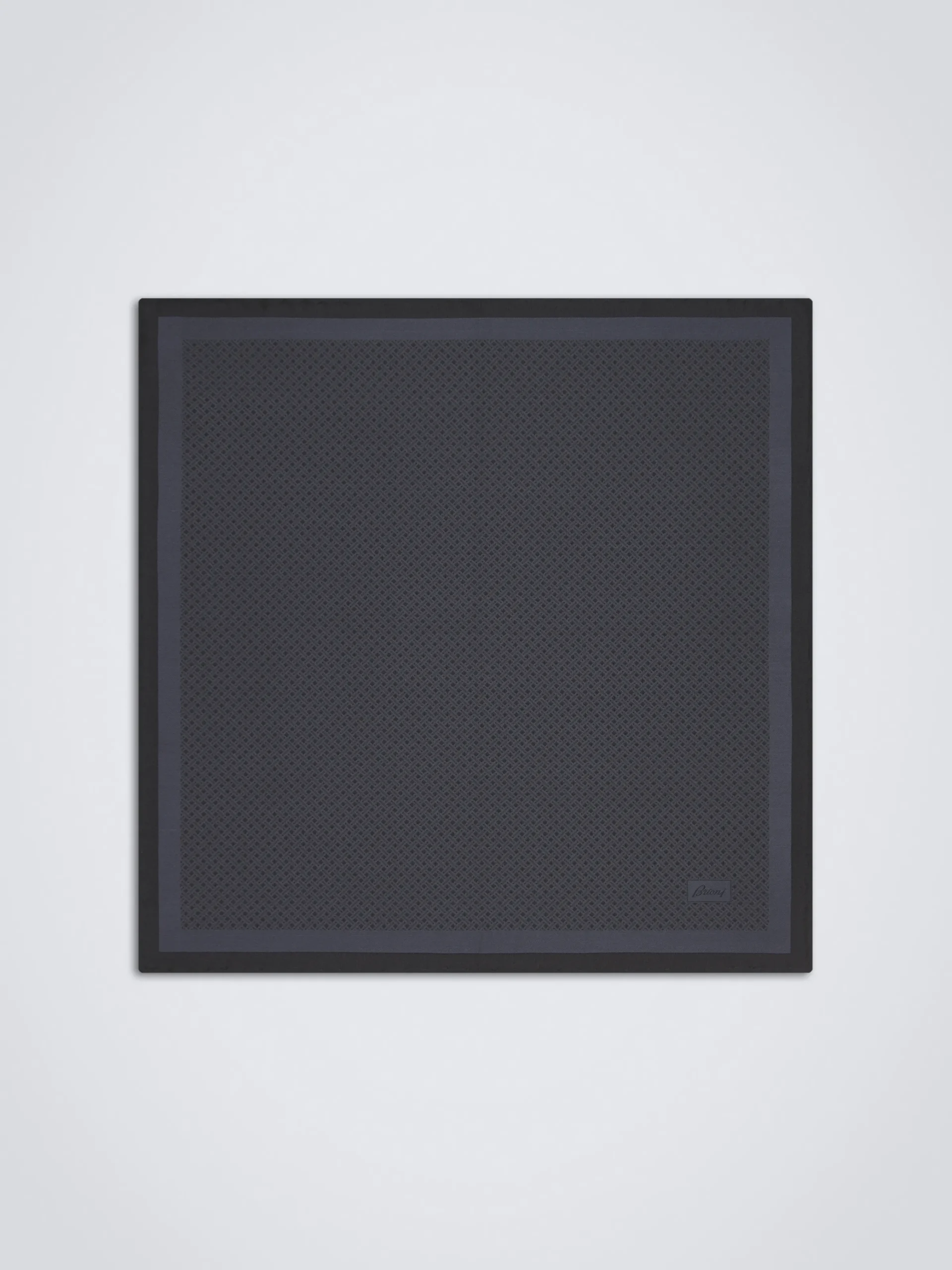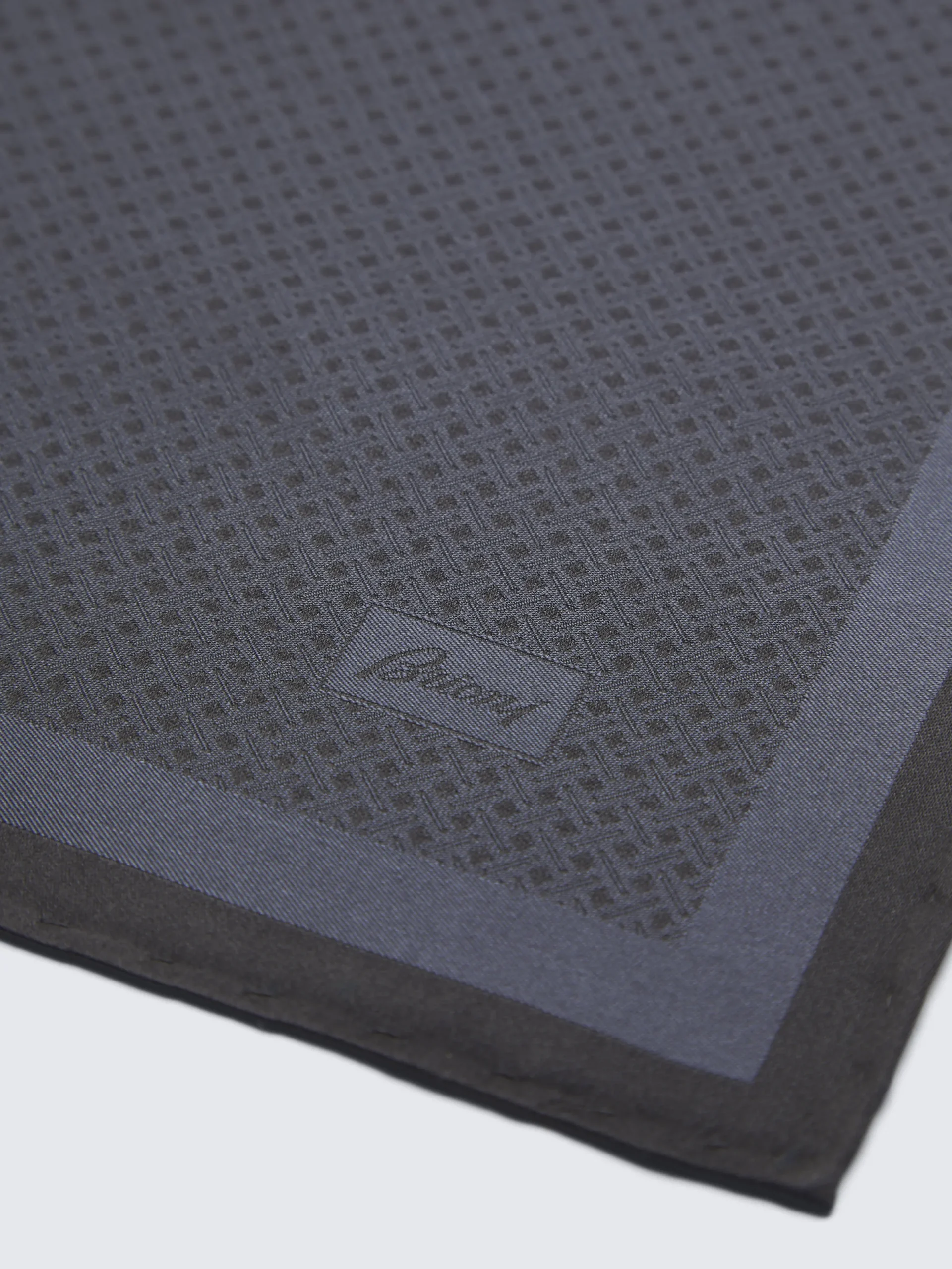 Hand-rolled black and charcoal pocket square in printed silk. This extremely elegant and refined piece is completely han…