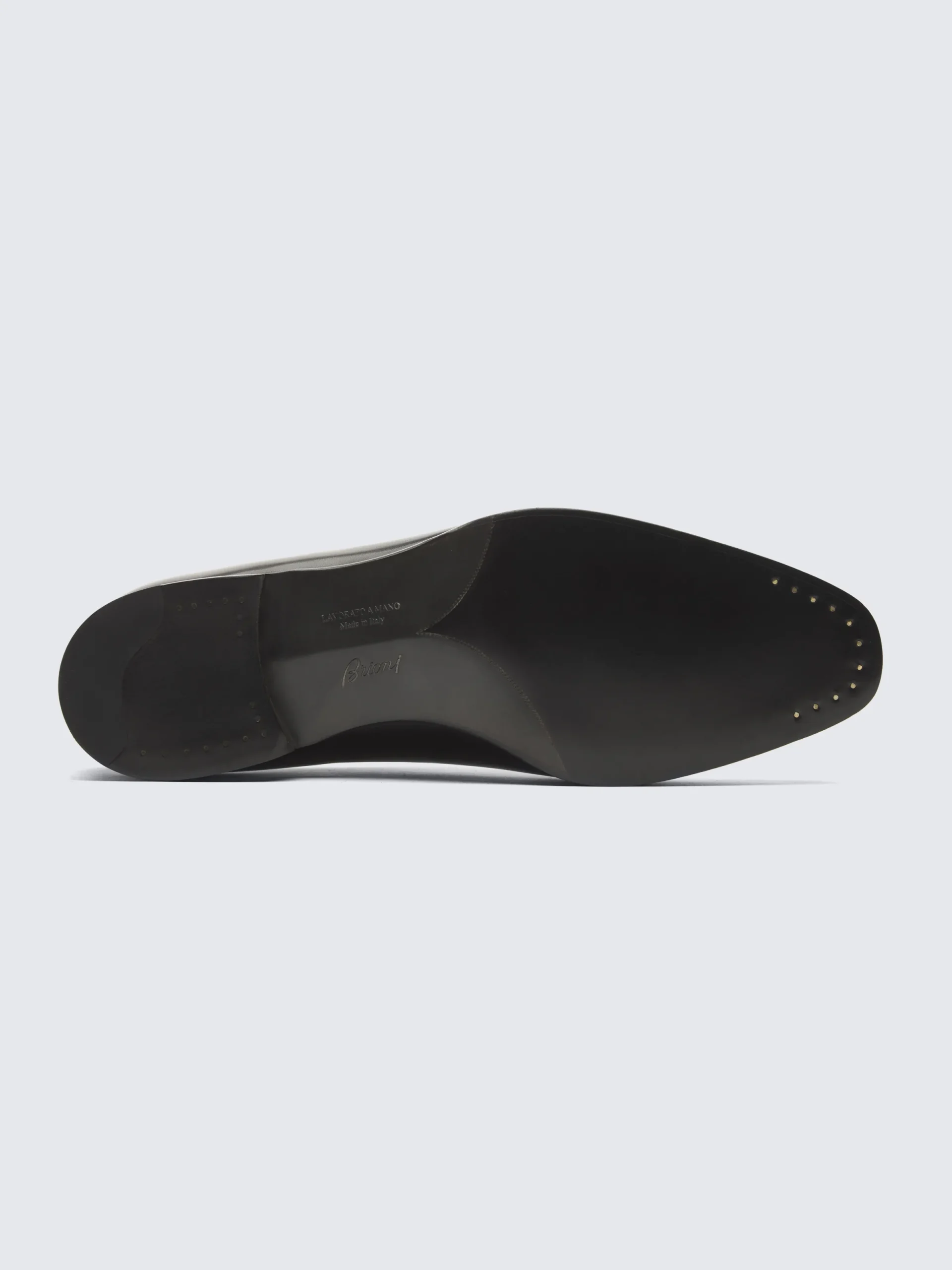 “,”features”:”Blake constructionnHand tinted leathernCalf lining with embossed logonExclusive Brioni branding on the heelnSole: 8 mmnHeel: 30 mm