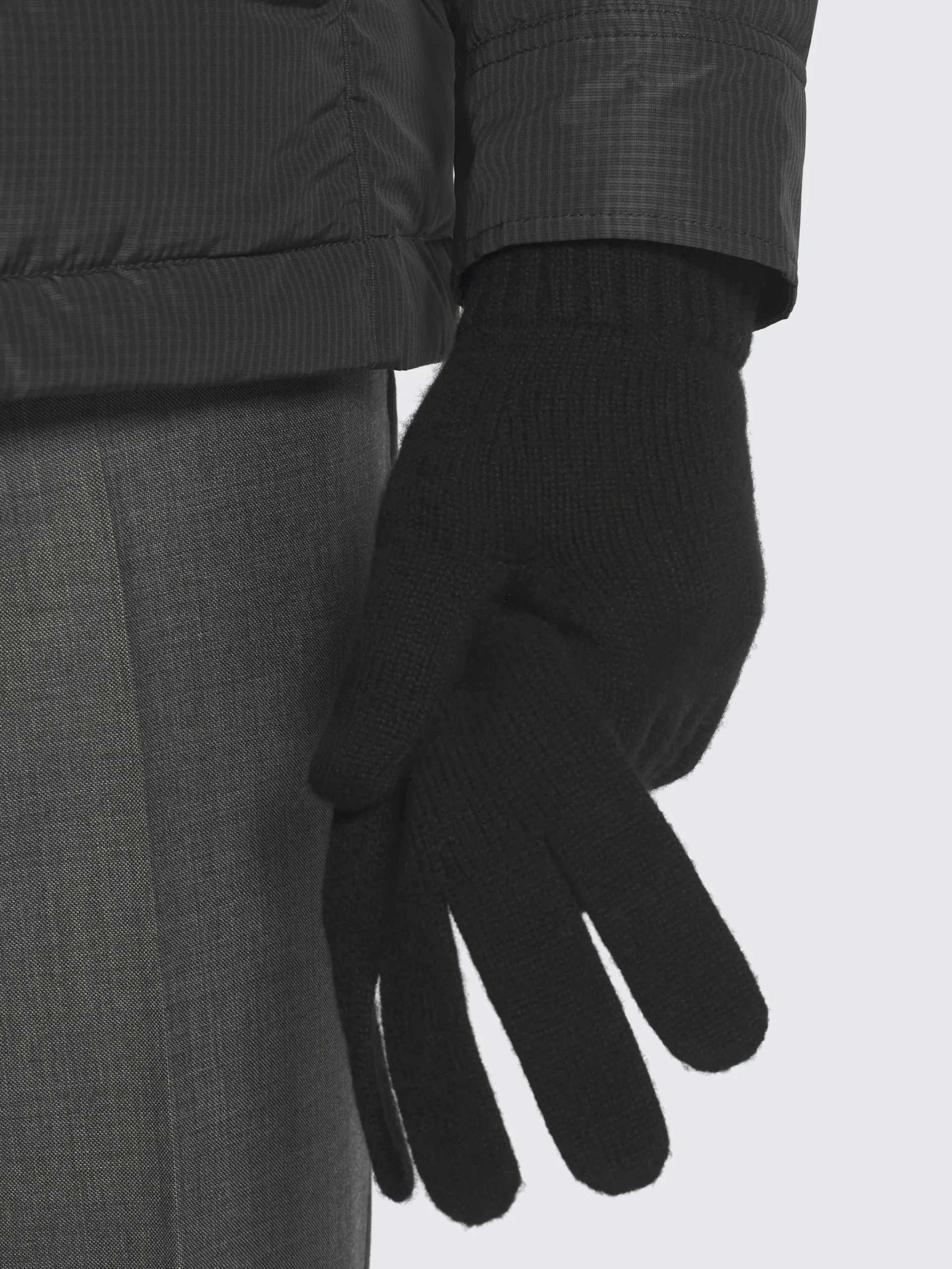Black cashmere gloves. Featuring a « B » logo nappa leather detail on the ribbed wrists. This timeless and soft accessory is the final classic touch to a wide array of outfits.