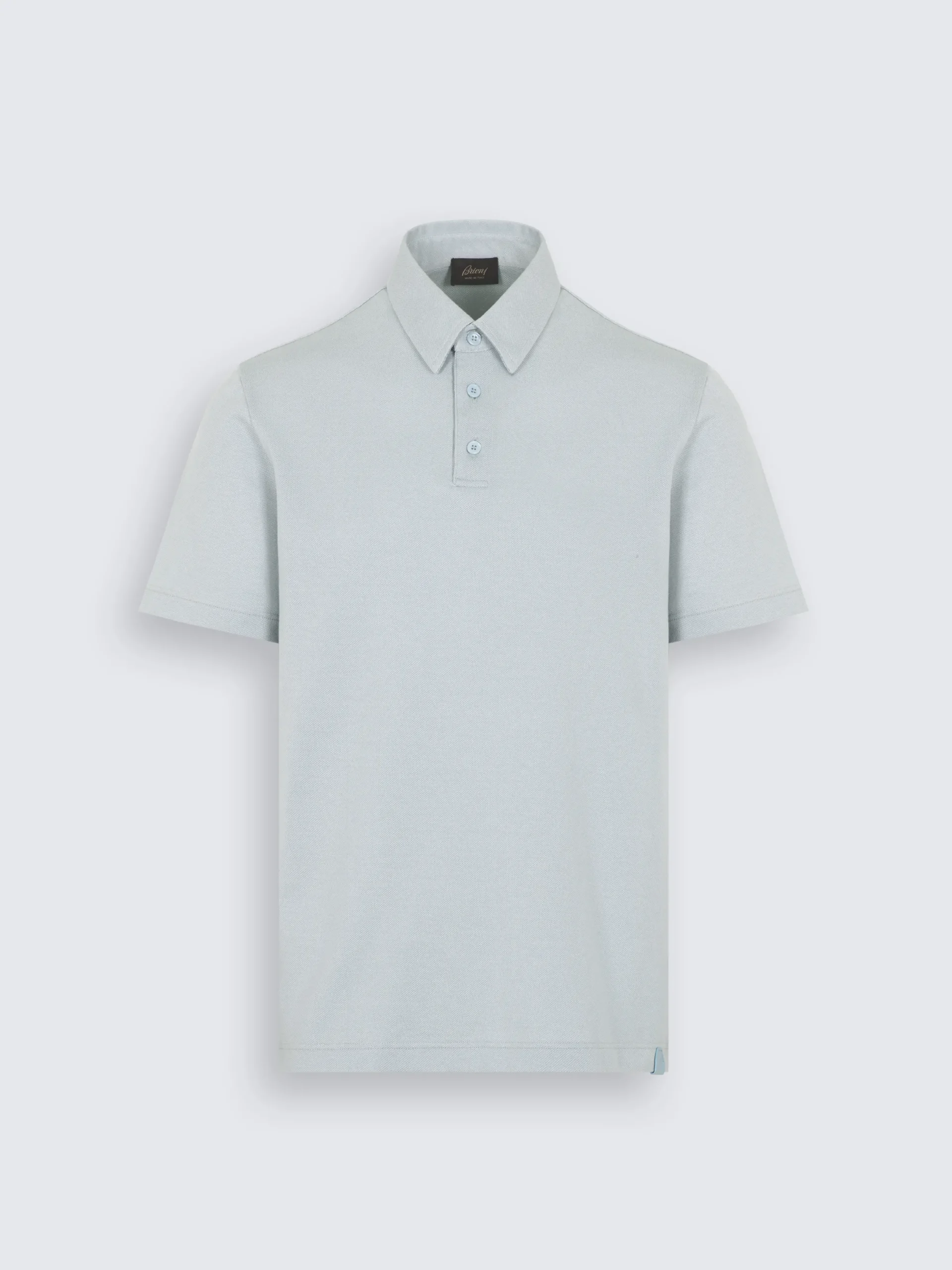 Sky blue cotton piqué polo. Featuring a regular fit, mother of pearl buttons and leather bevelled gusset with« B » logo on hem. The go-to piece for a timeless relaxed look. nThis garment contains GOTS certified cotton. The Global Organic Textile Standard (GOTS) is a voluntary standard obtained by verification through independent third-parties. Practices include requirements on environmental management and wastewater; protection of health, safety and rights of employees; avoidance of hazardous substances.