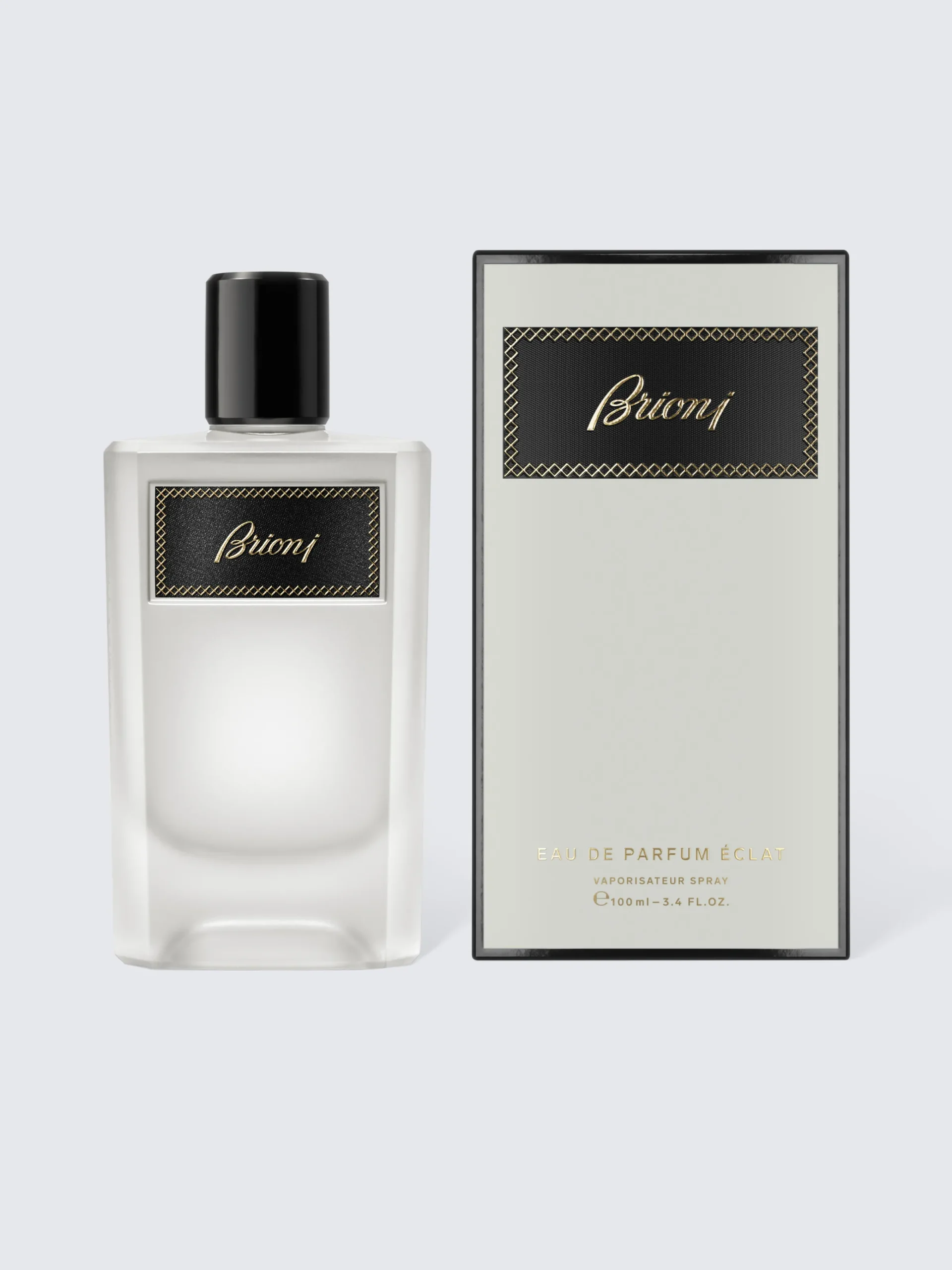 Crafted for radiance and freshness. Joyful and inspired by a relaxed approach to life, the scent reflects an intriguing contrast of pureness and electricity. A formula within the chypre citrus woody olfactive familyComposition An opening in the dazzling morning light, the juicy grapefruit is gently blended with cool pink pepper while the precious frankincense brings a subtle hint of its citrusy, resinous facets. A heart of radiant roses for an unexpected floral note team together with patchouli for an effortless elegance. Pure and indulgent, the dry-down of Brioni Eau de Parfum Éclat combines creamy sandalwood with enveloping musk and ambroxan, a sophisticated man-made ingredient that smells of amber, wood and warm skin. The bottleAll fragrances of the Eaux de Parfum Collection are housed in the same bottle, made of heavy Italian glass with a thick, curvy base. The square-shouldered, bevelled bottle is simply adorned with a satin label, inspired by the ones sewn inside Brioni bespoke suits, hemmed by a golden cross-stitching motif. The magnetic cap is engraved with a B, as is the top of the golden pump spray. Echoing the radiance of the fragrance, the glass bottle takes on a sensuous satin-touch finish. Made in Italy by the glassmaker Bormioli Luigi the bottle is recyclable. The production process ensures that no glass is wasted and that the water is cleaned after use. The raw materials used to decorate the bottle are water-based and environmentally friendly. The satin-finish box is recyclable and has obtained FSC certification. 100ml
