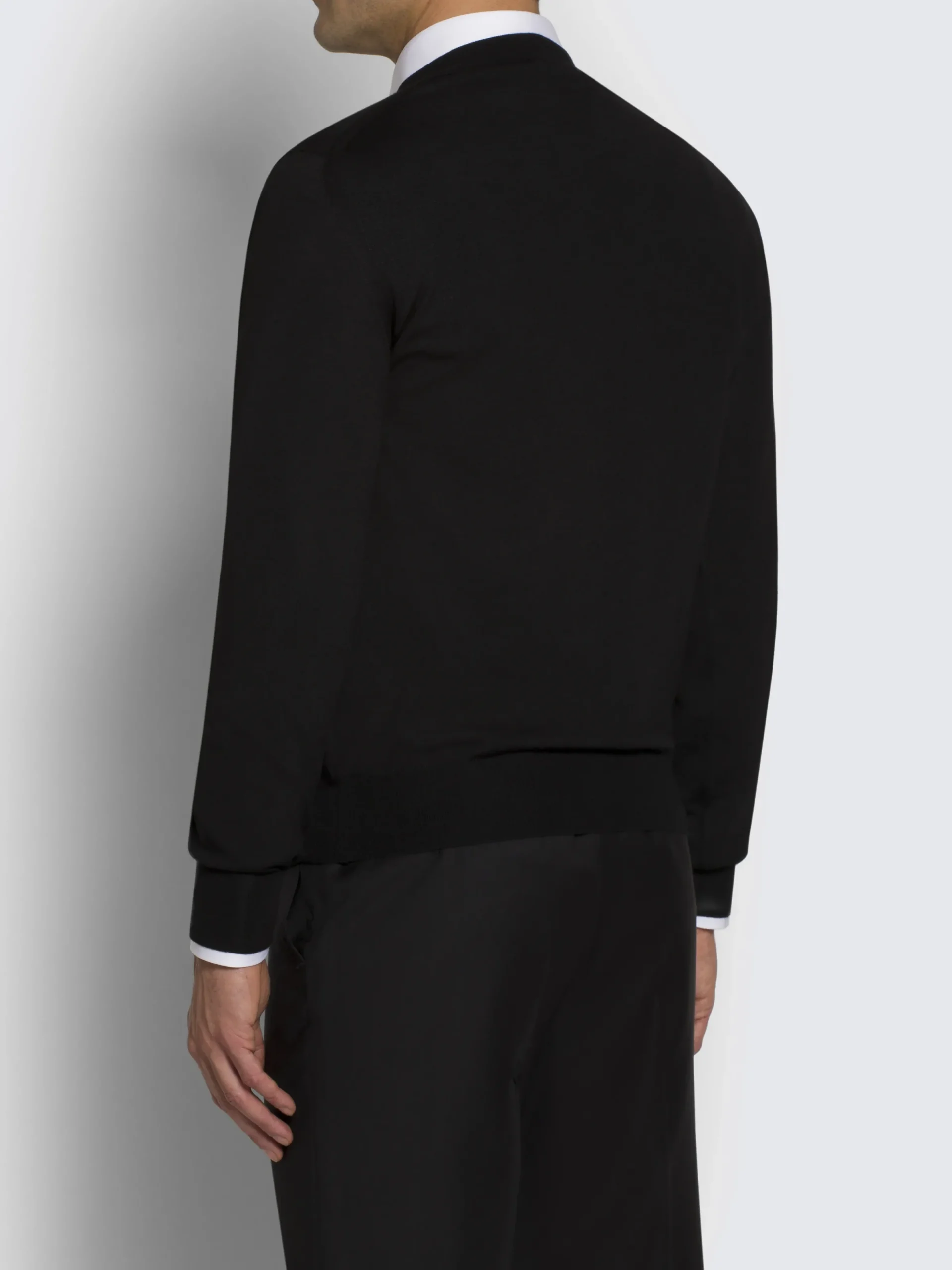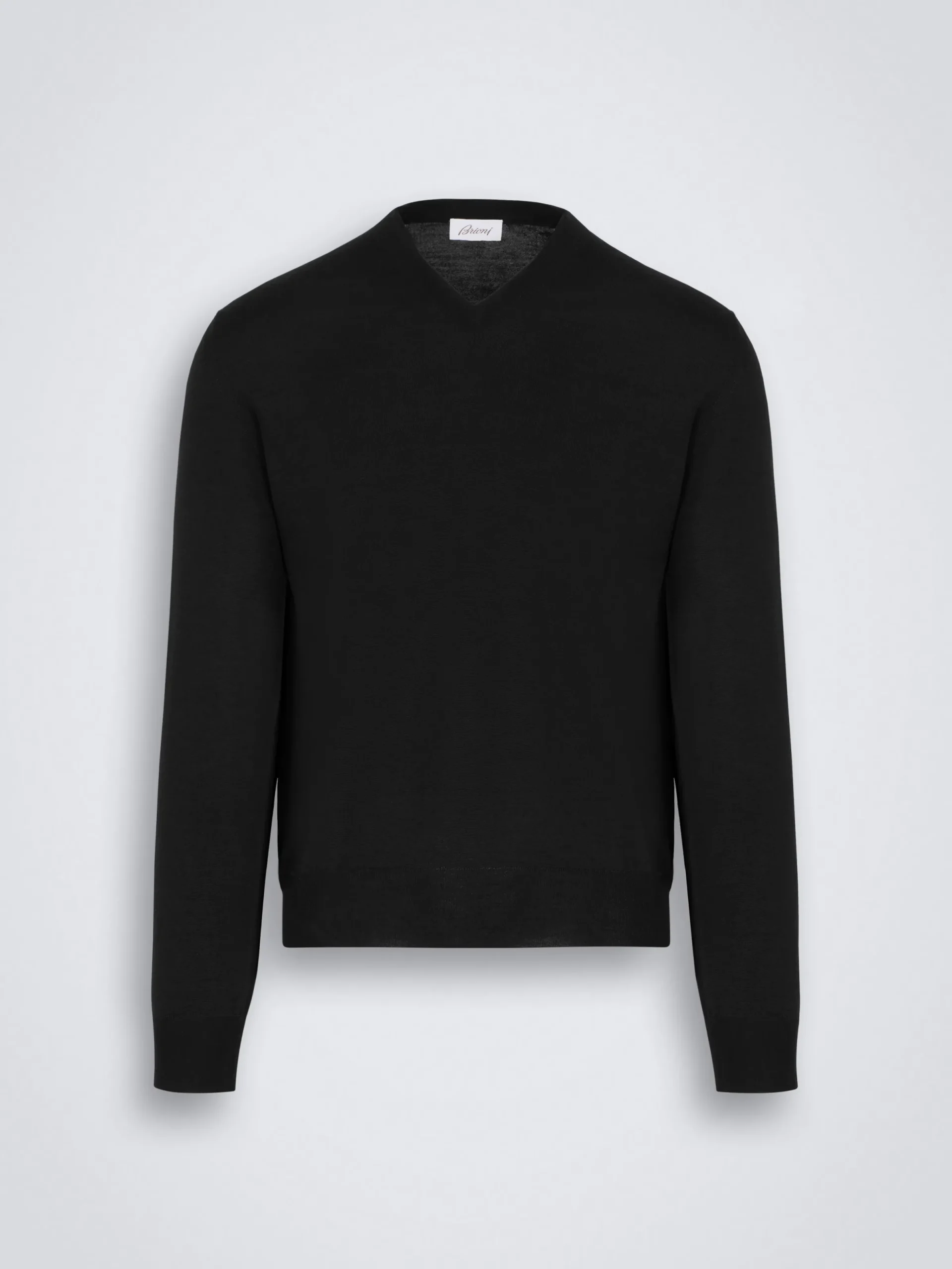 Black Essential V-neck sweater with long sleeves in wool, cashmere and silk. Its soft hand and comfortable fit make it perfect to be worn year-round and it matches perfectly with formal and semi-formal attire.