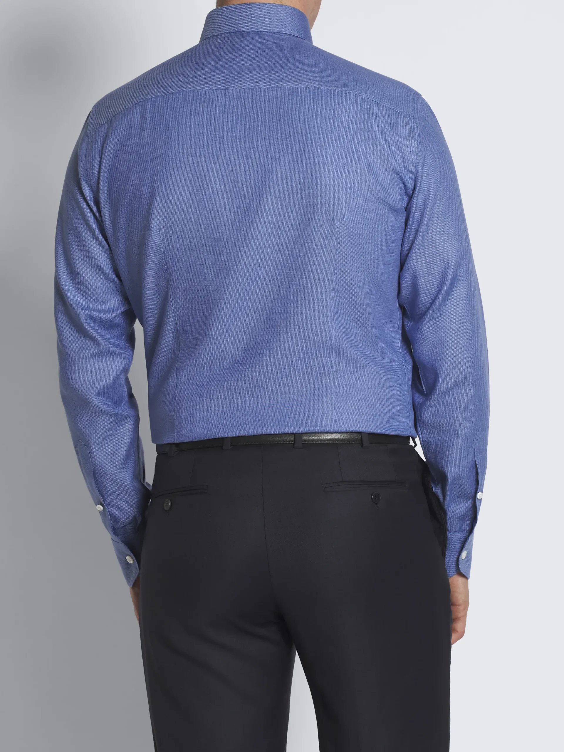 Royal blue micro motif cotton formal shirt. Featuring a slim fit, mitered cuffs, mother of pearl buttons, and without darts and front placket. Sleek and sophisticated, this elegant piece will create an impeccable look with a modern accent.