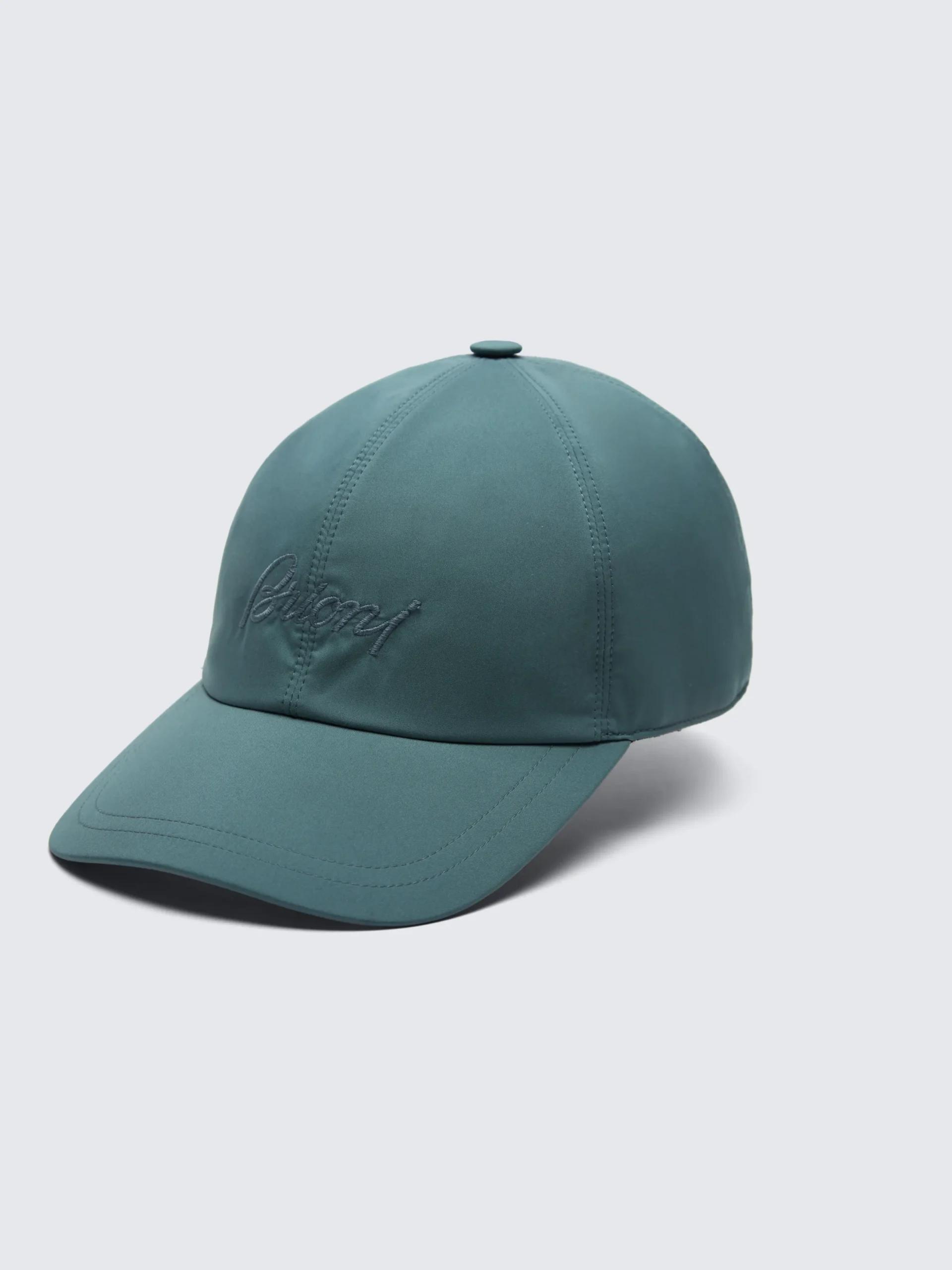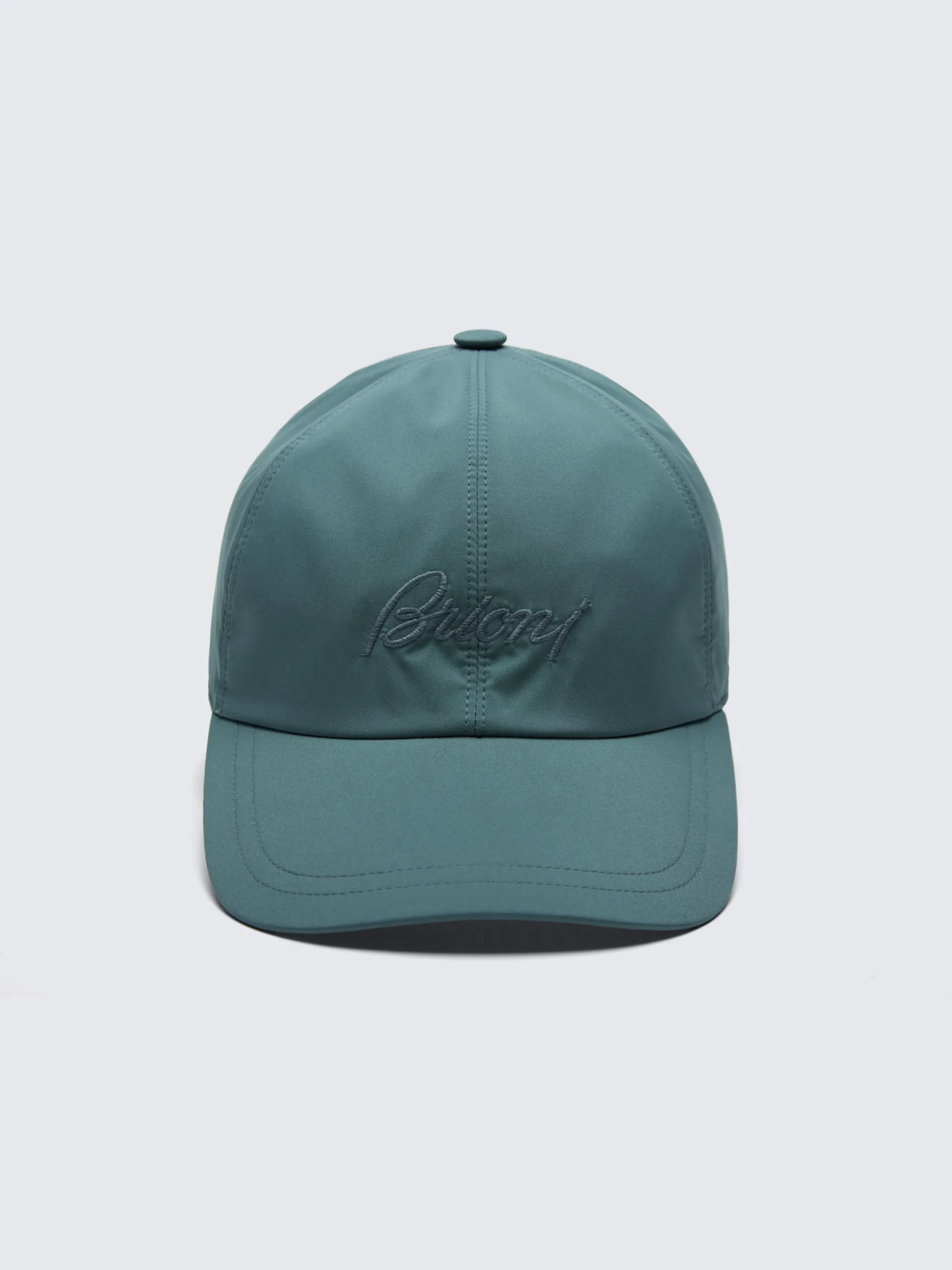 Teal green Performa baseball hat. Featuring a Brioni embroidery on the front and an adjustable back band with velcro strap to attain the desired fit. Lined in lightweight cotton jersey for extra comfort, this is the perfect piece to pair with a classic t-shirt and jeans for a sporty-chic look. nThis garment contains GRS polyester. The Global Recycled Standard (GRS) is a voluntary, full product standard obtained by verification through independent third-parties. Practices include requirements for recycled content, social and environmental practices, and chemical restrictions.