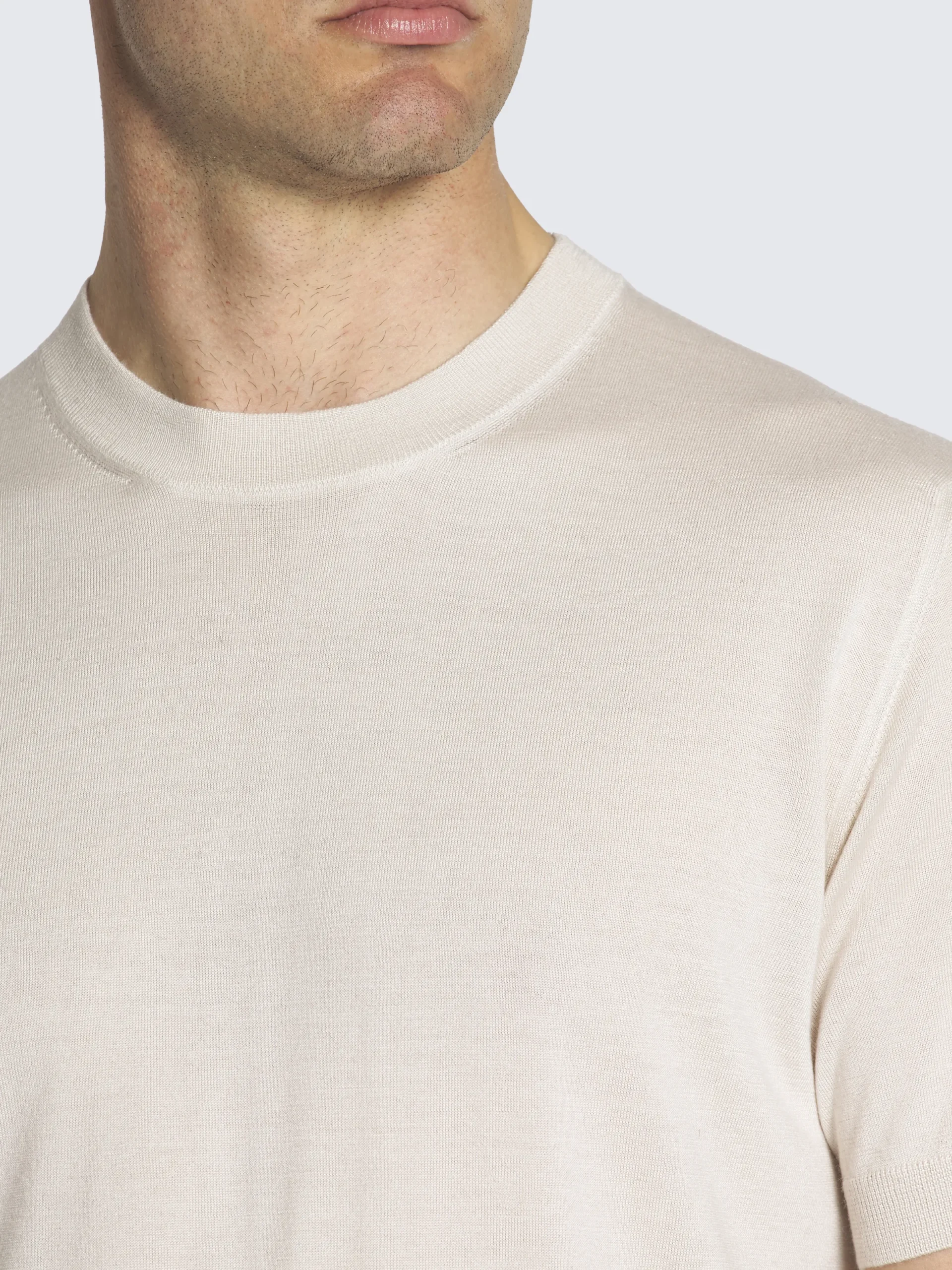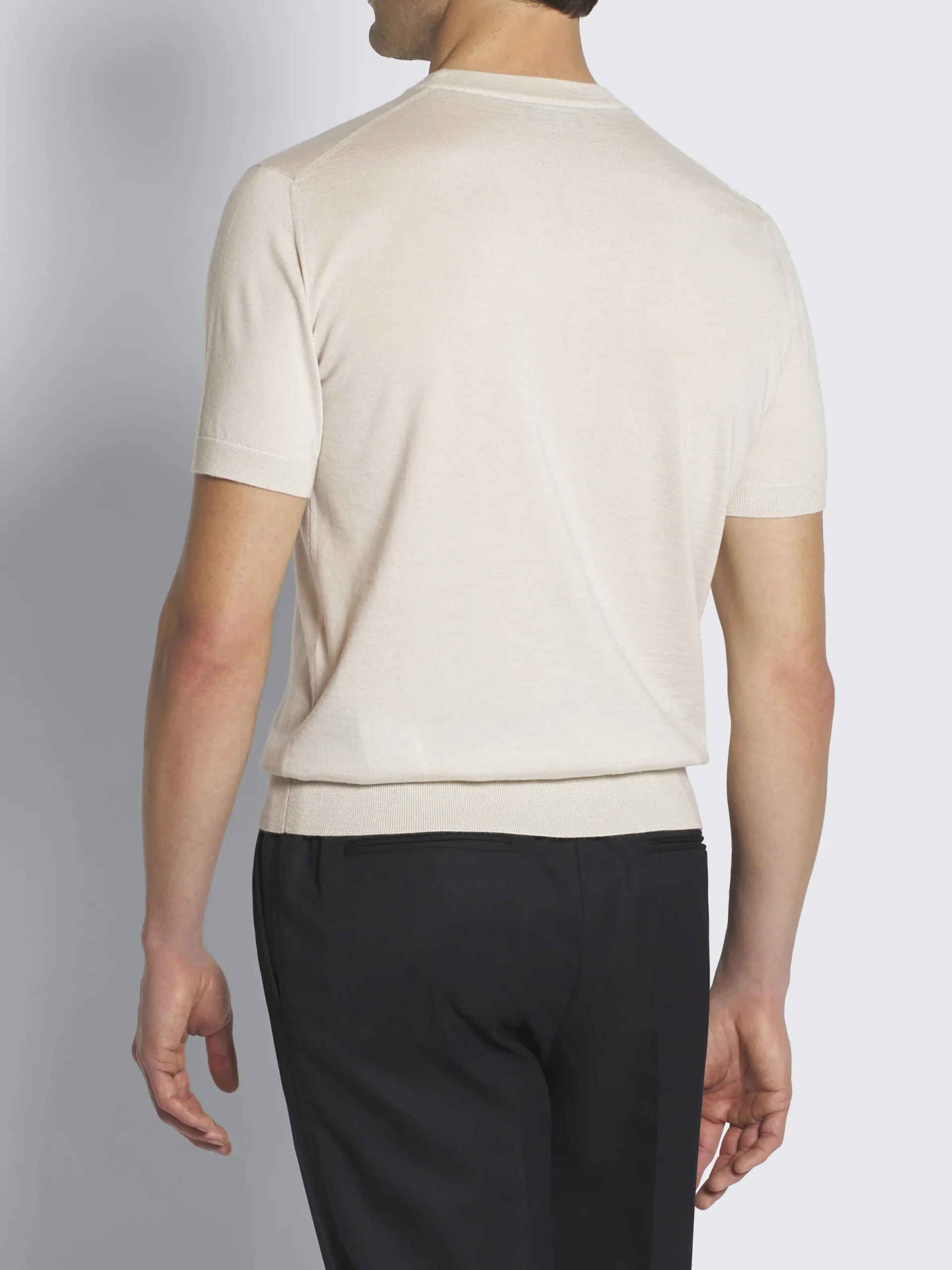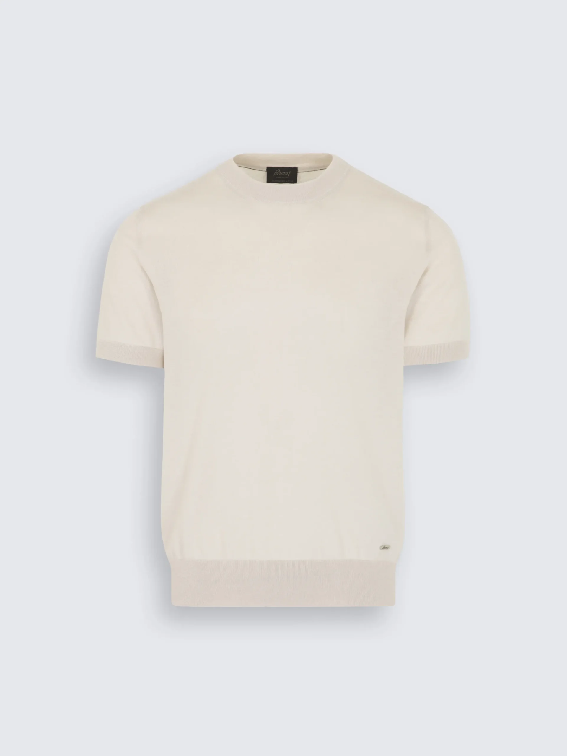 Ivory white cashmere and silk T-shirt. Featuring a regular fit, Brioni logo metal detail at the bottom and light ribs effect on collar, hem and cuffs, it is the perfect piece to layer under a jacket to elevate your leisure looks.