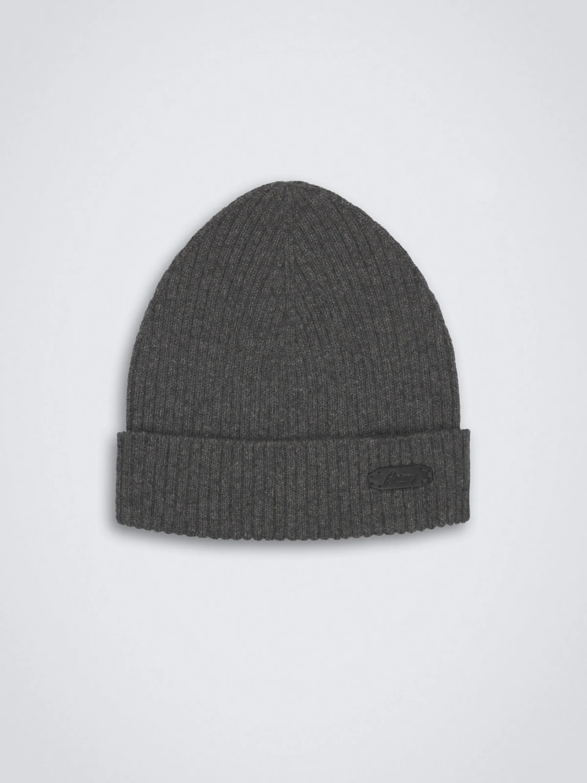 Dark grey cashmere beanie, with subtle ribbed effect. Inspired by our knitwear garments, this incredibly soft accessory features a branded bevelled leather gusset on the hem. It will add a contemporary-cool touch to your look, and will keep you warm on the coldest winter days.