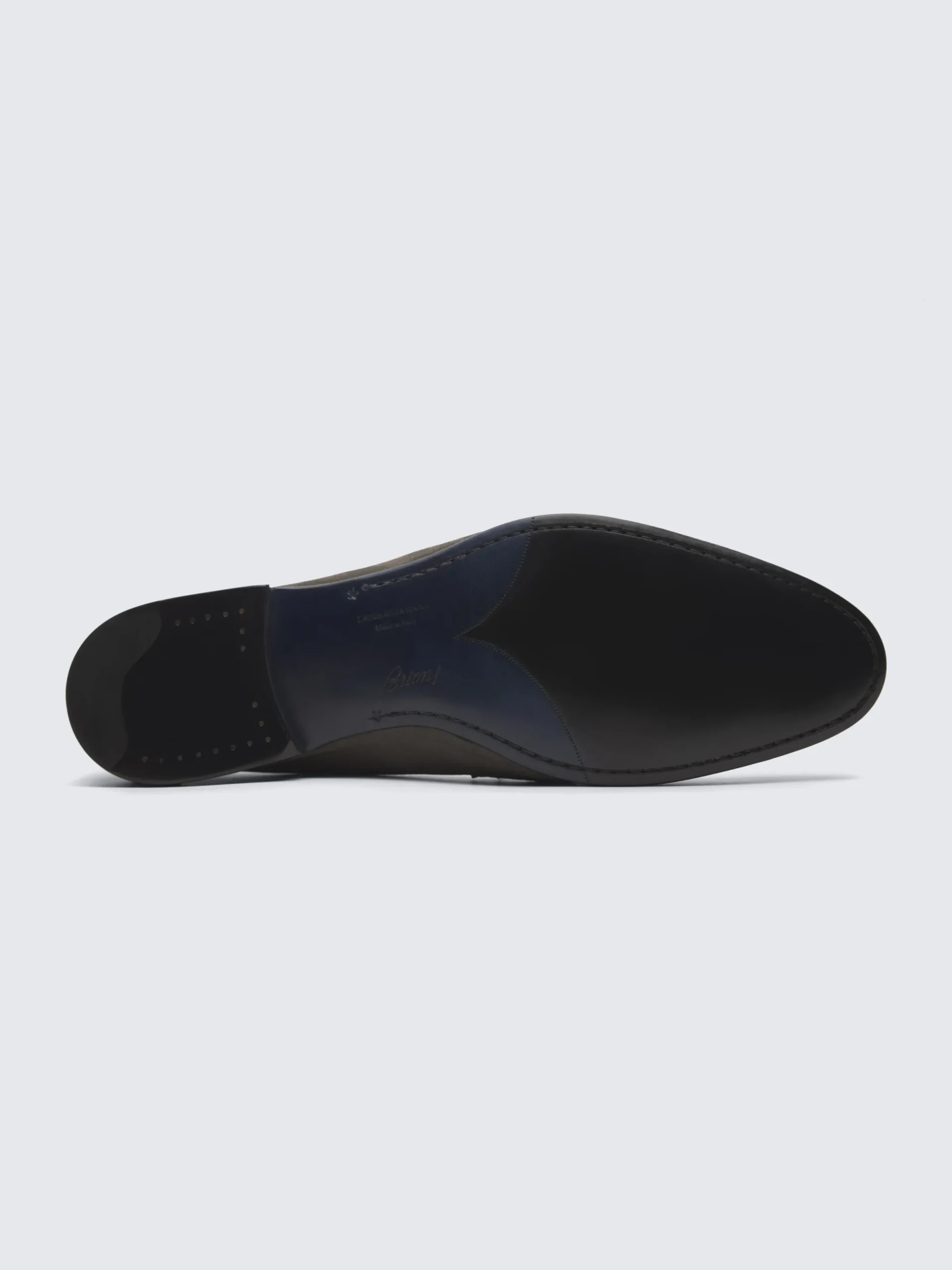 Brioni shoes are made of noble leathers selected by master craftsmen. Please consider fine wrinkles, veins or marks as a distinctive feature of the natural materials used. The shape and comfort of these shoes result from their design in keeping with the finest handcrafted traditions and techniques. The following gestures will ensure the long life of your shoes:• Alternate between different pairs of shoes each day to allow the leather to breathe and restore.• Insert wooden shoe trees to preserve their original shape.• Store them in their fabric dust bag and keep them in a dry place away from heat and light.• Before nourishing the leather, dust your shoes with the help of a soft brush.PATINA FINISH LEATHERClean it with a soft and slightly damp cloth. Use a nourishing colourless cream. Don’t use wax as this will alter the patina finish on your shoes.SMOOTH OR GRAINED LEATHERClean it with a soft and slightly damp cloth. We recommend you nourish the leather twice a month with the help of a nourishing colourless cream and a wax which will preserve its appearance and restore its original lustre.PATENT LEATHERClean it with a soft and slightly damp cloth. Finish by polishing it with a soft and dry cloth. SUEDE LEATHERClean it with a crepe rubber brush. We recommend you apply a colourless waterproofing and anti-stain spray before wearing your shoes and after every time you clean them.EXOTIC LEATHERClean it with a soft and dry cloth, following the direction of the scales.Return your shoes to a Brioni boutique for our leather artisans to restore them to their original state.