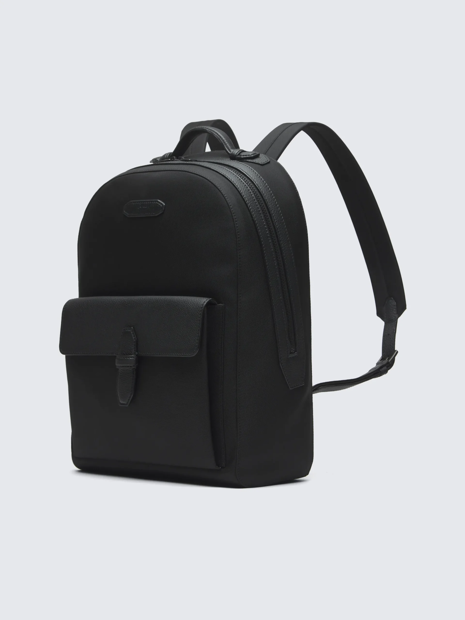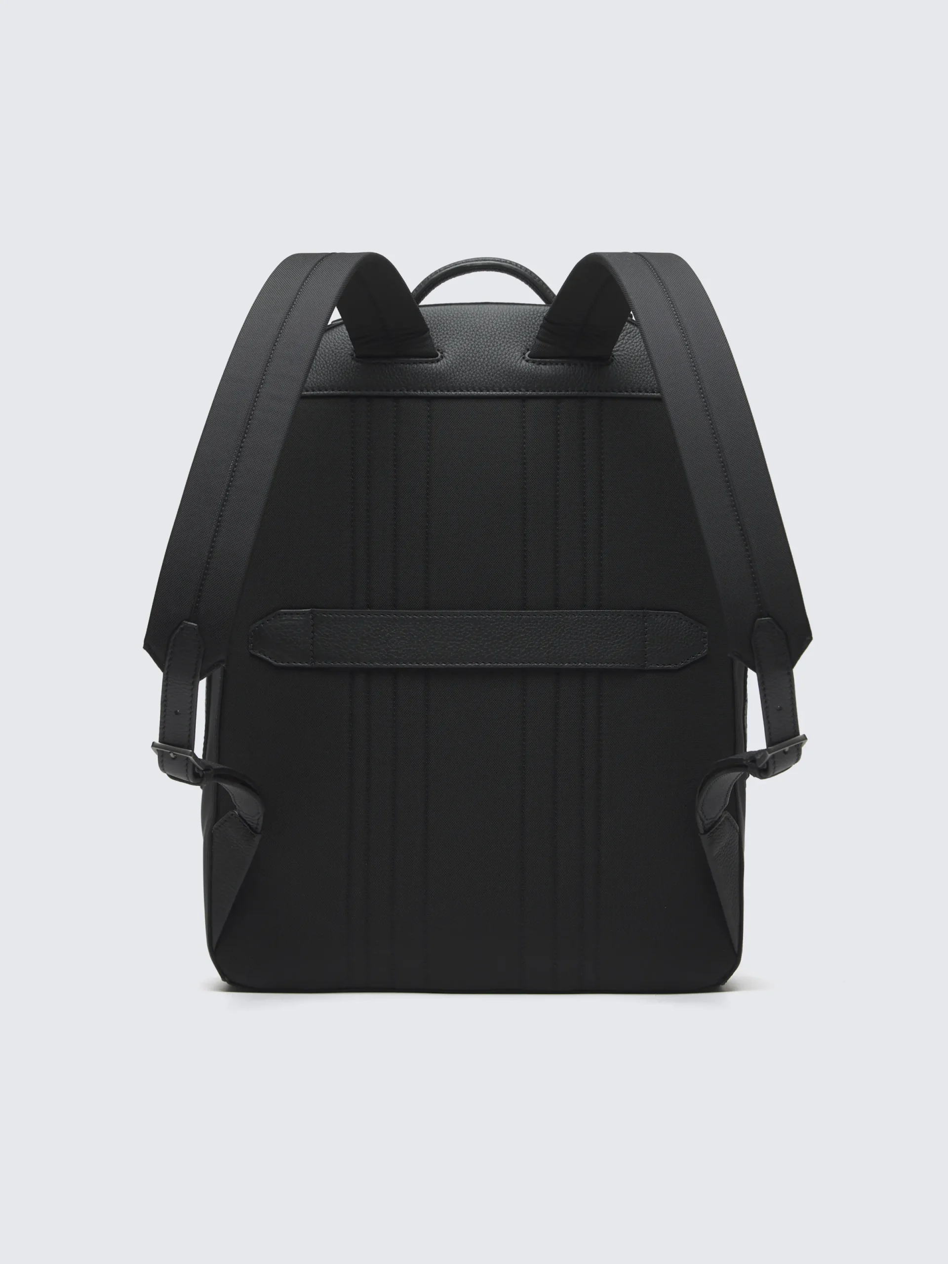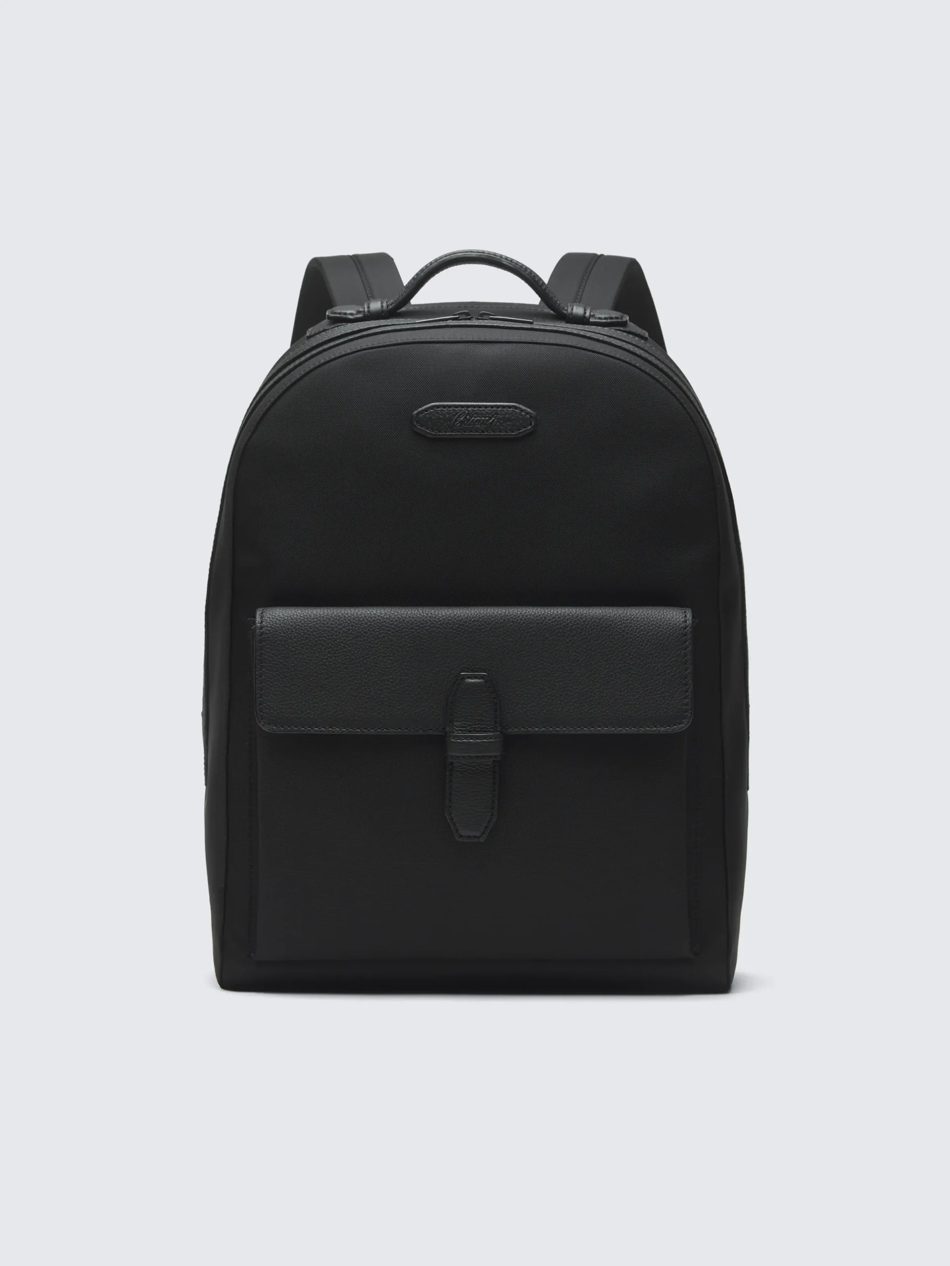 Black nylon and grained leather backpack. Soft and flexible, the material is waterproof and stain-resistant, making this piece ideal for everyday life, business use and travel. Made with soft and flexible grained leather, treated to ensure beautiful aging.