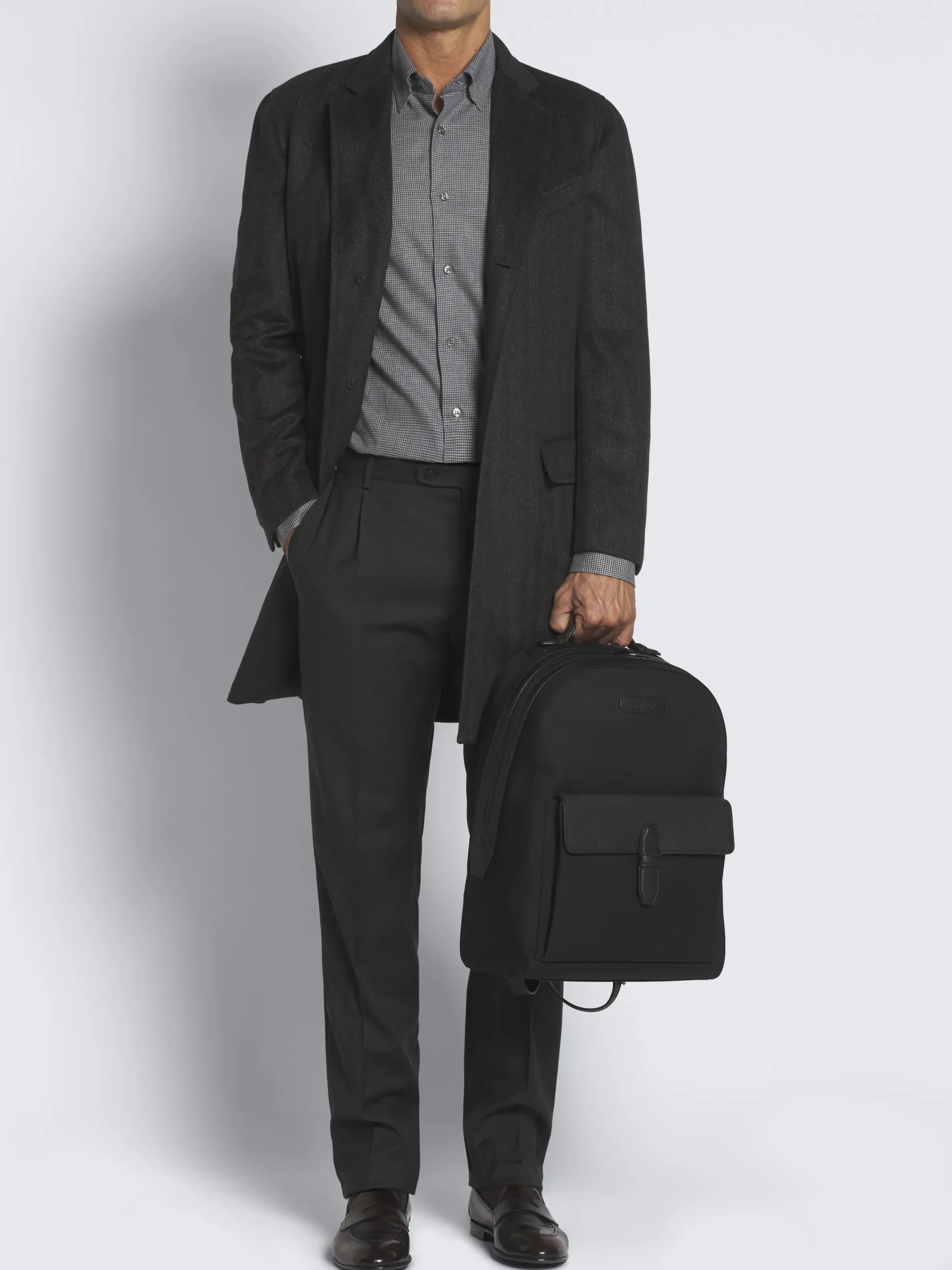 “,”features”:”Nylon and grainednWaterproof and stain-resistant nylonnExternal Brioni logo in leathern48 x 35 x 12 cm