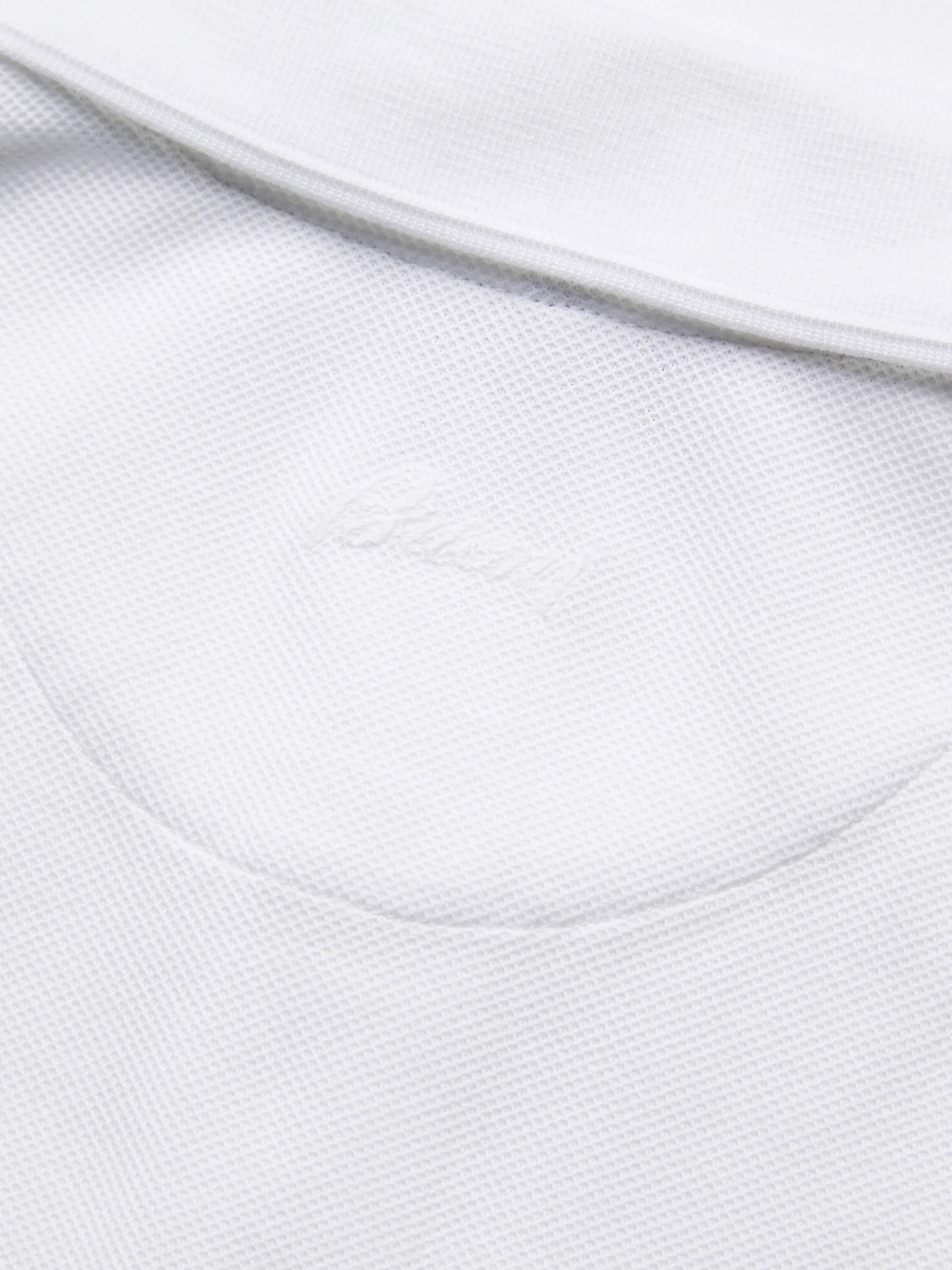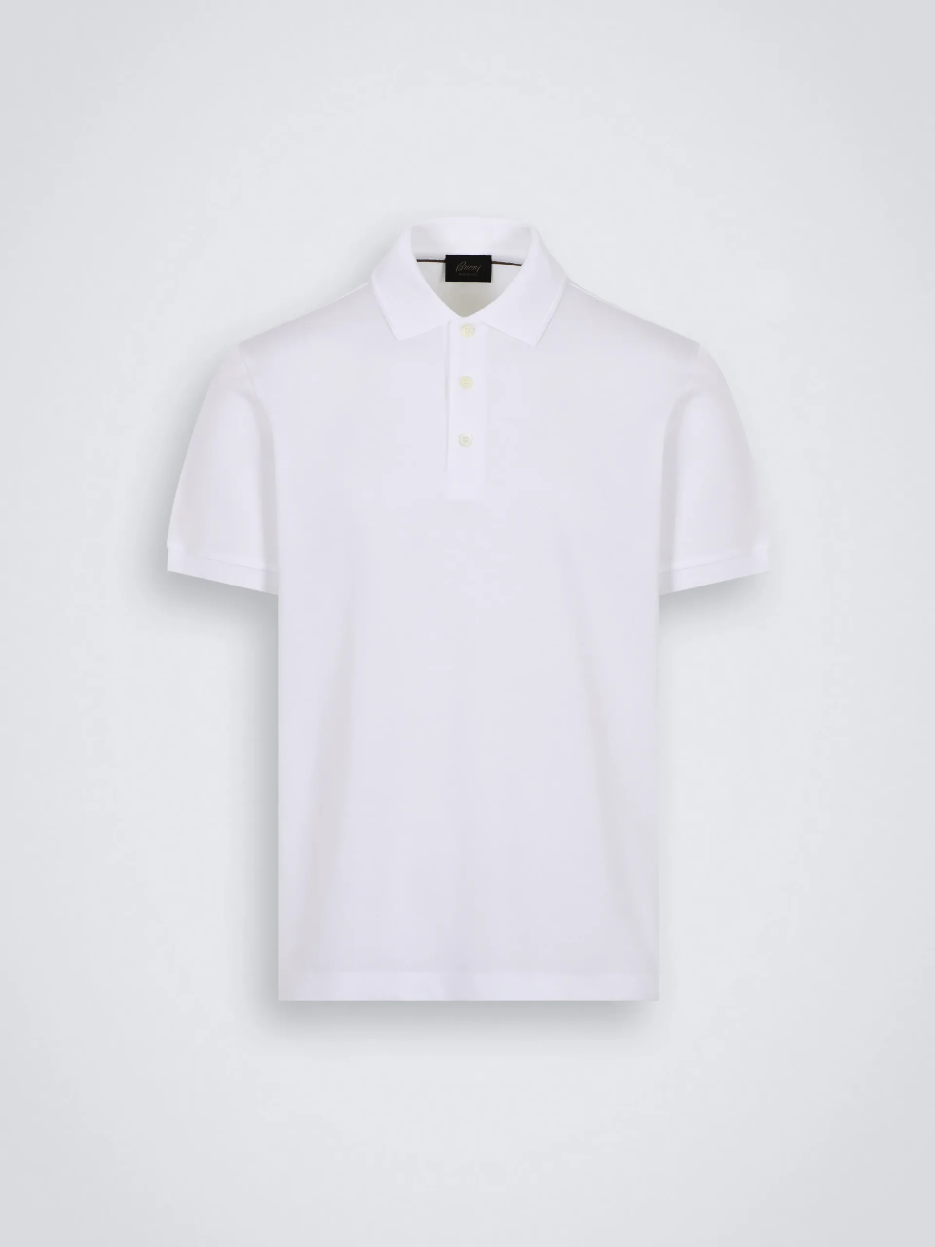 Slim fit short-sleeved white organic cotton piqué polo shirt with knitted collar and cuffs, mother of pearl buttons and tone on tone Brioni embroidered logo on the central back. The perfect piece for a relaxed and contemporary look. This garment contains GOTS certified cotton. The Global Organic Textile Standard (GOTS) is a voluntary standard obtained by verification through independent third-parties. Practices include requirements on environmental management and wastewater; protection of health, safety and rights of employees; avoidance of hazardous substances.