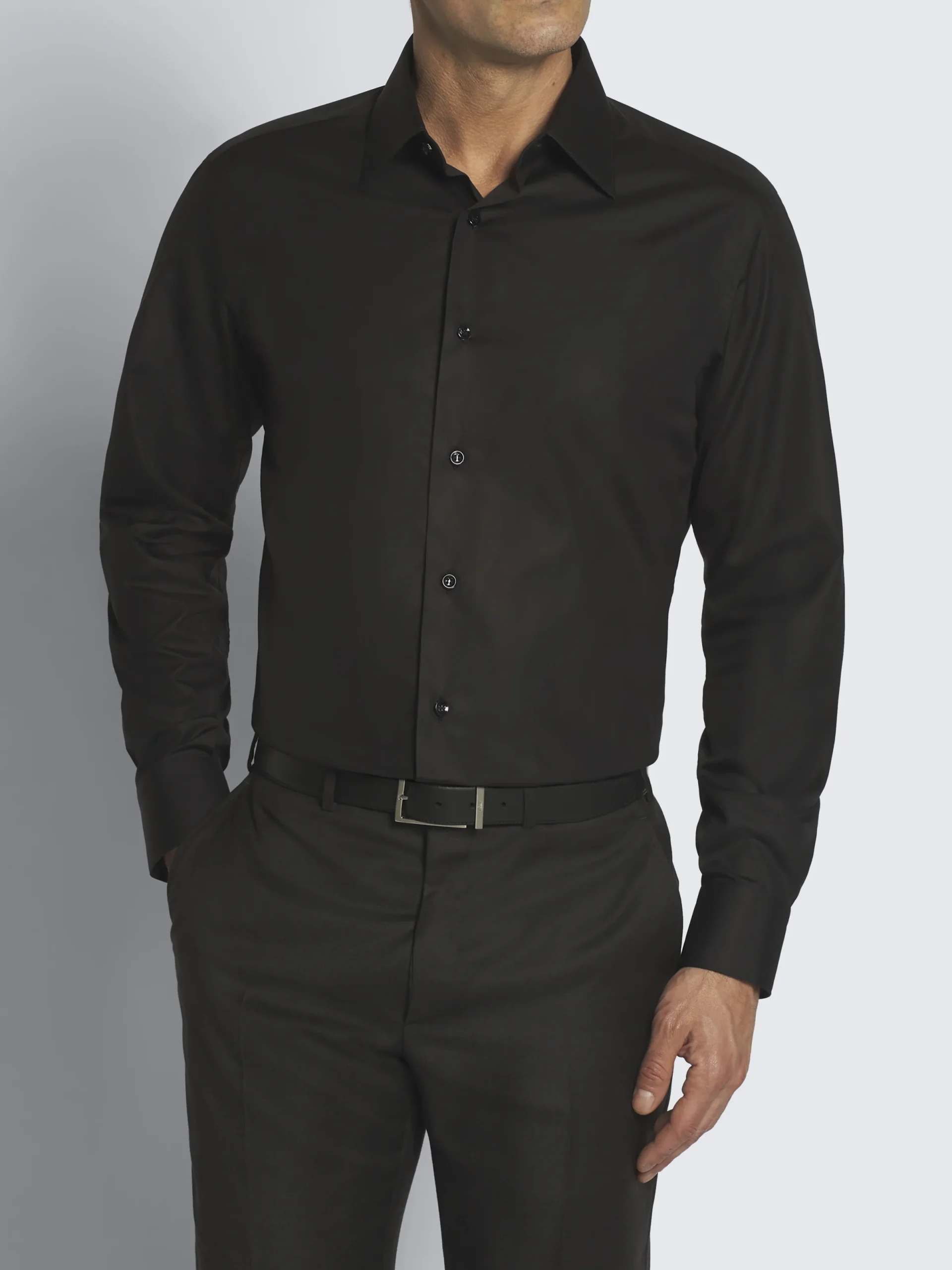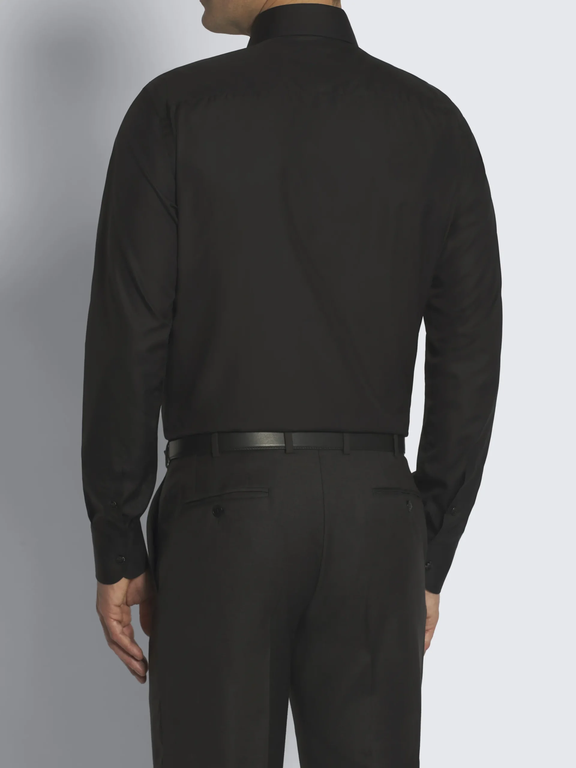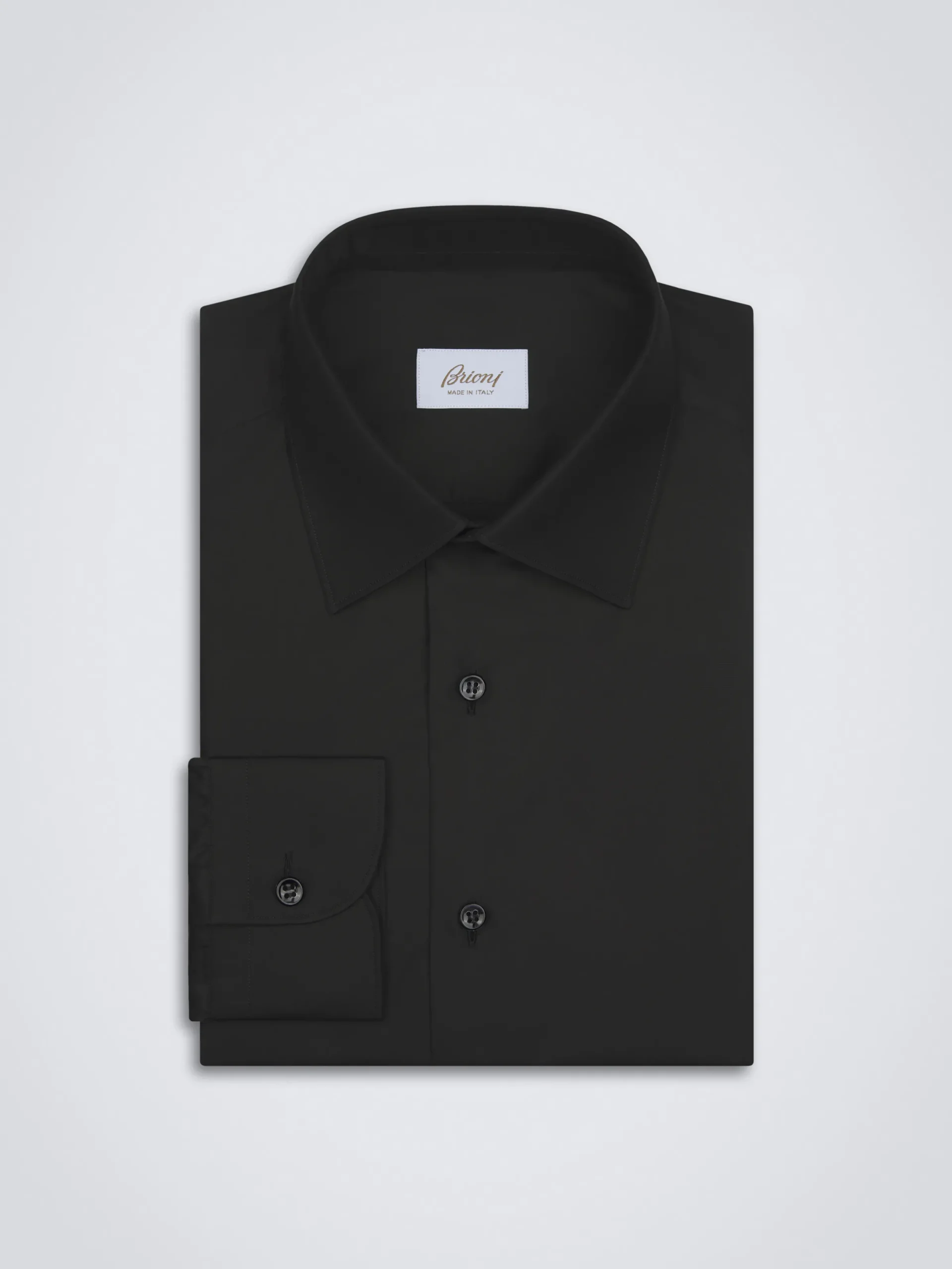 Essential black cotton poplin formal shirt with point collar and rounded cuffs. It features a regular fit. Crafted in premium cotton, this formal shirt guarantees a soft touch and a pleasantly fresh feeling of lightness on the skin.