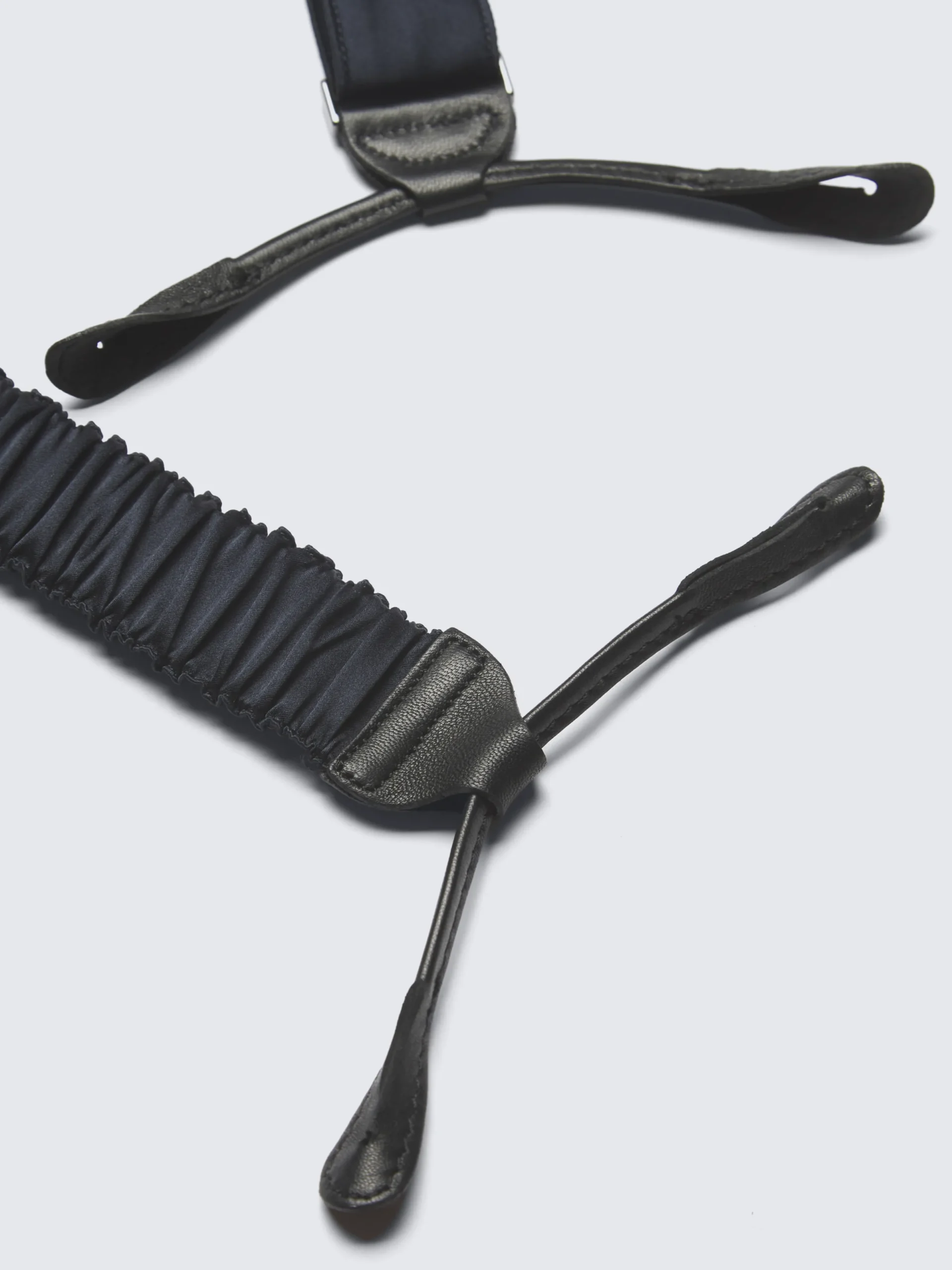 Essential midnight blue adjustable suspenders in satin silk. This elegant accessory is perfect in combination with a cla…