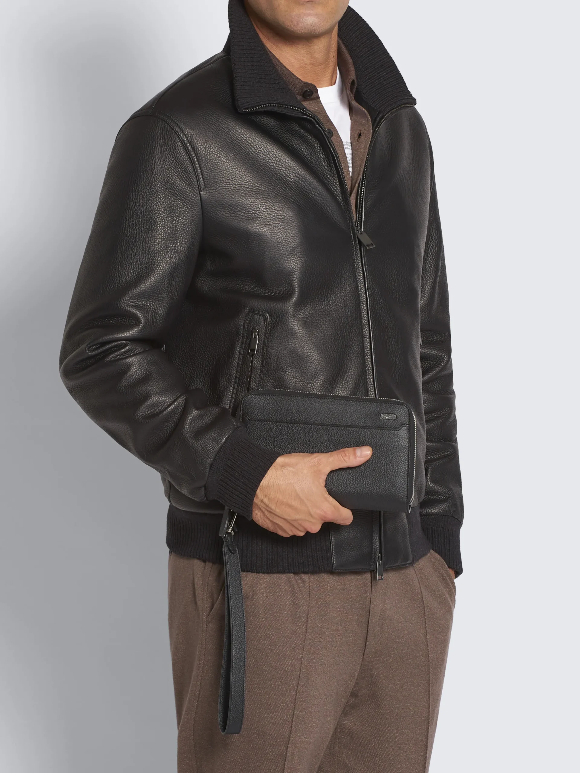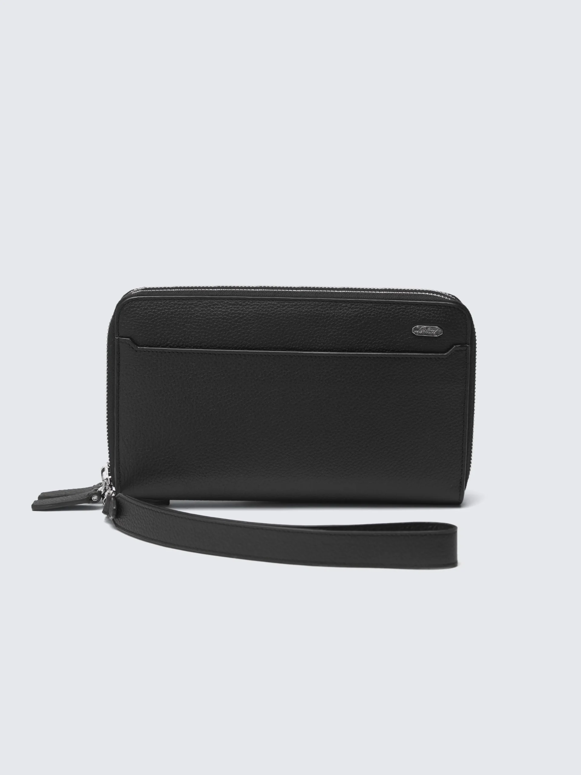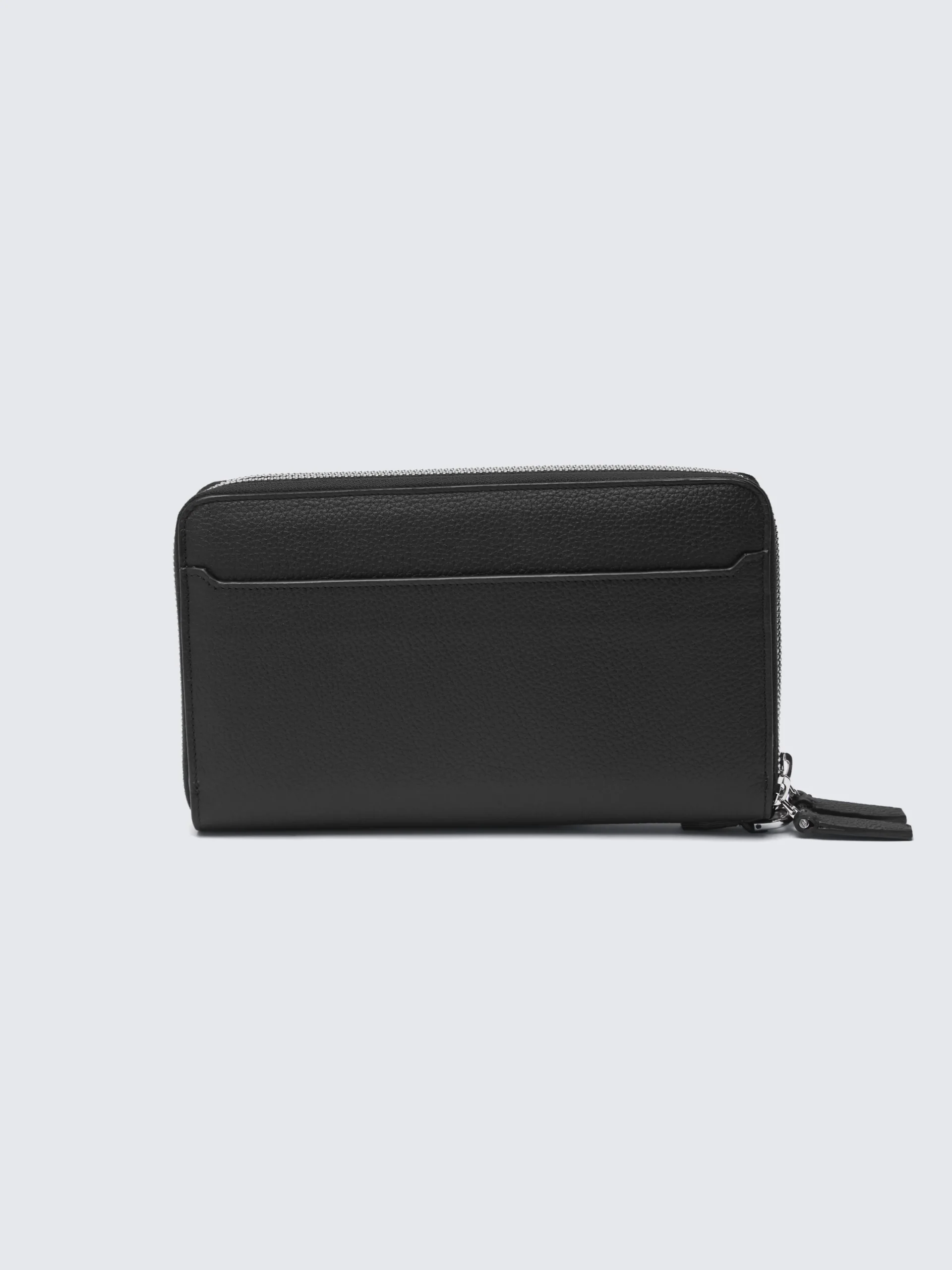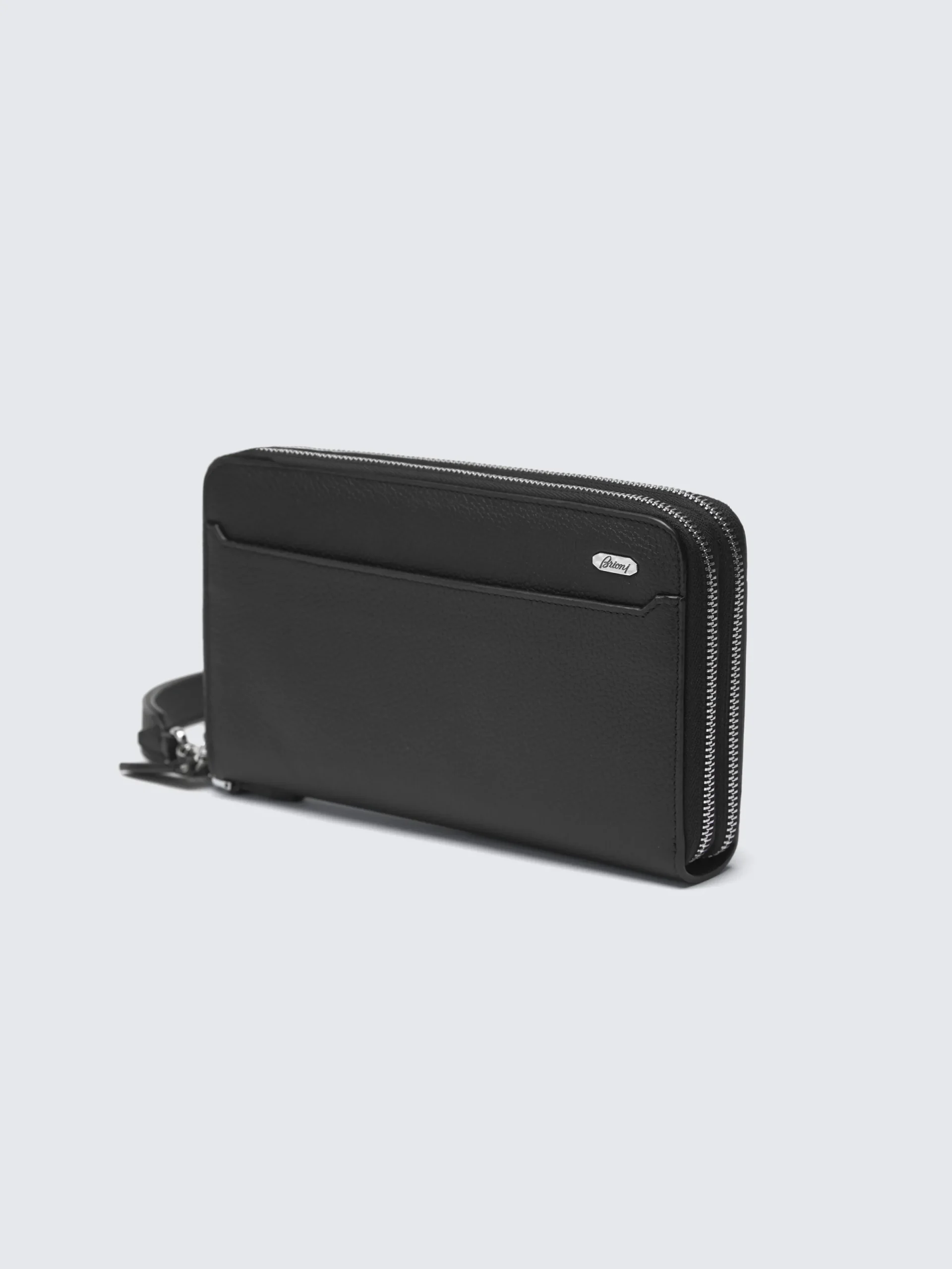 Black double zip wallet in scratch-resistant grained leather. The iconic octagonal Brioni logo is fully integrated into the leather, making it smooth to slide into a pocket. A compact and light accessory for everyday use or for travel. A touch of personal luxury or ideal for gifting. This piece is scratch-resistant: Designed to last, the treatment of this exceptionally fine leather ensures that it ages beautifully over time.